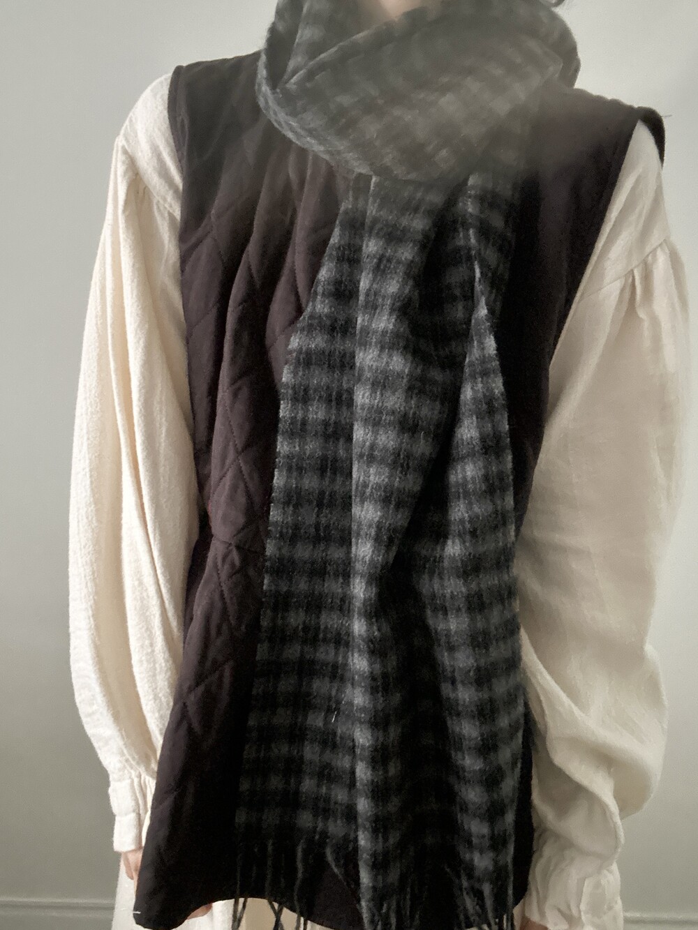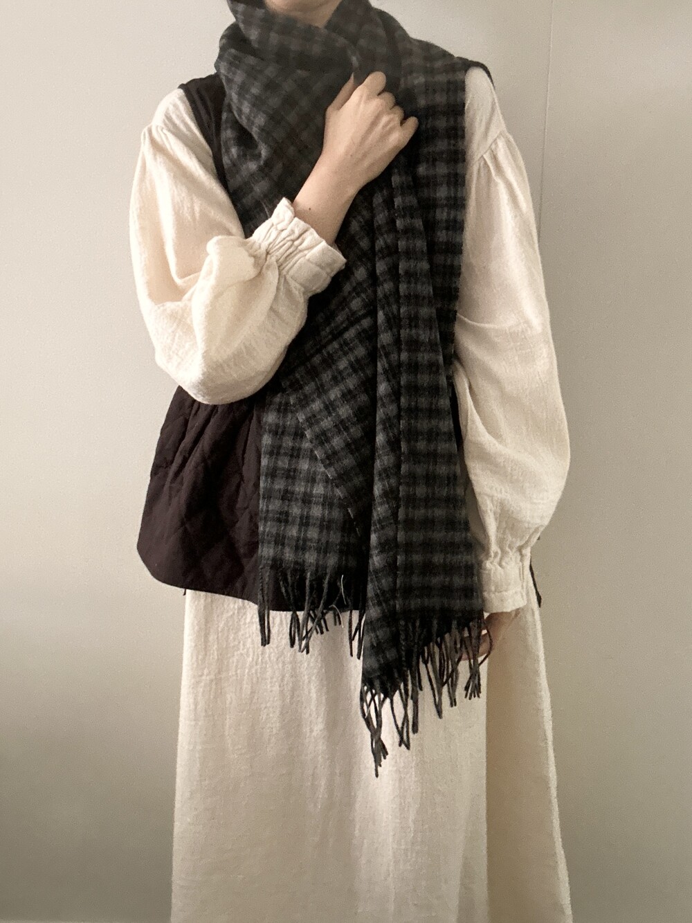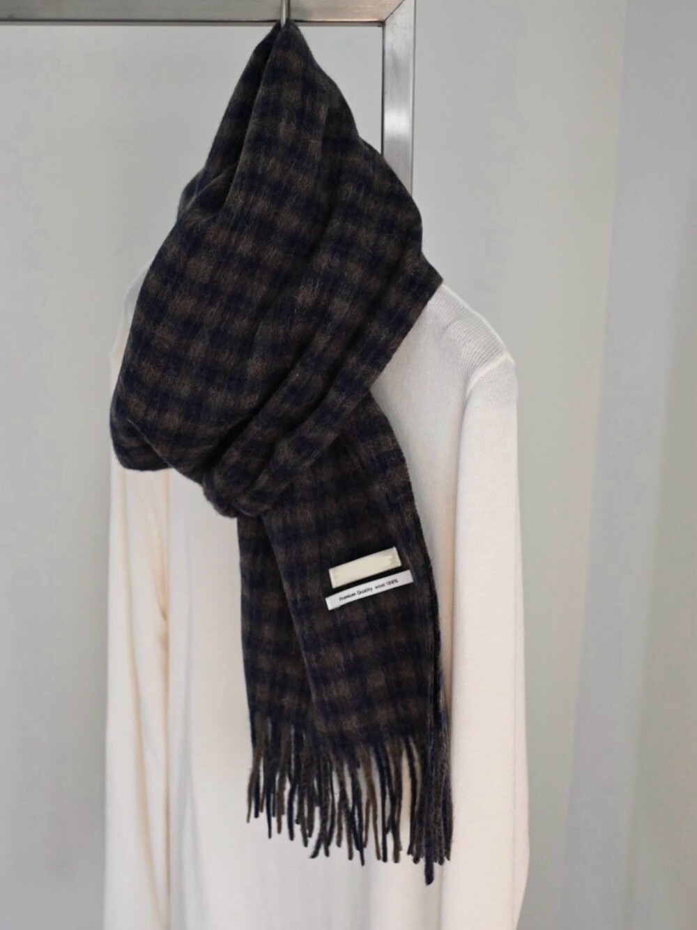 은은하게 흐르는 체크 패턴과 울 100%가 주는 묵직한 따뜻함이 매력적인 체크 머플러입니다.