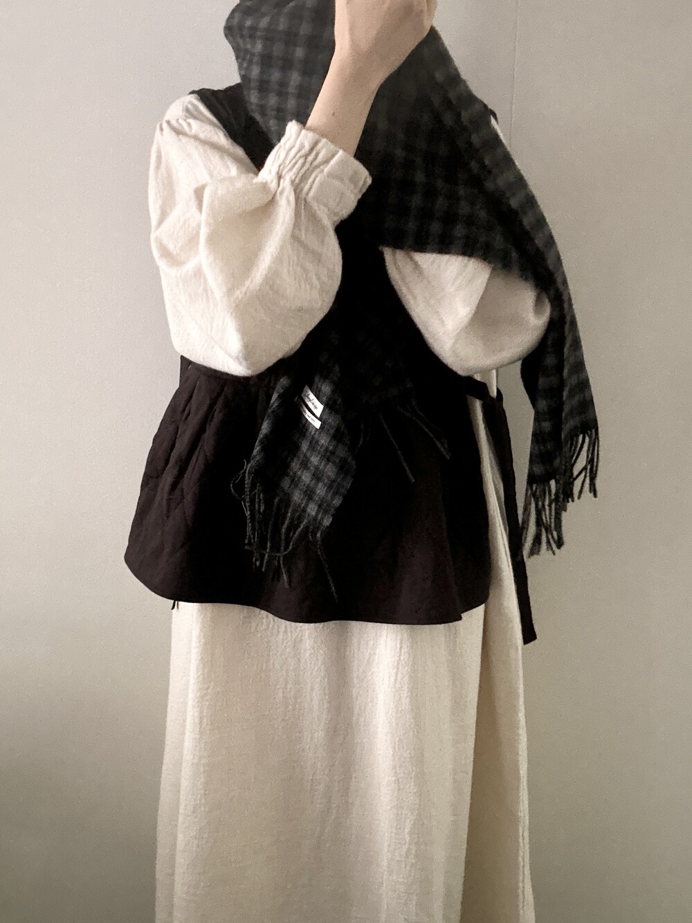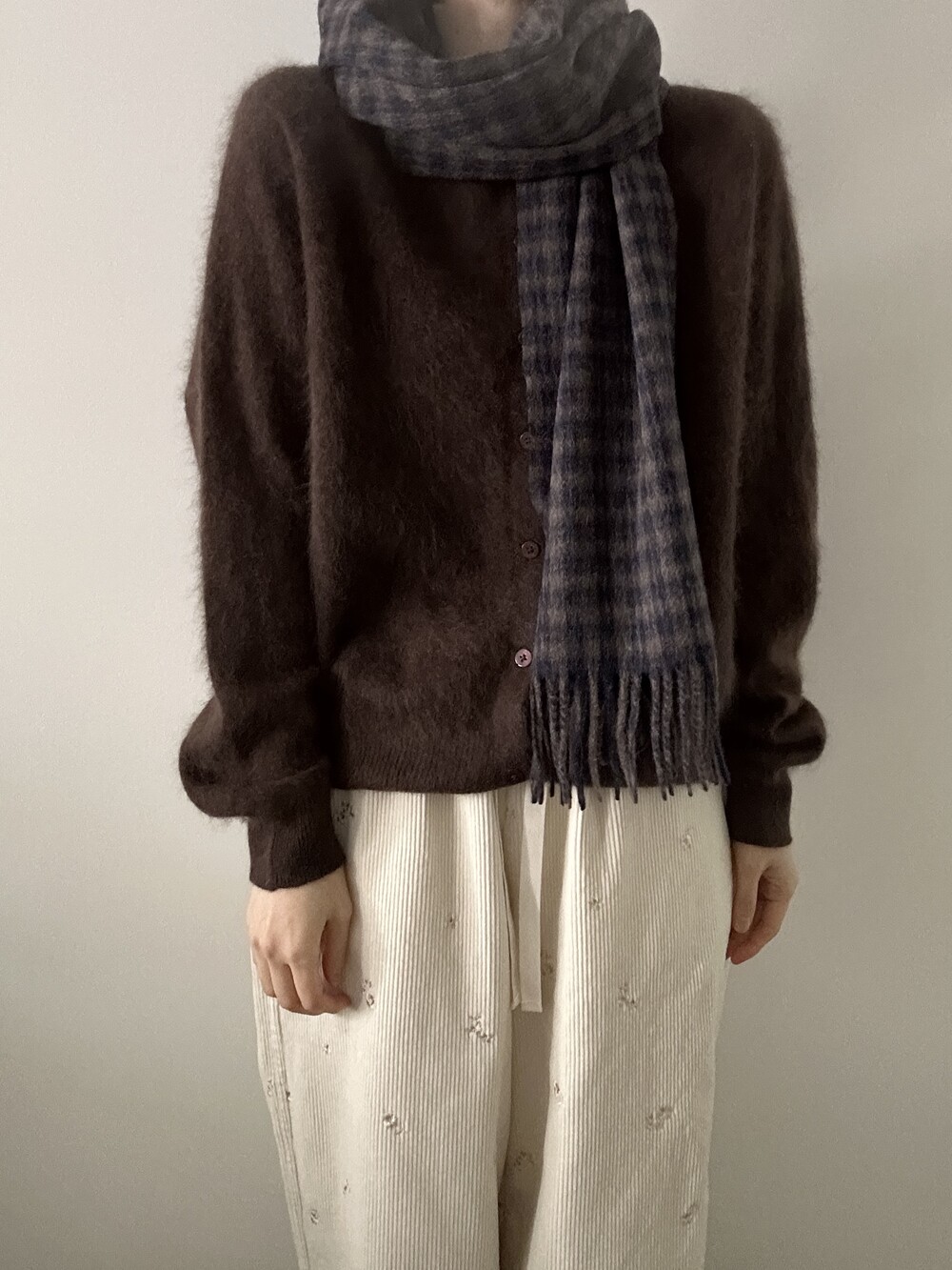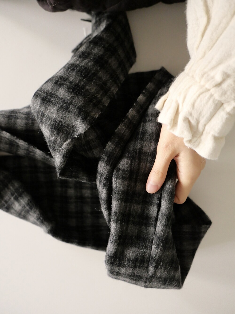 은은하게 흐르는 체크 패턴과 울 100%가 주는 묵직한 따뜻함이 매력적인 체크 머플러입니다.