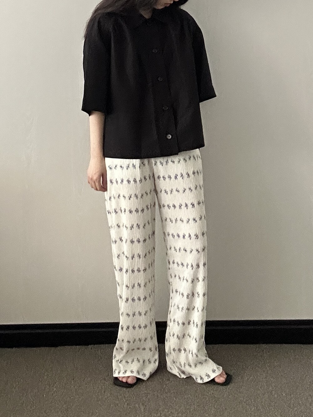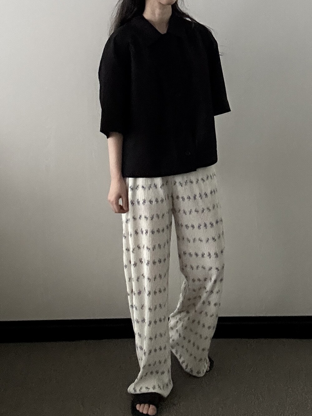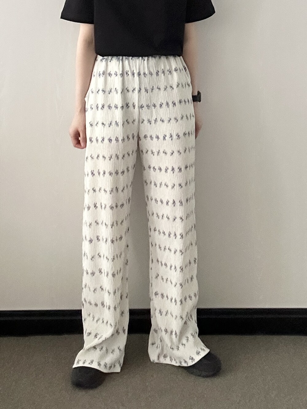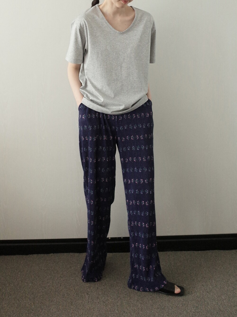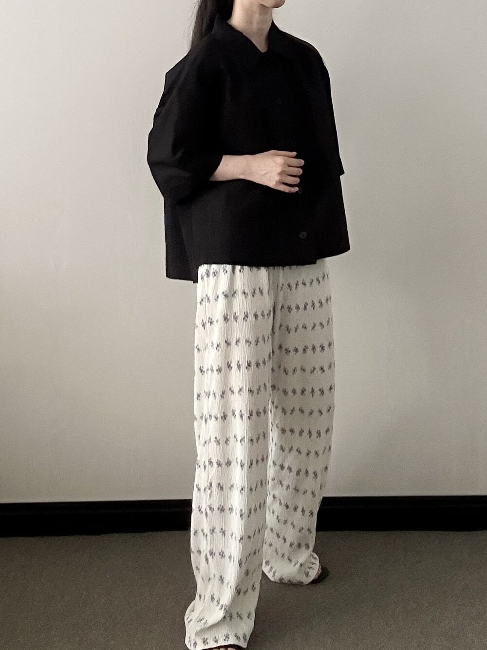얇은 플리츠 주름에 귀여운 플라워 나염이 되어있는 시원한 팬츠입니다.