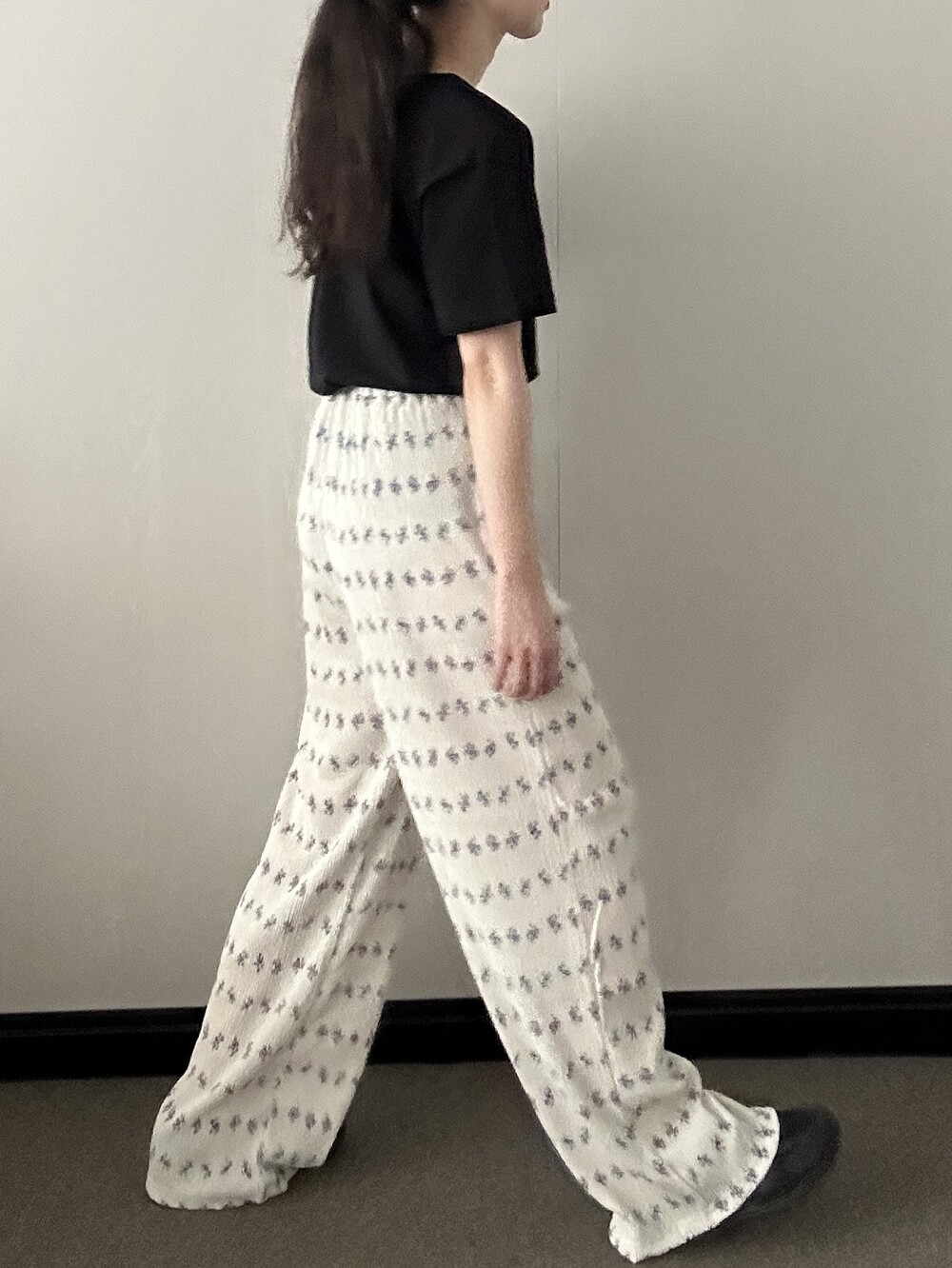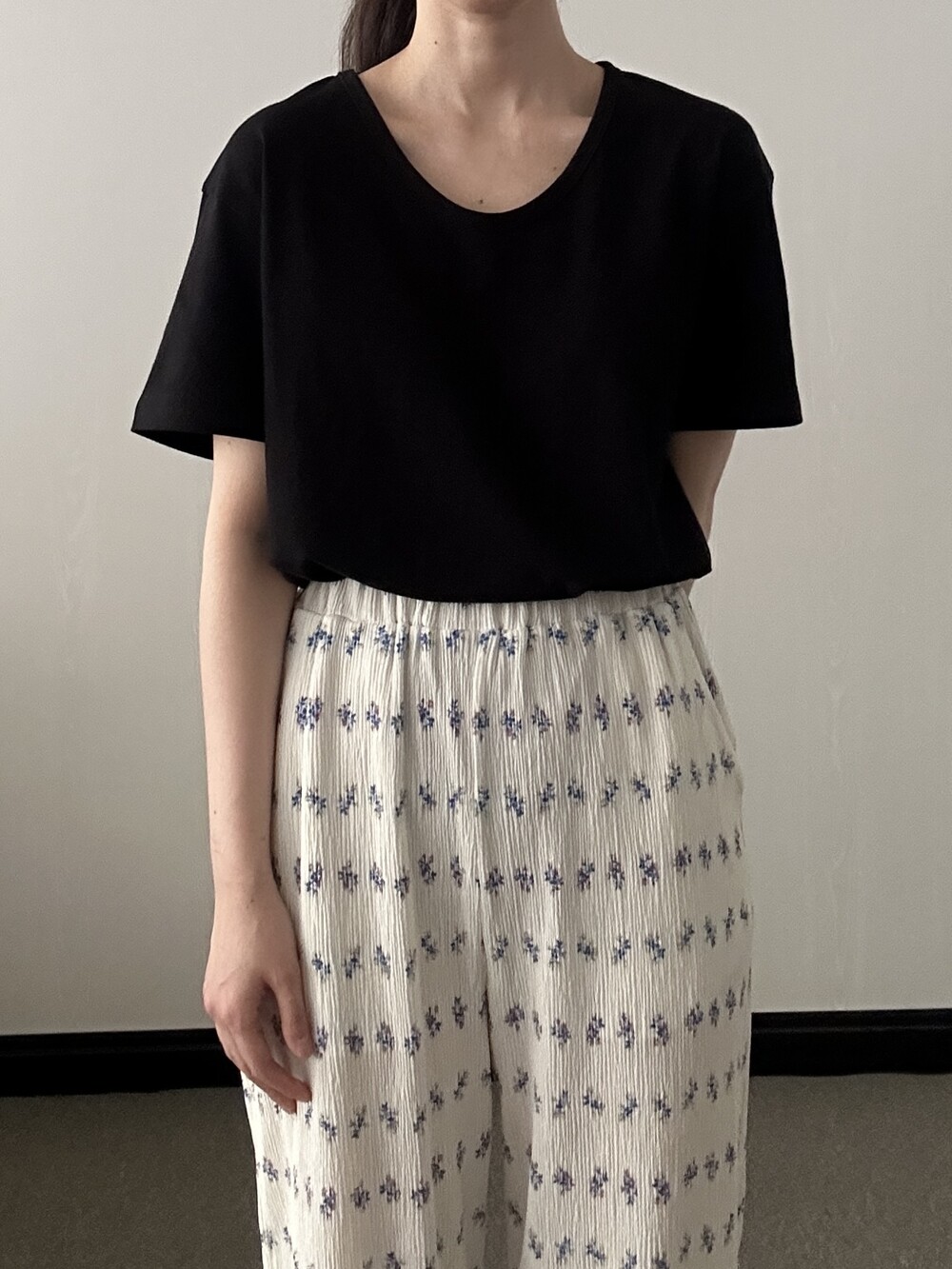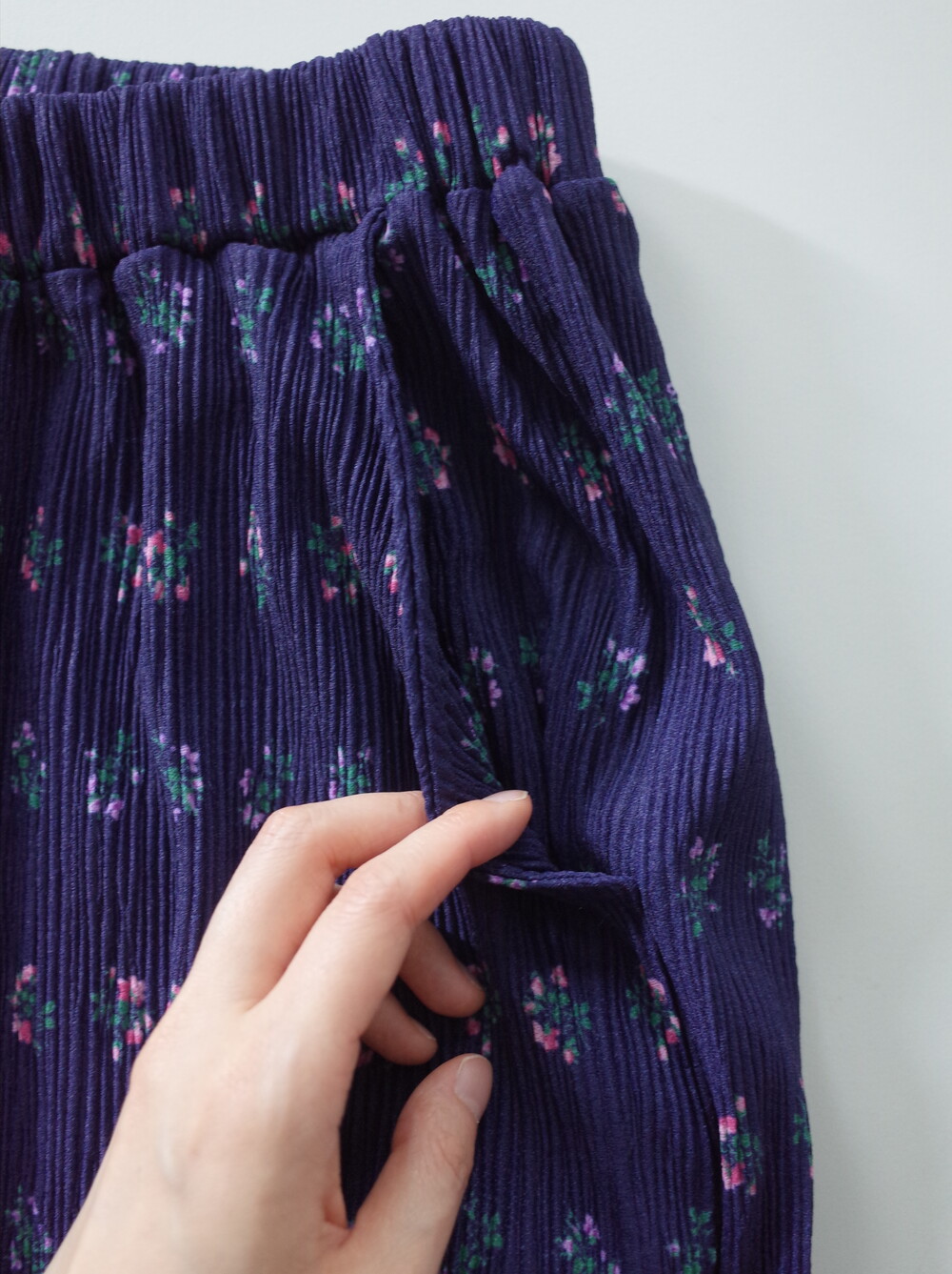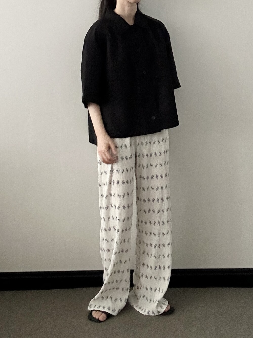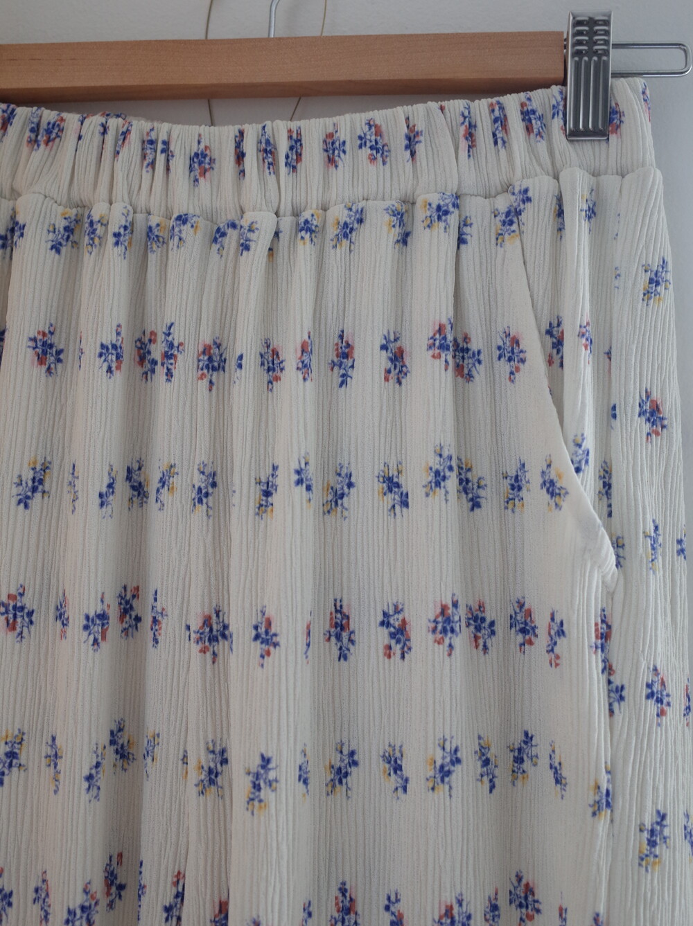 얇은 플리츠 주름에 귀여운 플라워 나염이 되어있는 시원한 팬츠입니다.