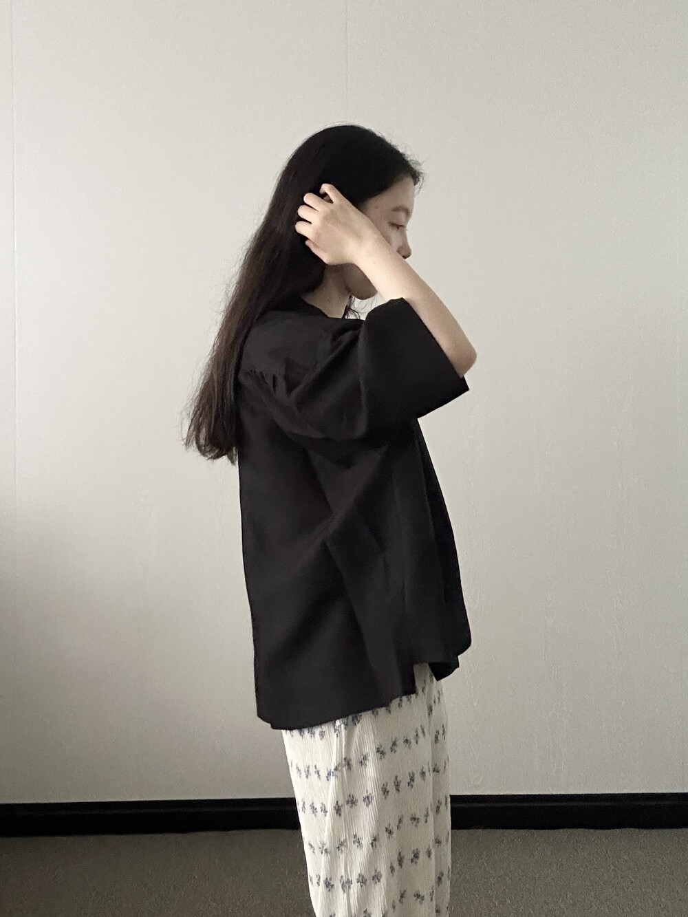 얇은 소재인 만큼 실루엣 비침은 있을 수 있으며 아이보리 컬러는 속옷에 조금만 신경 써 주세요!