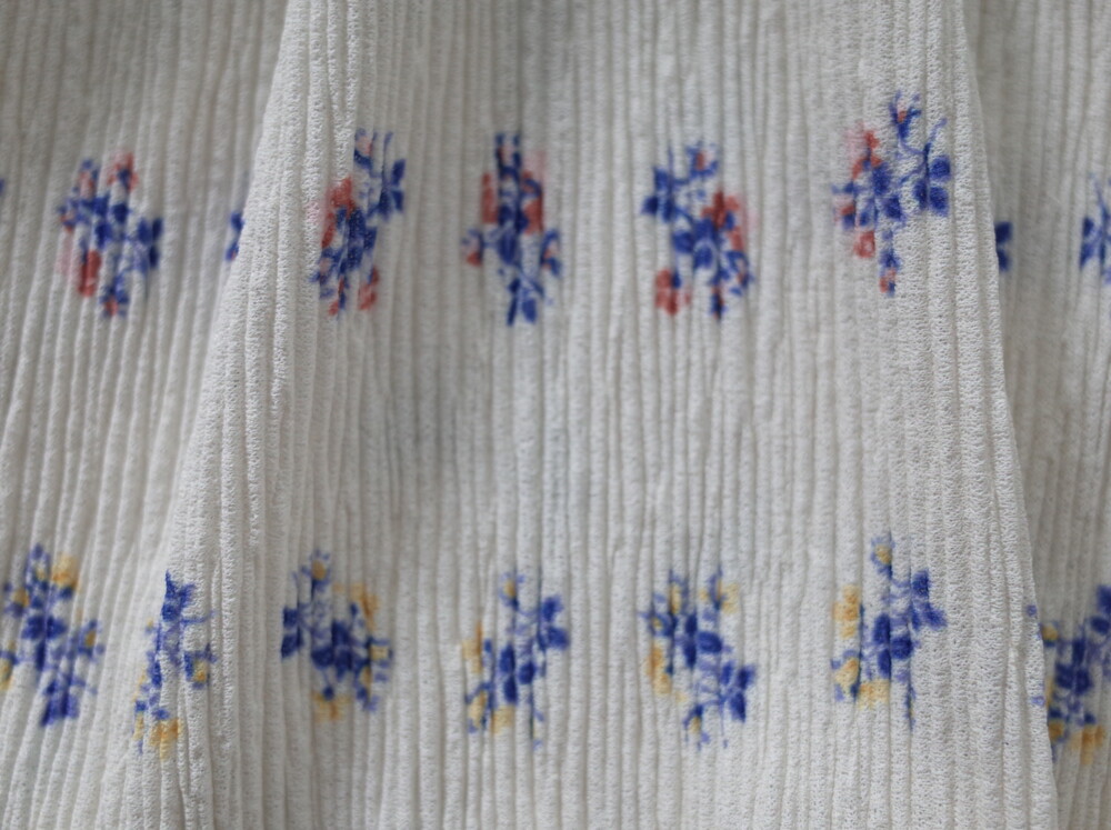 흔하지 않은 플리츠 소재에 과하지 않은 컬러 조합의 나염이 매력적입니다.
