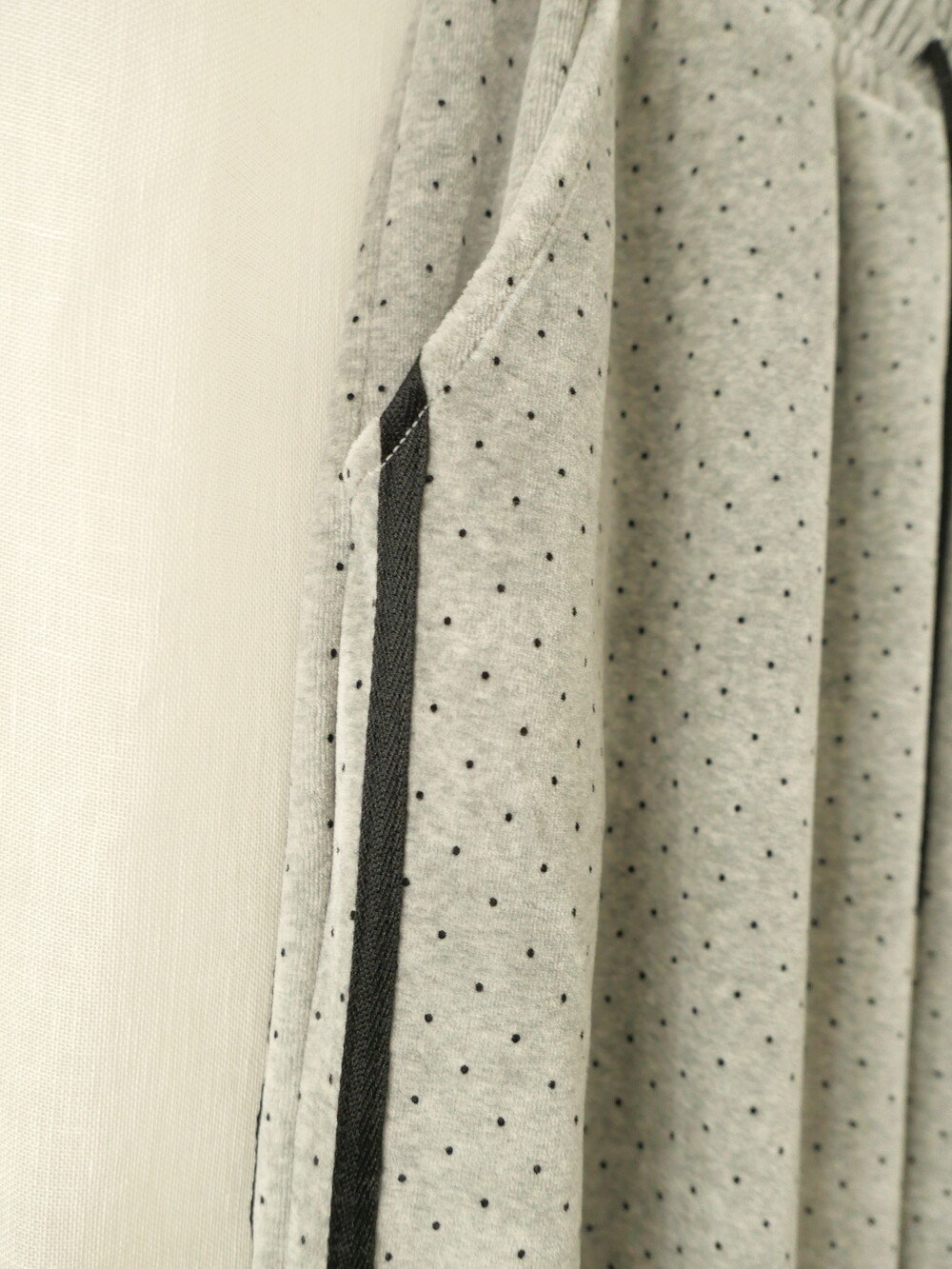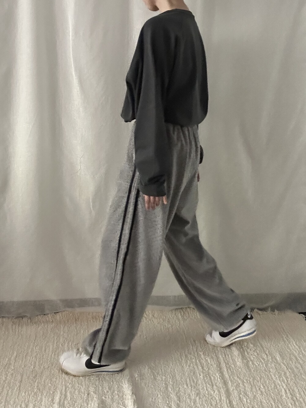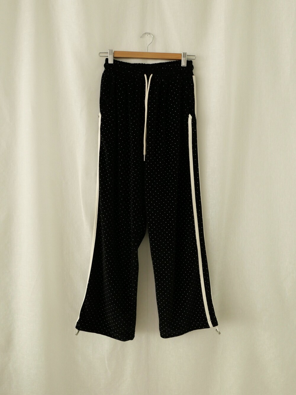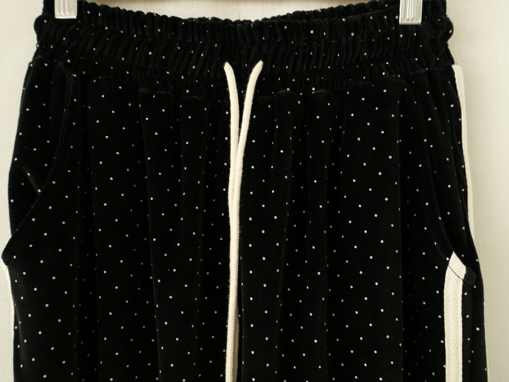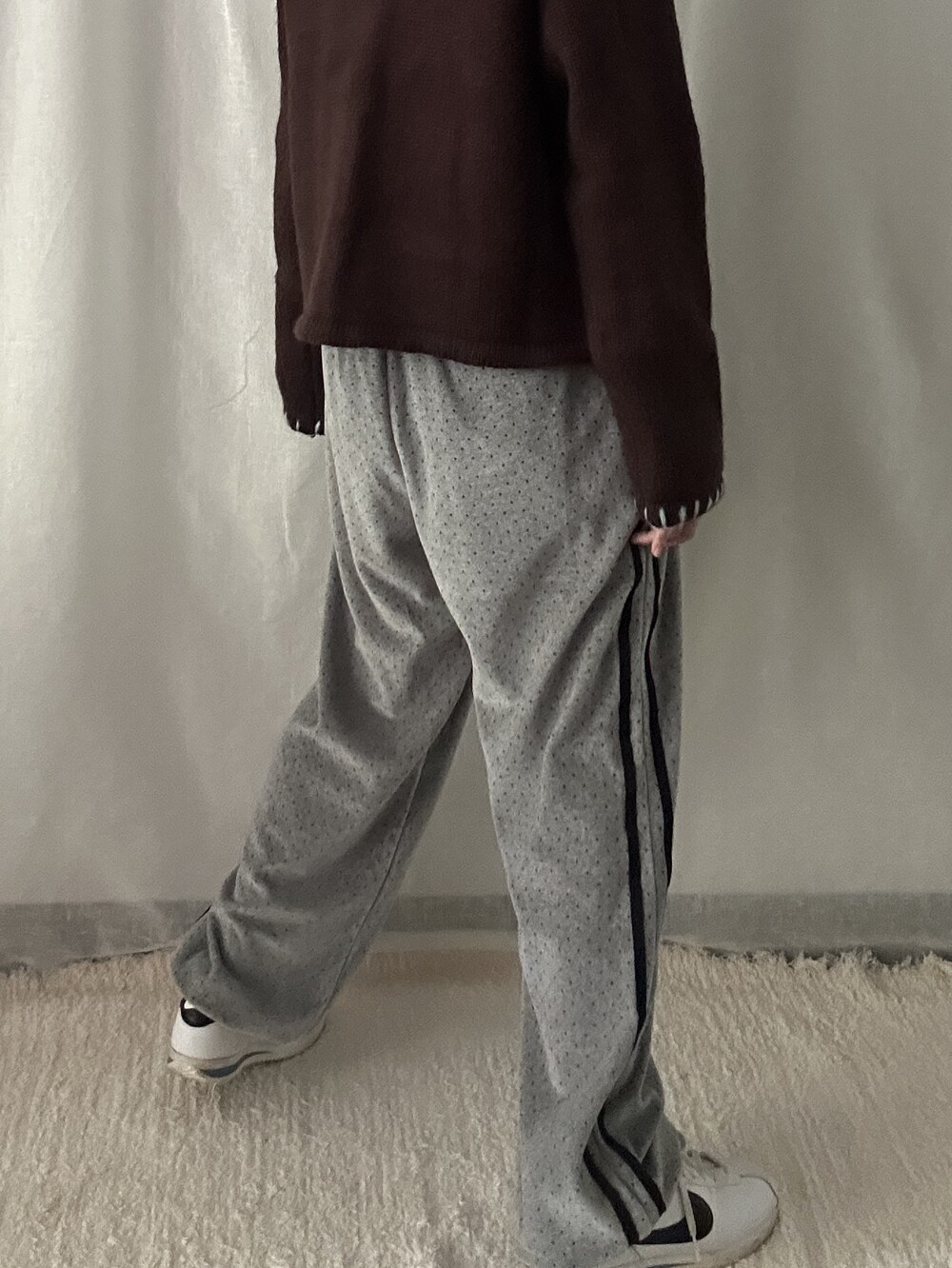 부드러운 벨벳 터치감이 느껴지는 트랙 팬츠예요.