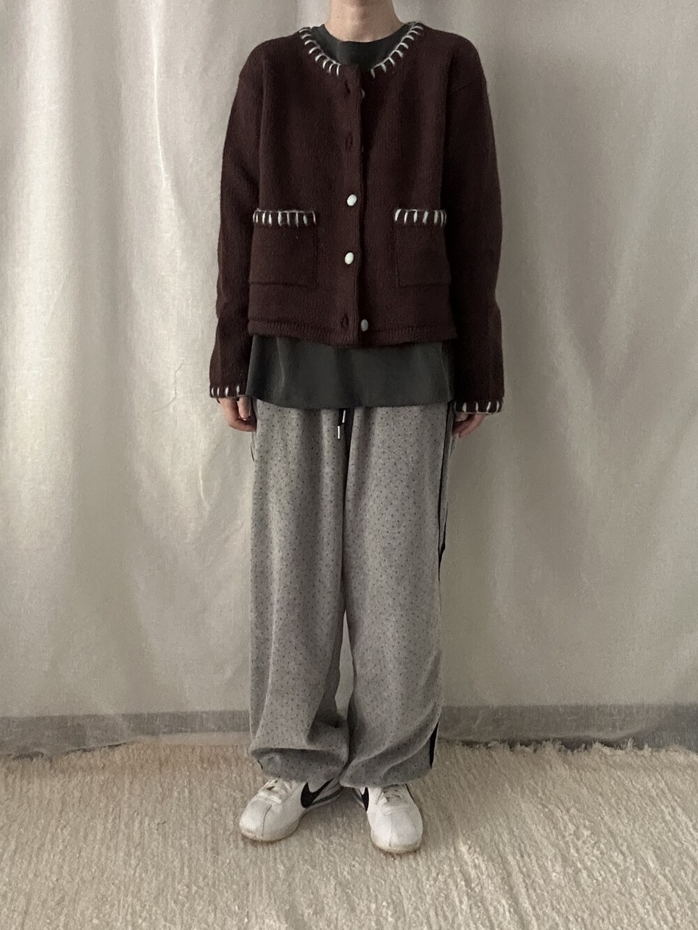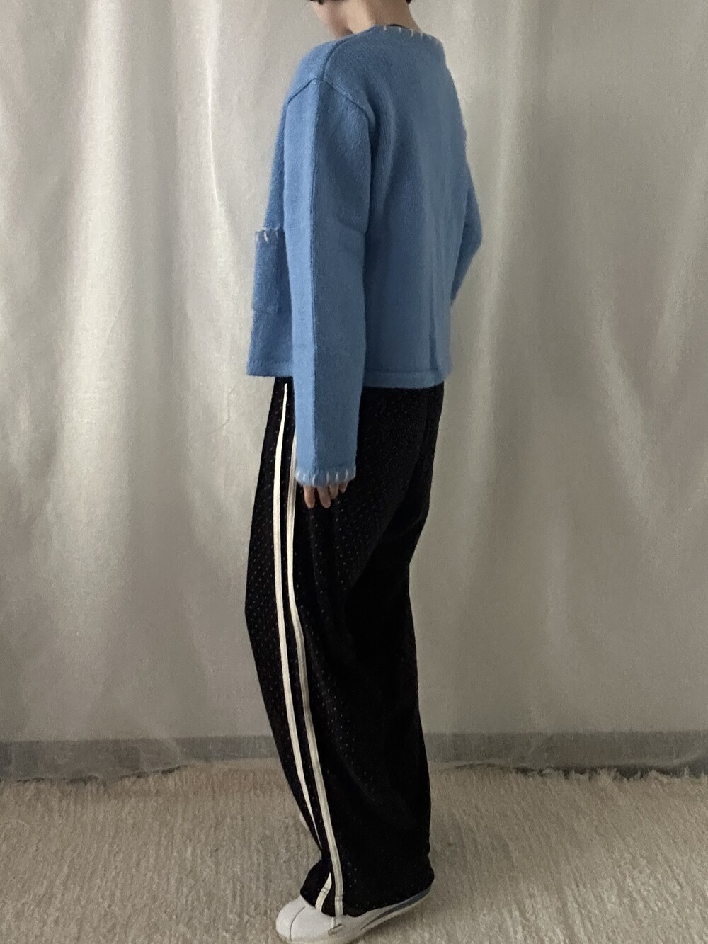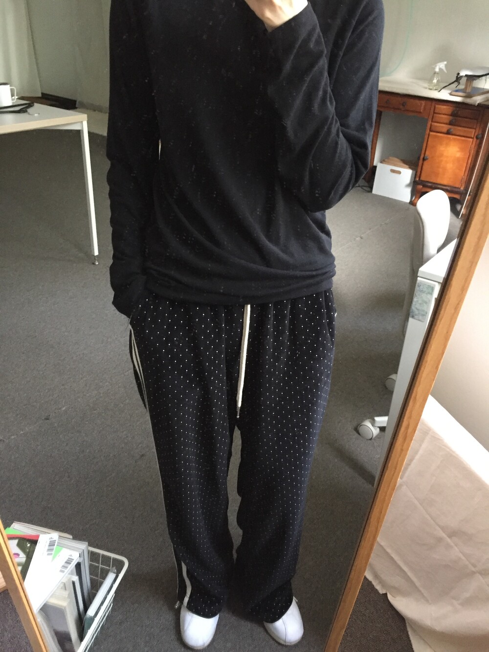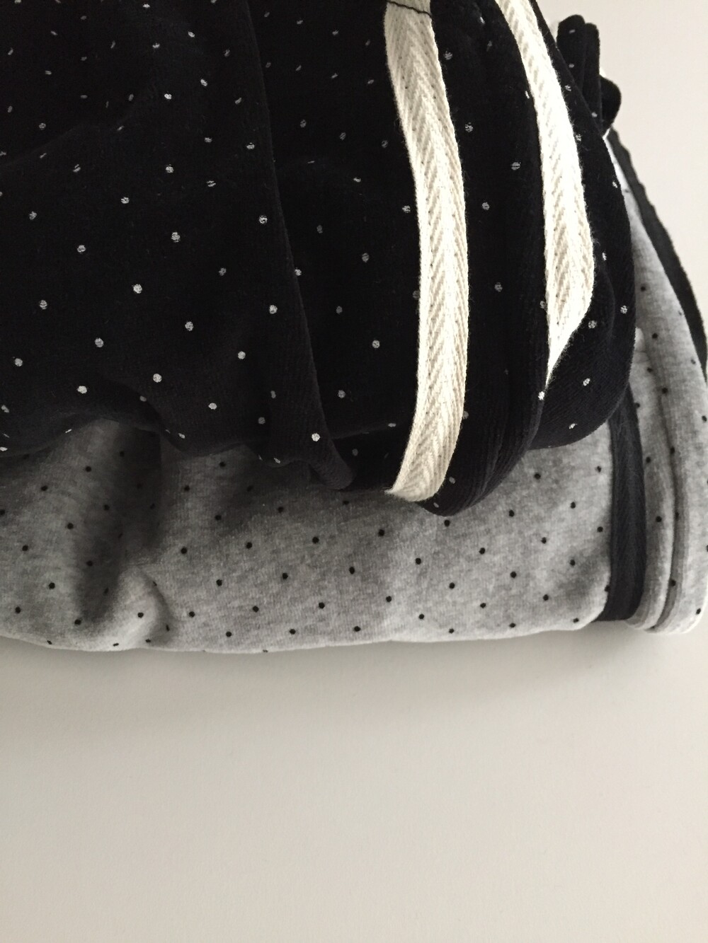 부드러운 벨벳 터치감이 느껴지는 트랙 팬츠예요.
