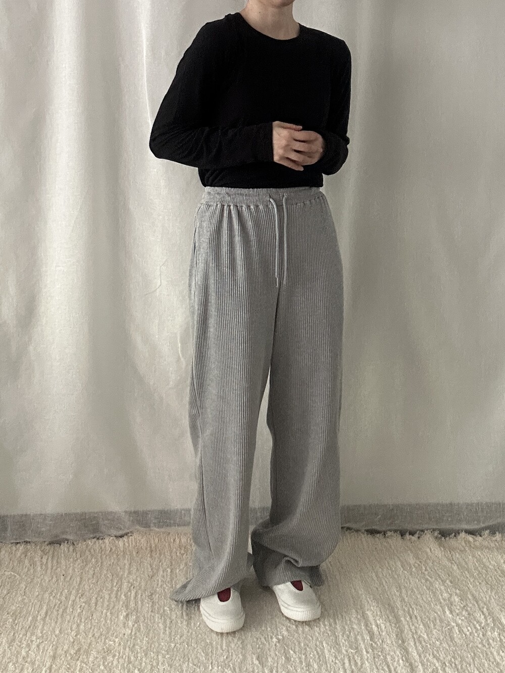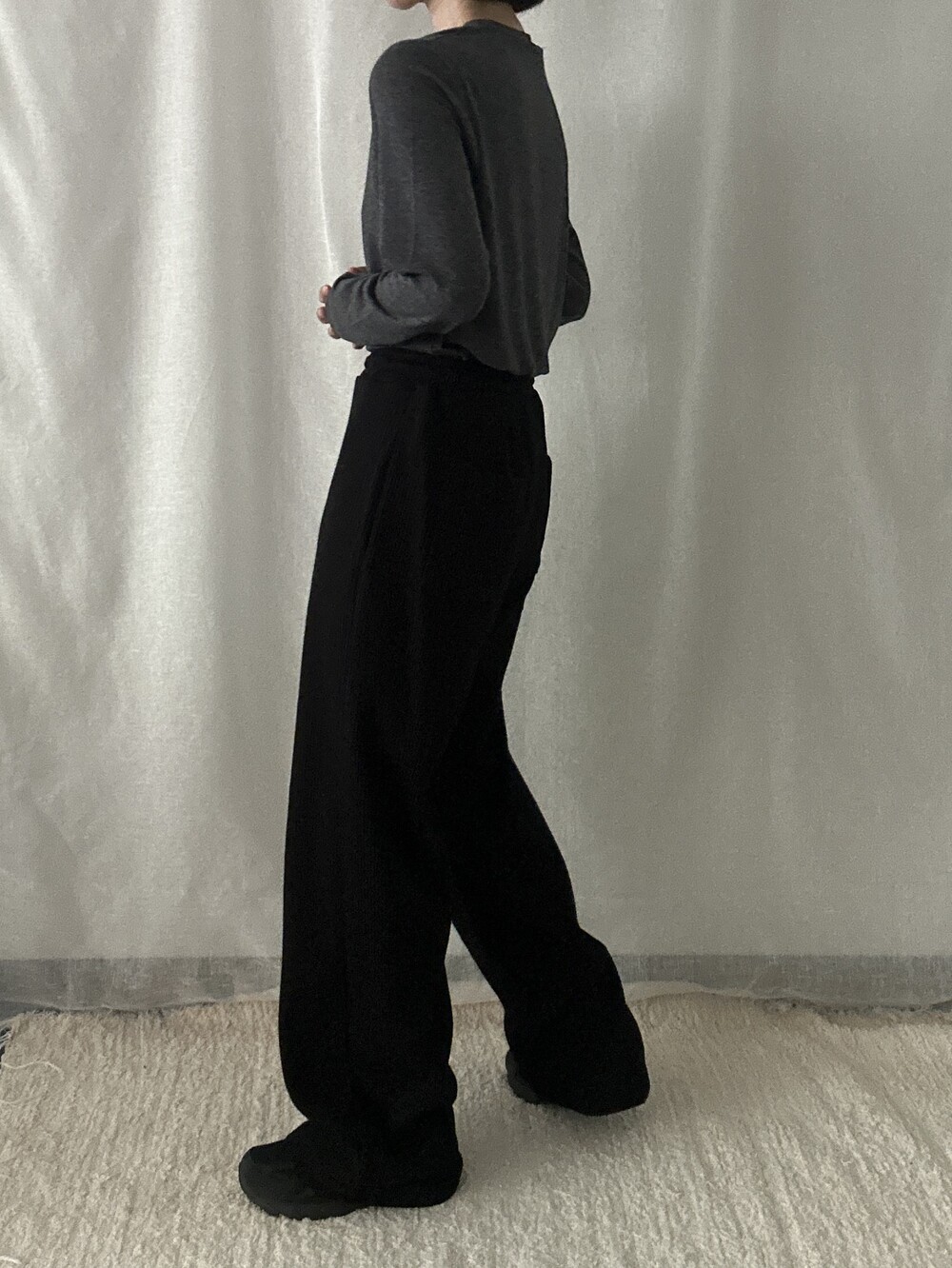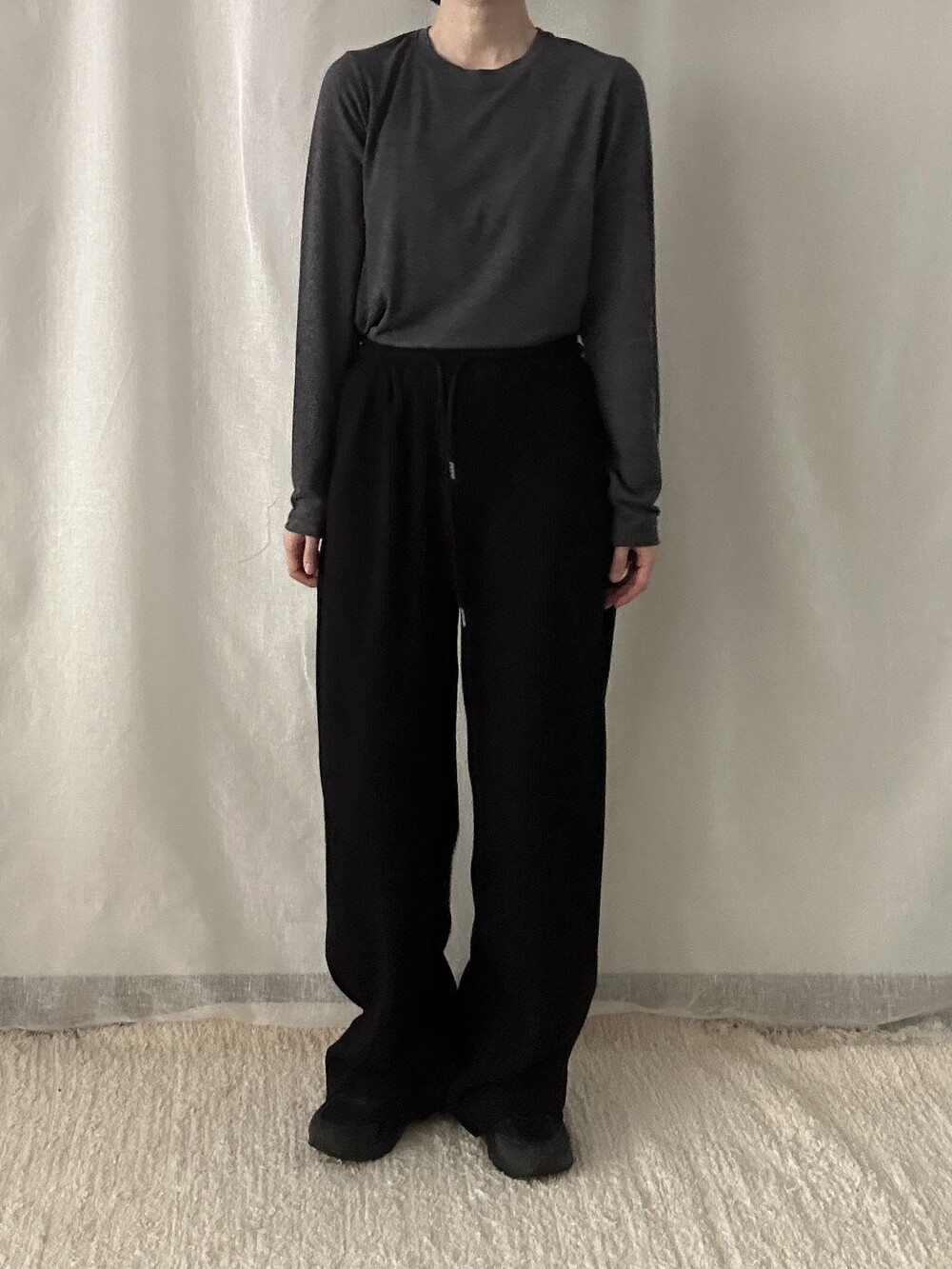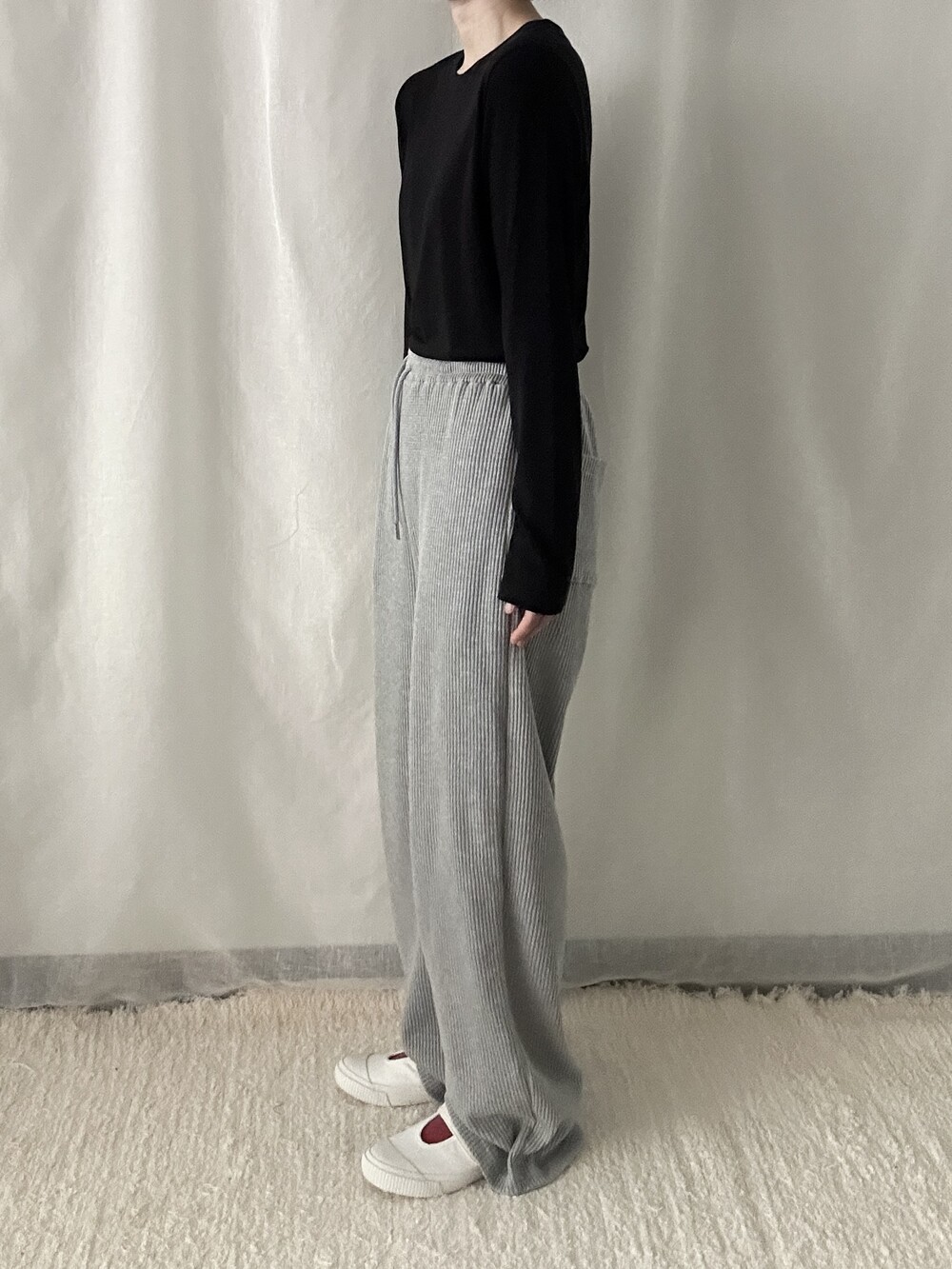 투박하지 않고 유연한 느낌의 조직감에 과하지 않은 와이드 핏이라 편안하면서도 멋스럽게 착용하기 좋습니다. 뒷부분에 포켓이 들어가 힙 부분의 라인이 부담스럽지 않습니다. 티셔츠나 맨투맨과 매치해 트레이닝룩이나 산책룩으로 활용해도 좋고 블라우스, 스웨터와 매치해도 좋아 다양한 무드로 활용 가능합니다.