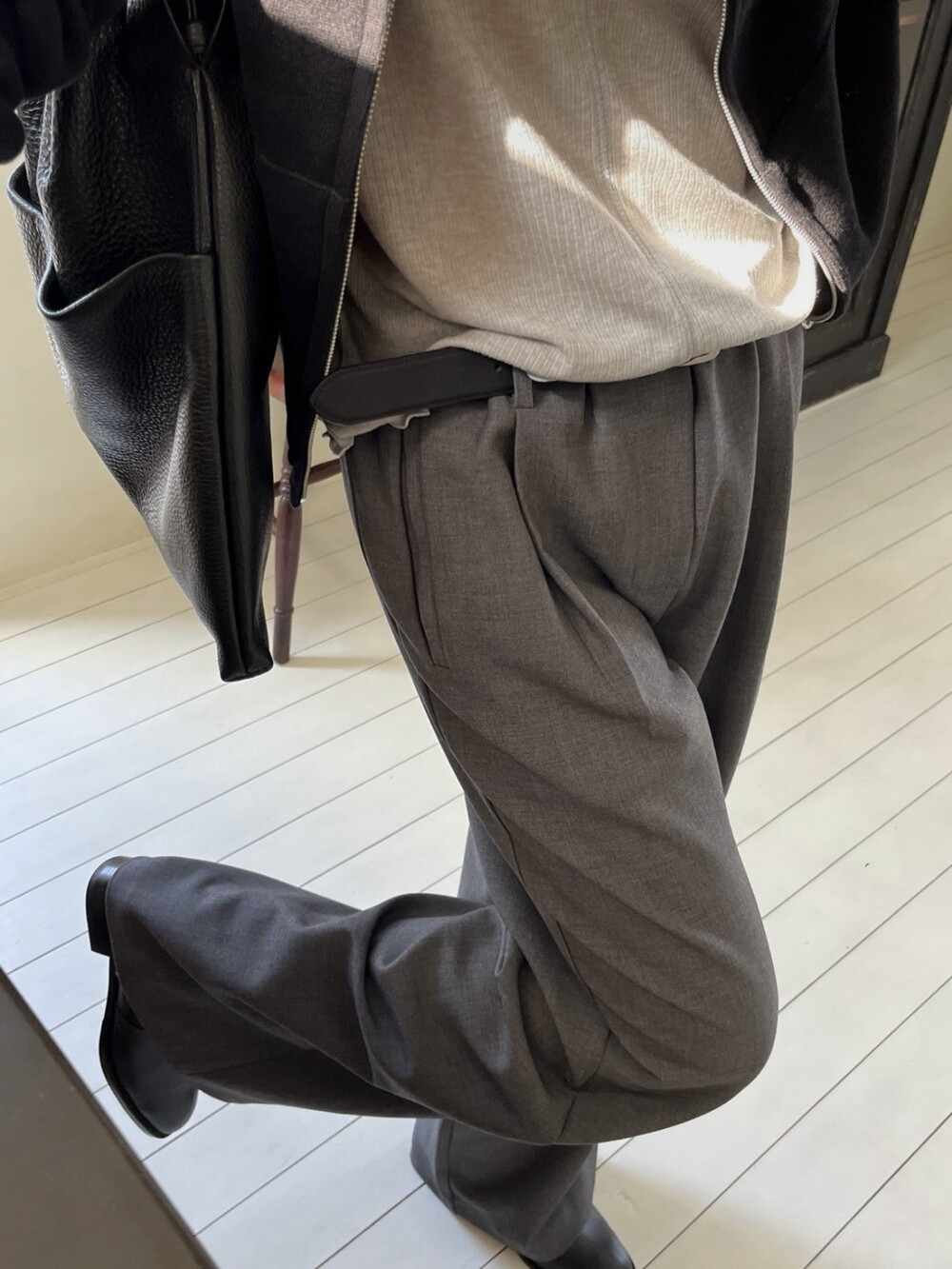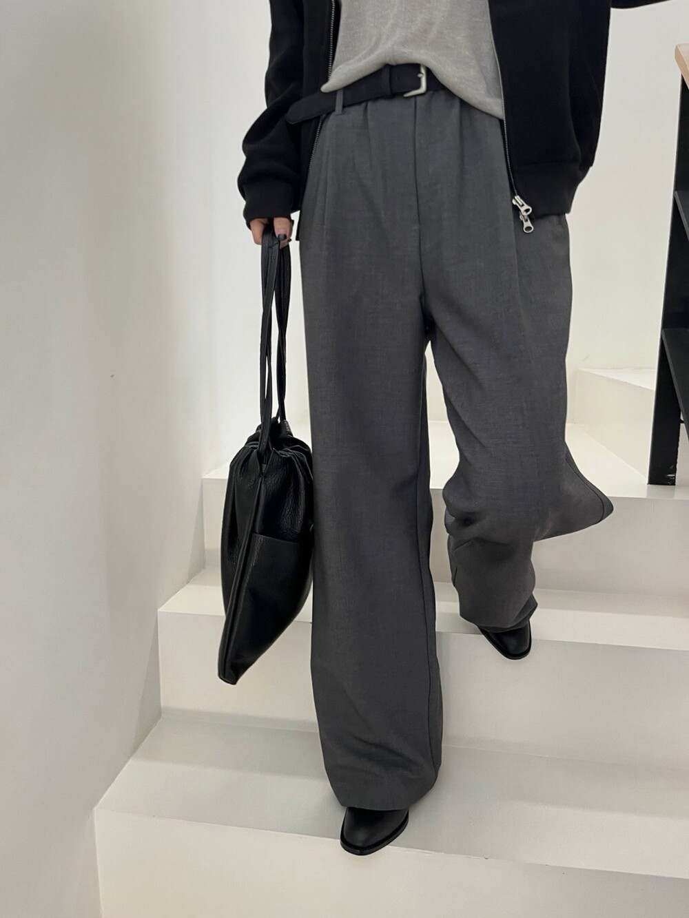 밴딩 팬츠이지만 지퍼 장식, 포켓 디테일, 허리 벨트 등을 살려 충분히 오피스룩으로 활용할 수 있도록 제작되었습니다.