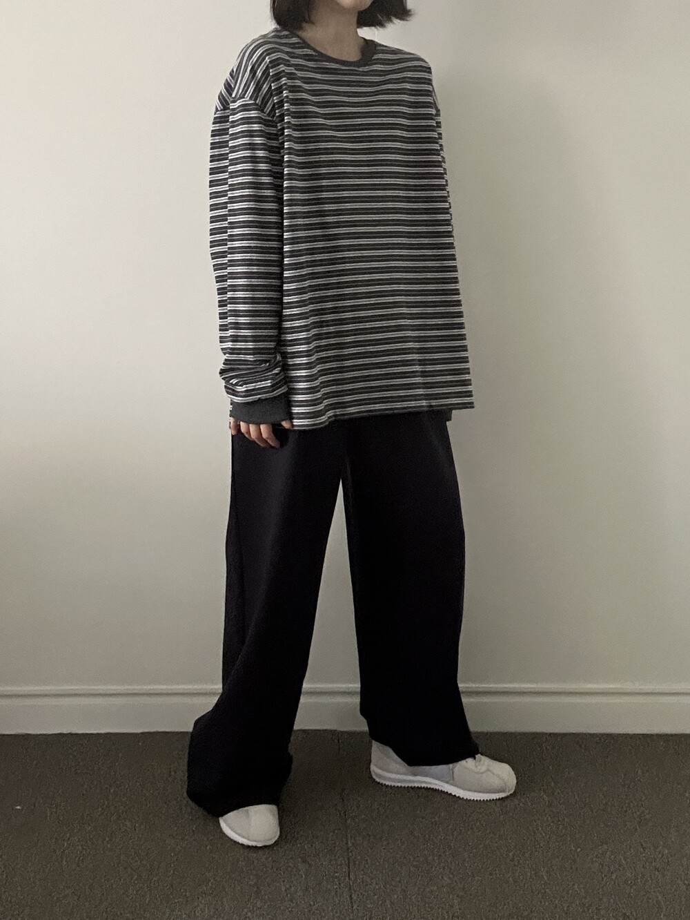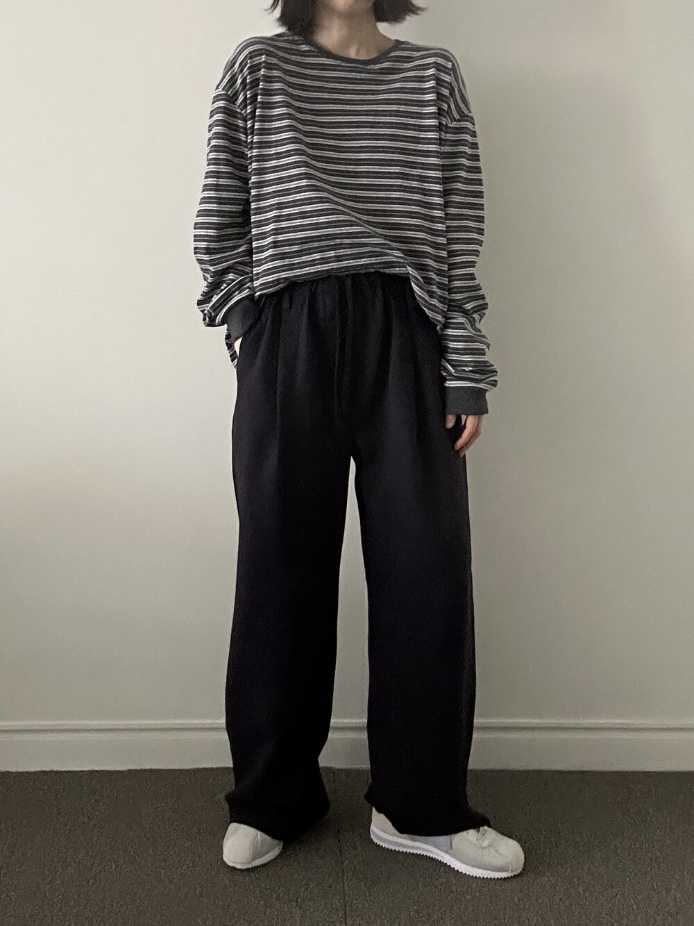 부담 없이 입기 좋은 적당한 와이드 핏으로 어떤 상의와 매치하느냐에 따라 다양한 분위기로 활용 가능합니다.