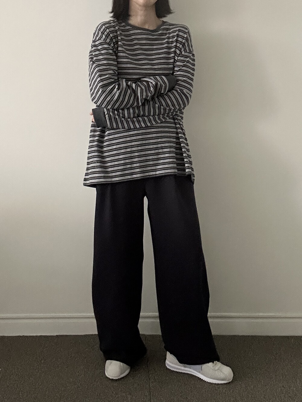 롱 와이드 핏으로 길이 수선 후에도 크게 디자인이 바뀌지 않아 키가 작은 분들은 수선 추천합니다.
