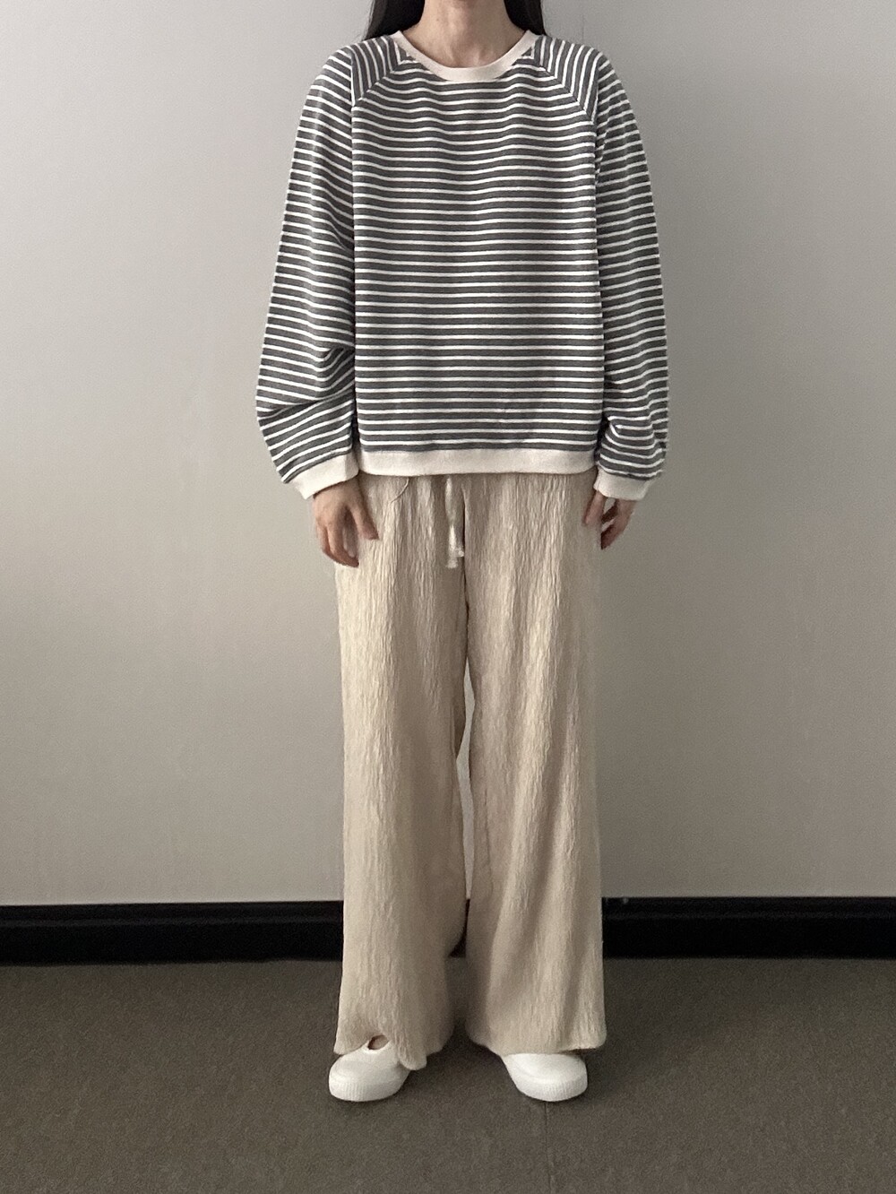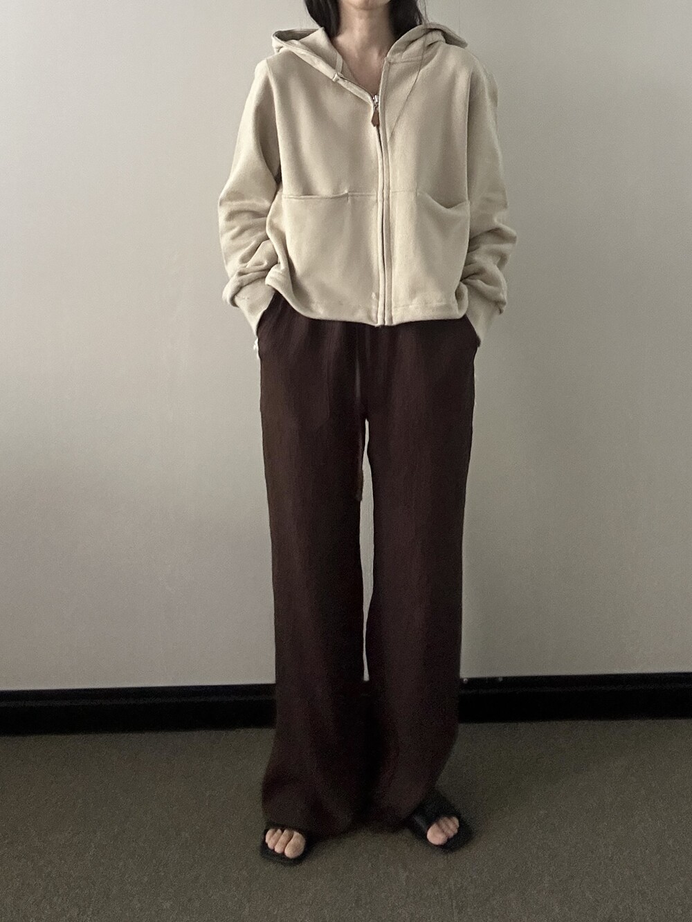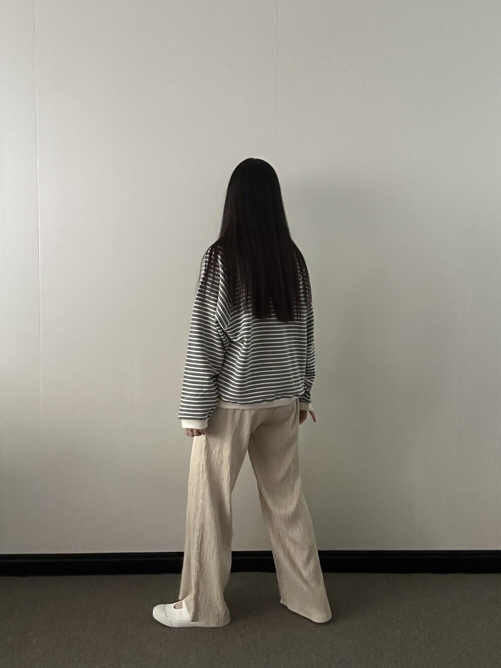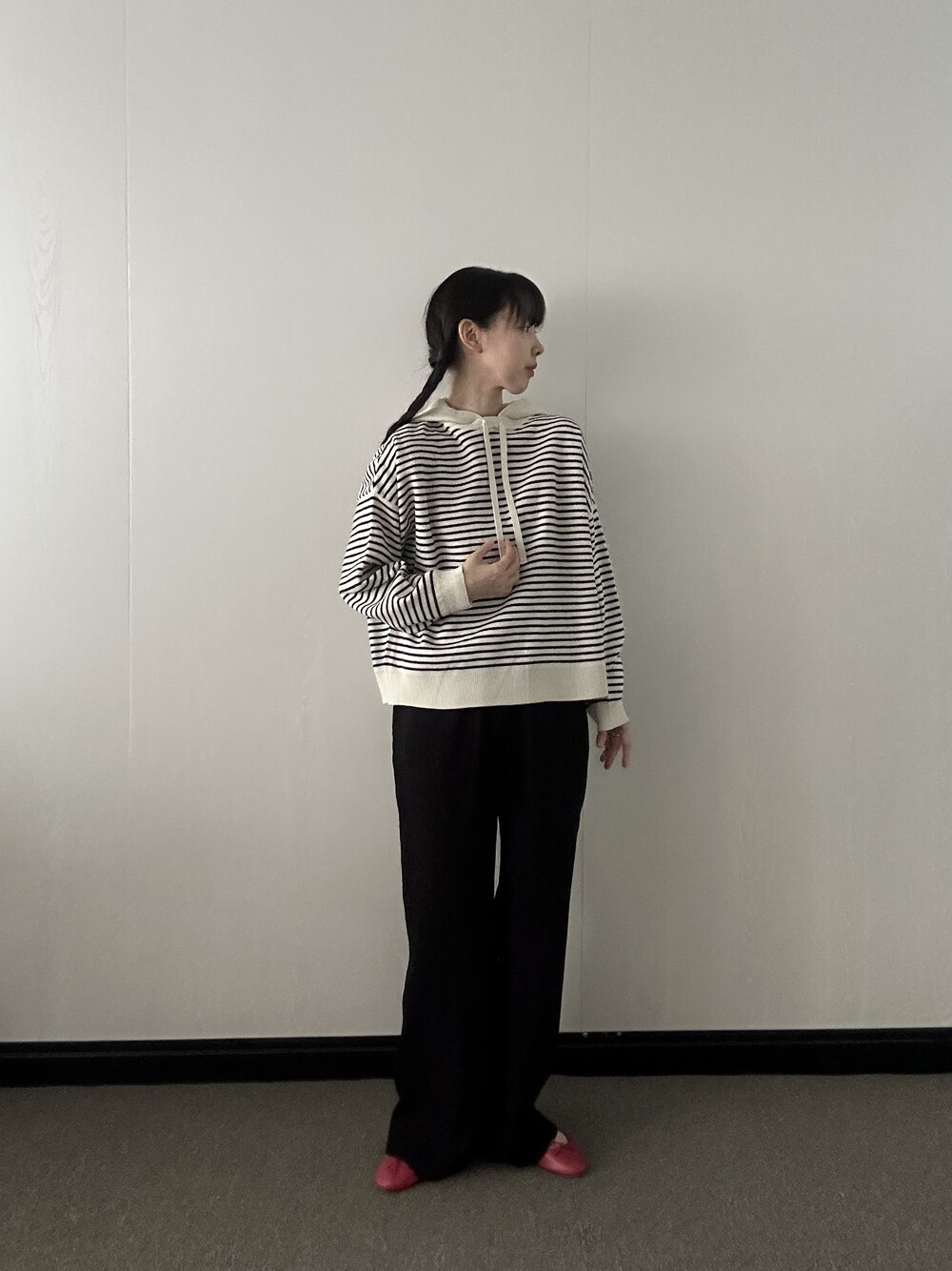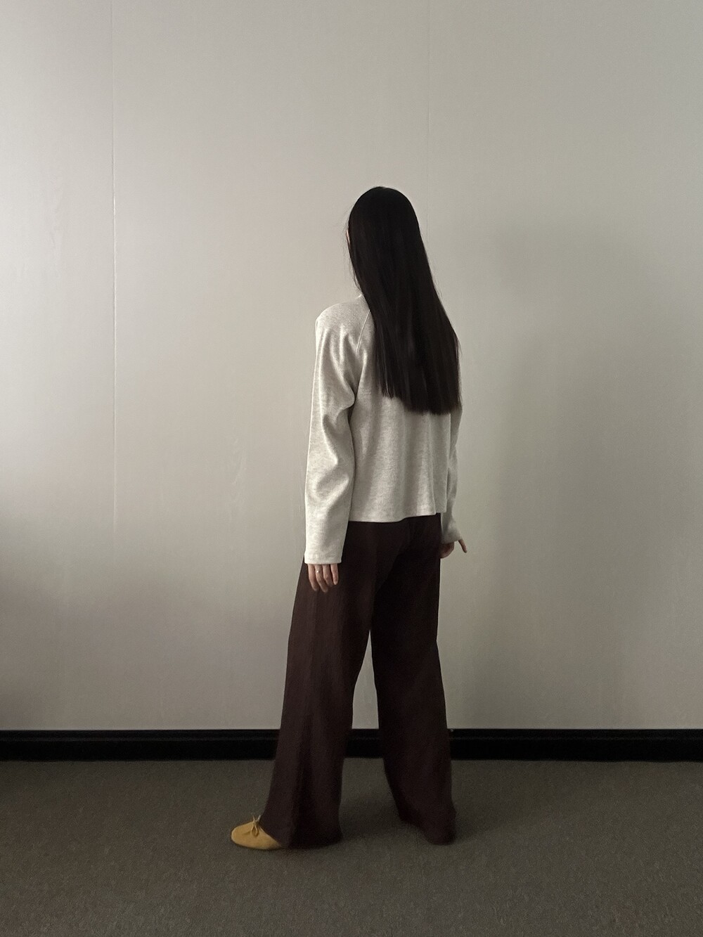 과하지 않은 와이드 롱 팬츠로 롱 셔츠나 원피스와 레이어드해도 좋습니다.