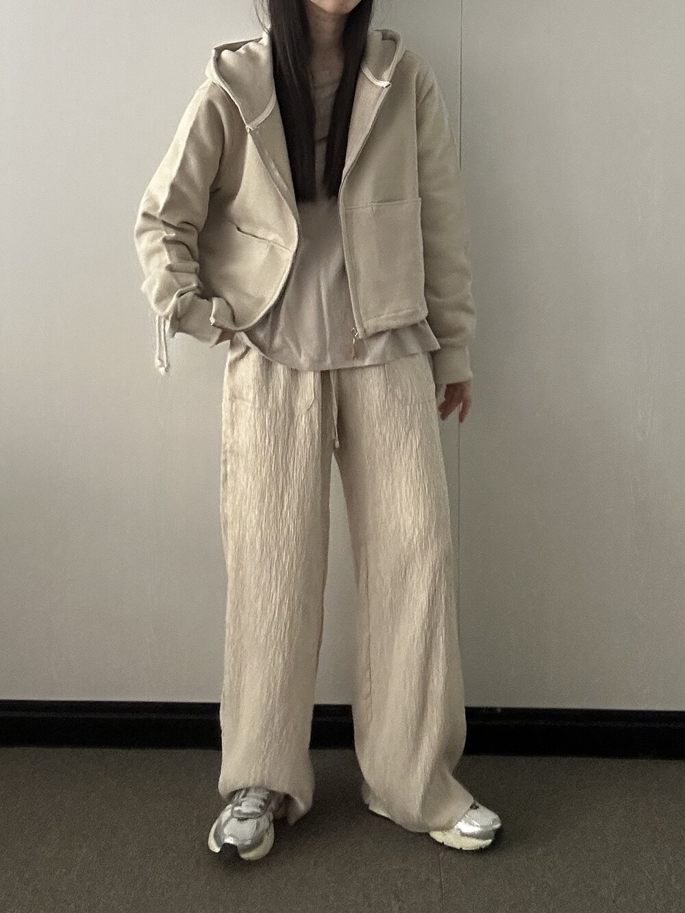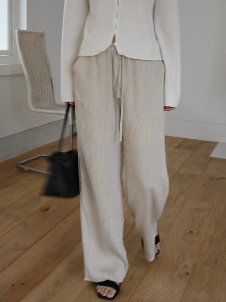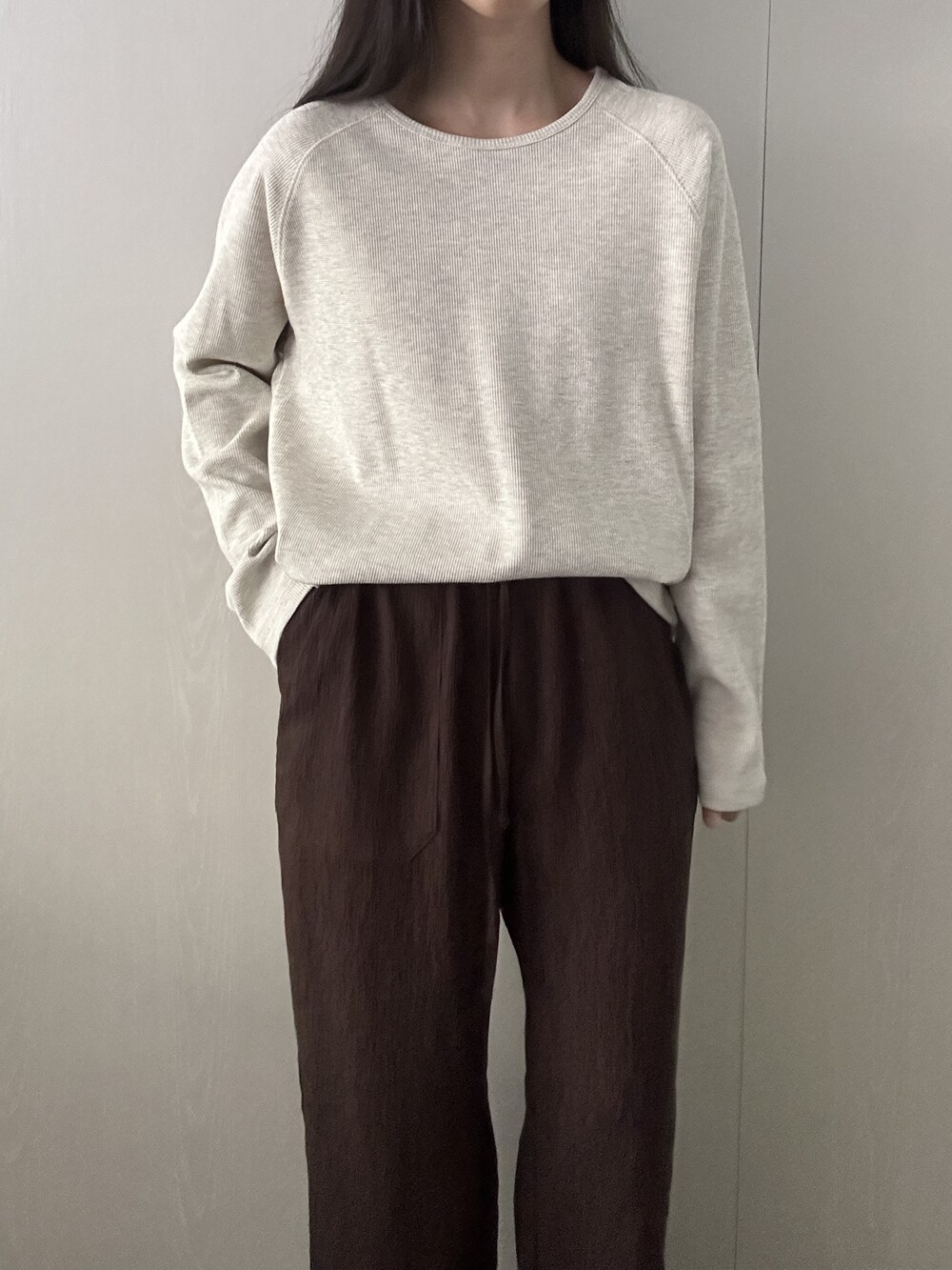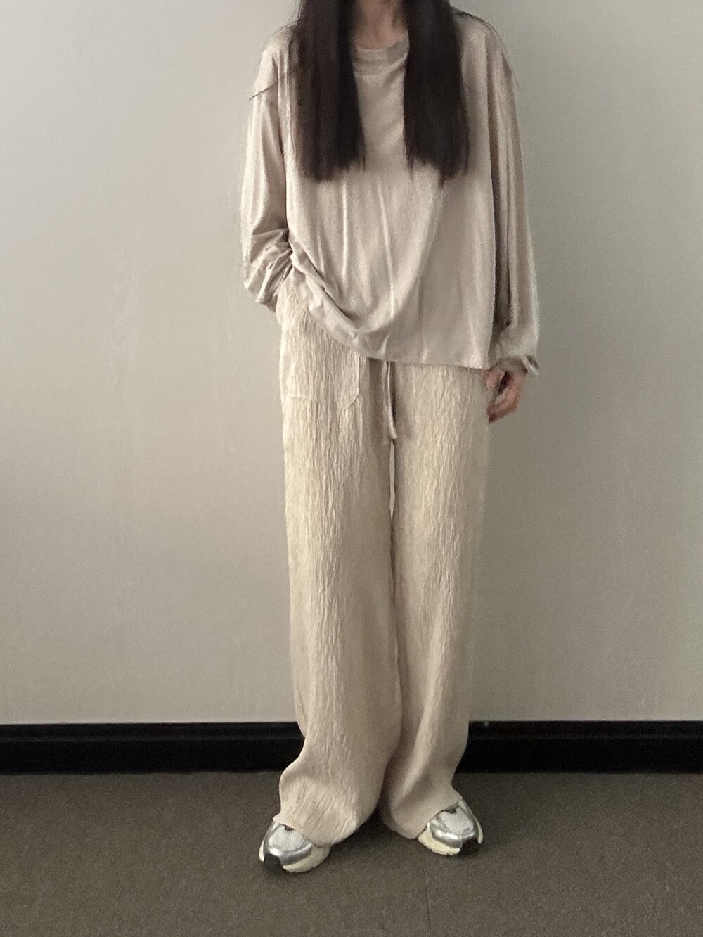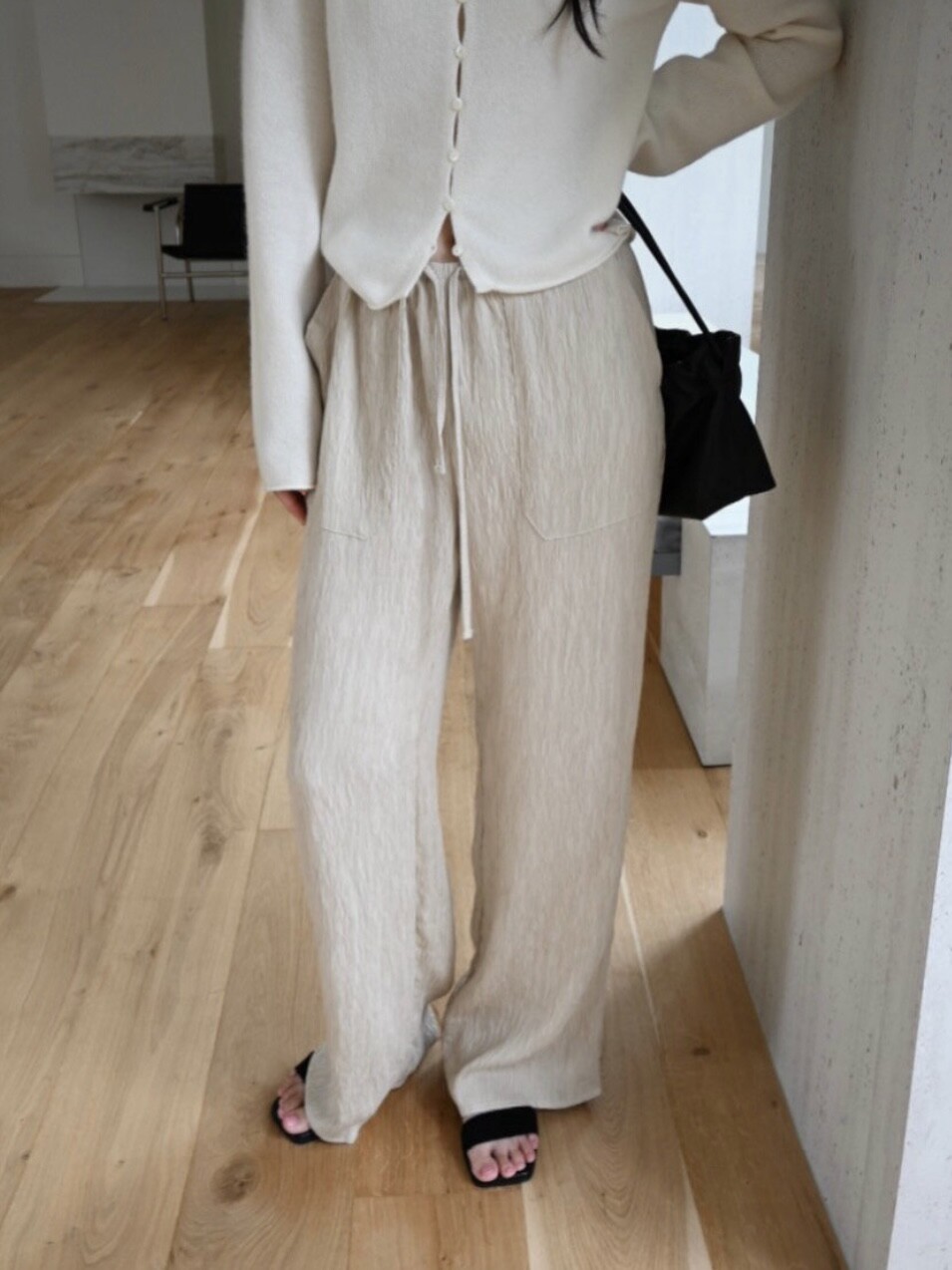 과하지 않은 와이드 롱 팬츠로 롱 셔츠나 원피스와 레이어드해도 좋습니다.