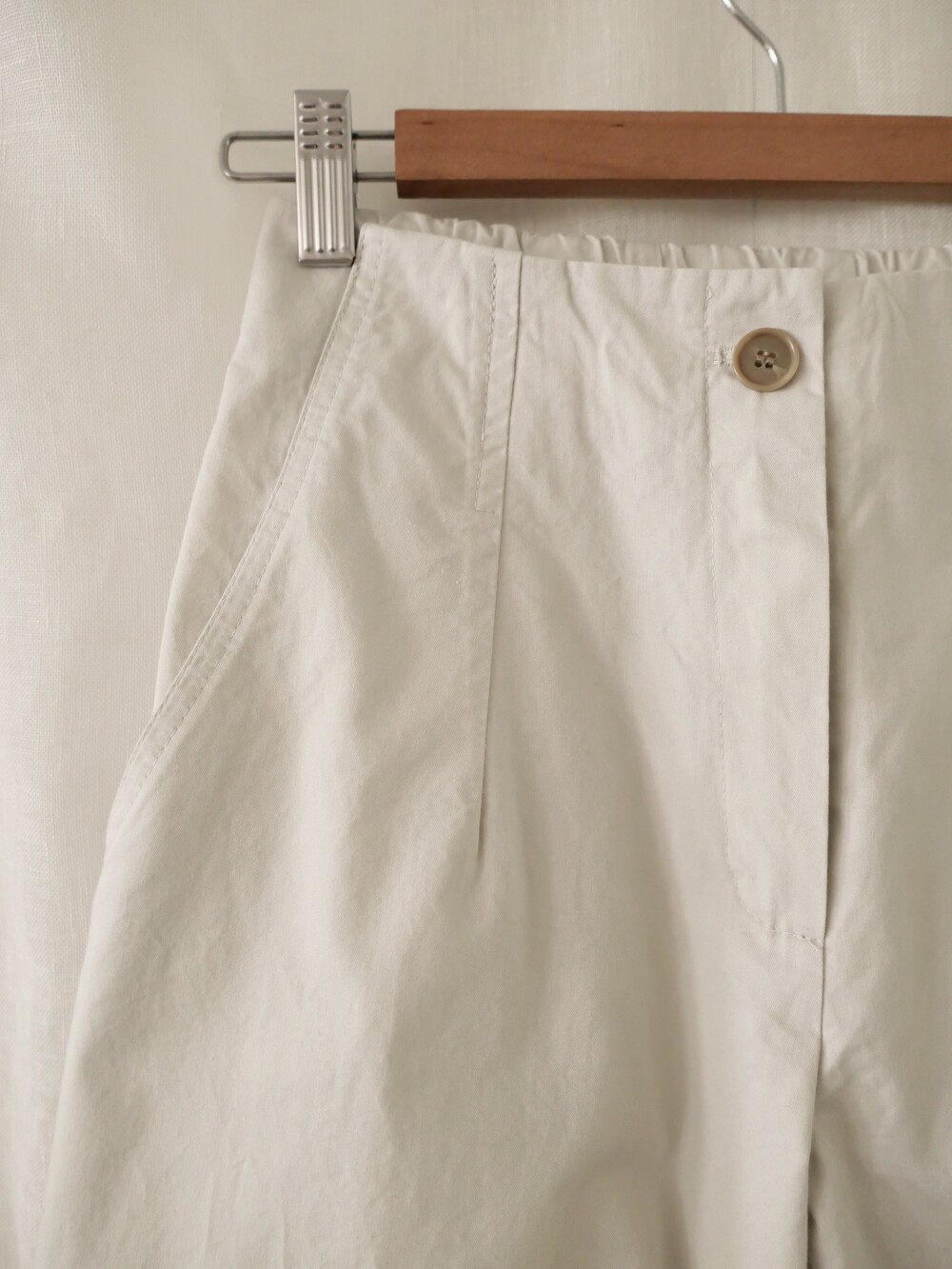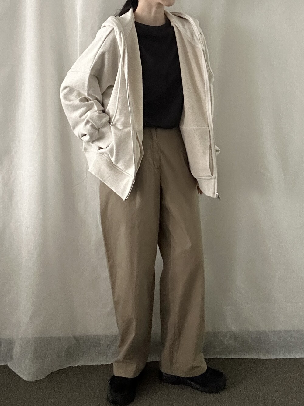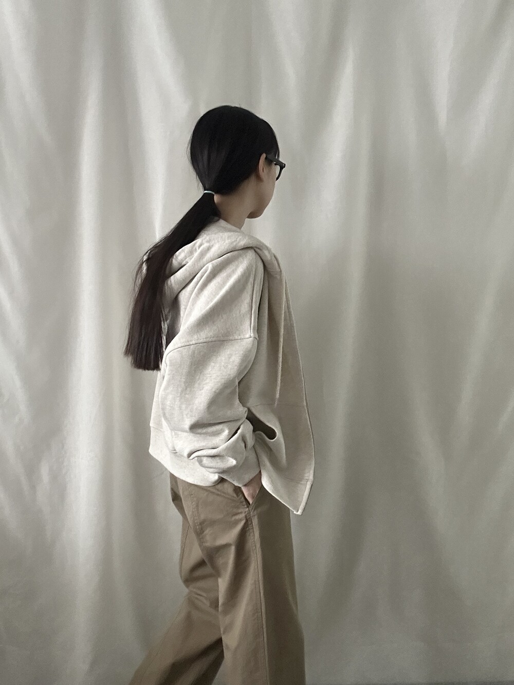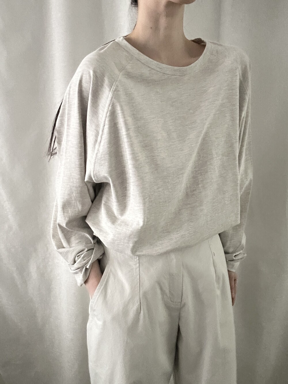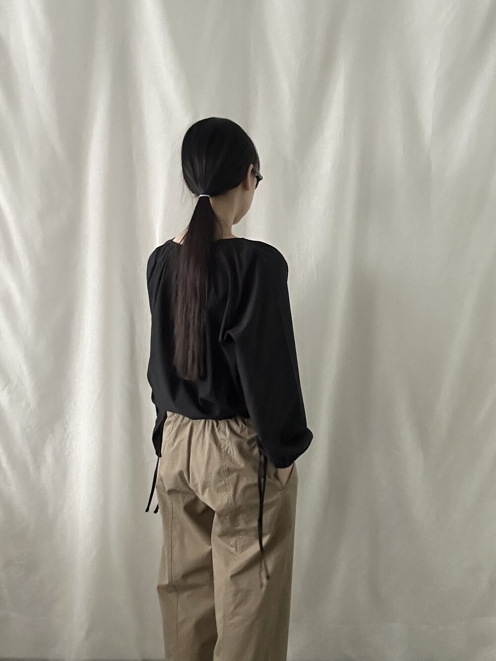 너무 얇지도 도톰하지도 않은 두께감에 빳빳하지 않은 적당히 유연한 소재로 주름마저도 내추럴해보여 마음에 들었던 제품입니다.