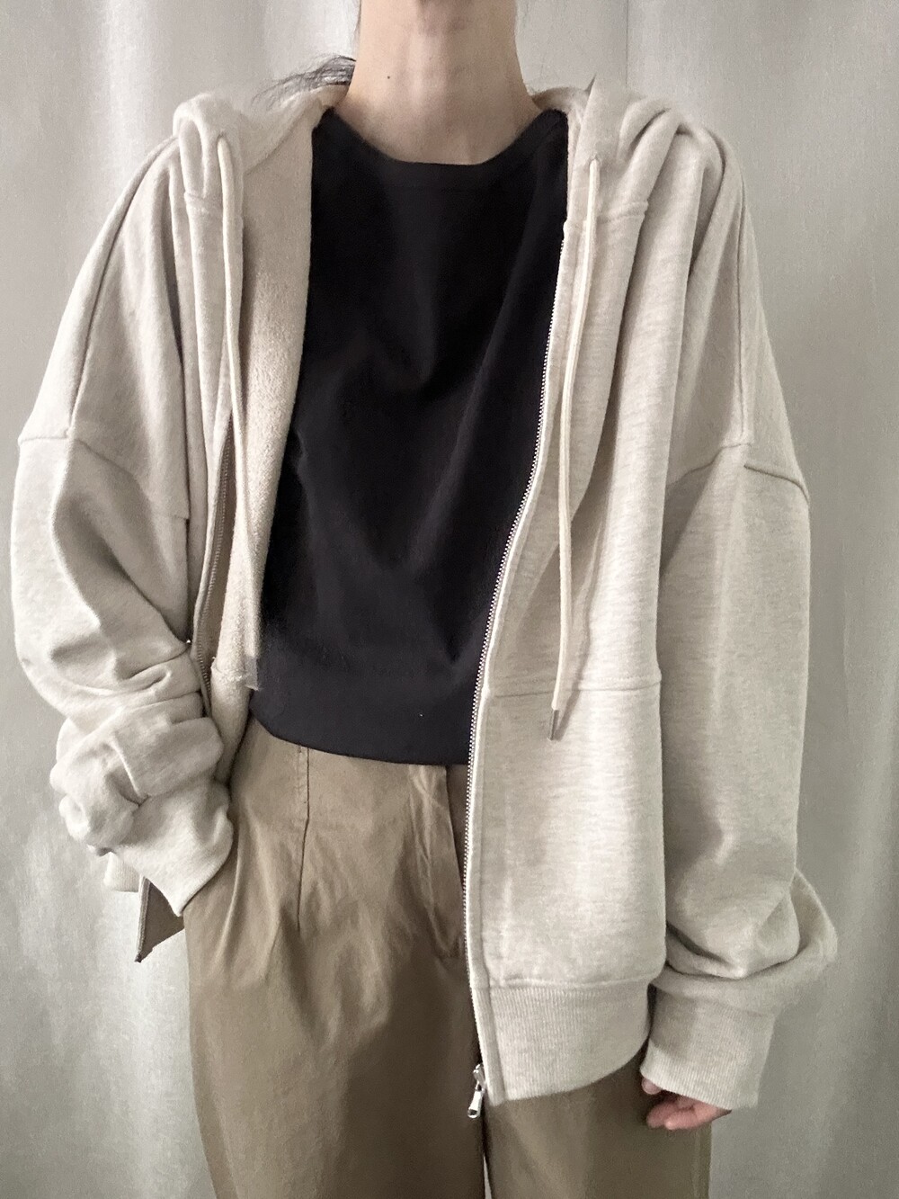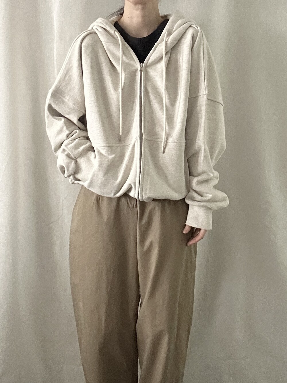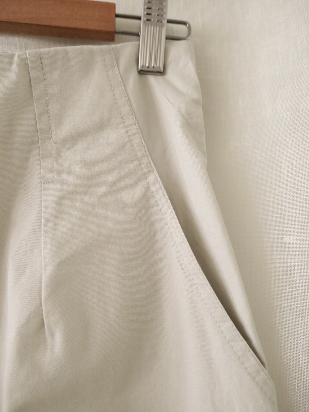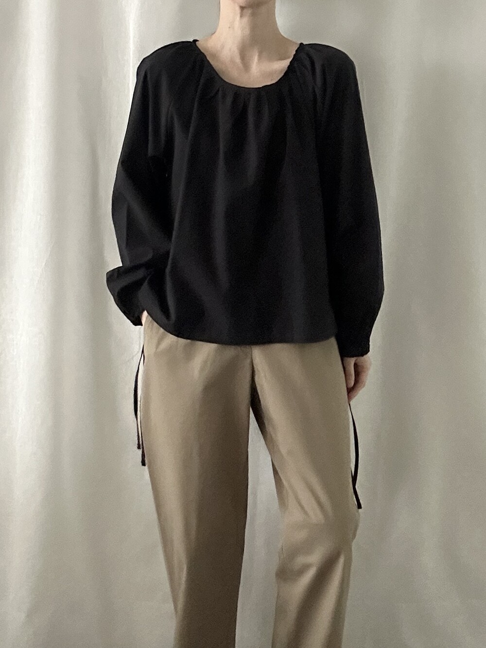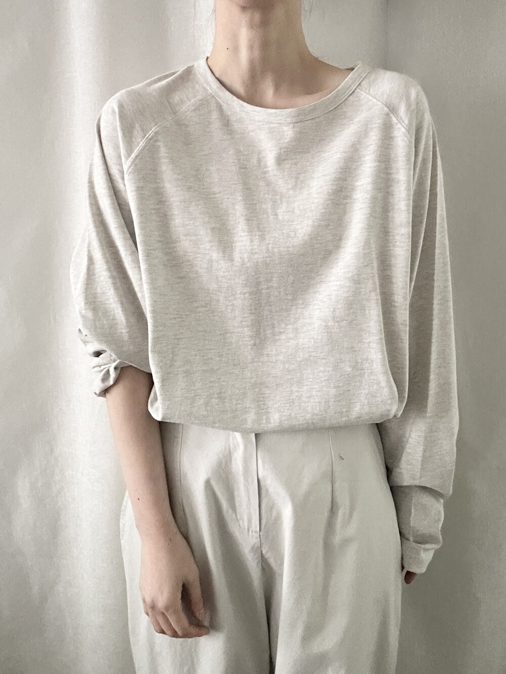 너무 얇지도 도톰하지도 않은 두께감에 빳빳하지 않은 적당히 유연한 소재로 주름마저도 내추럴해보여 마음에 들었던 제품입니다.