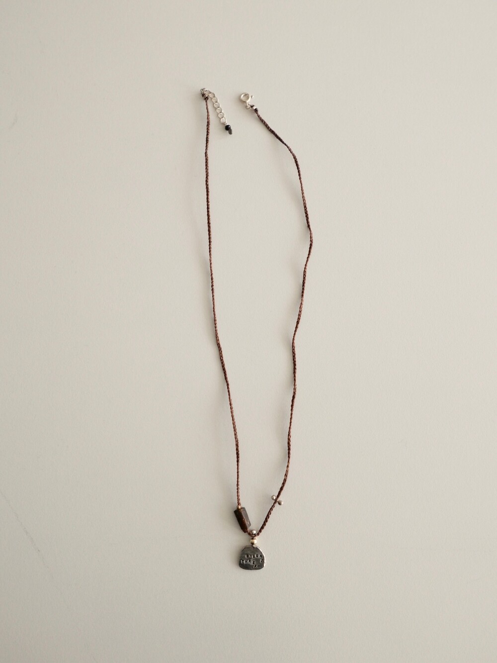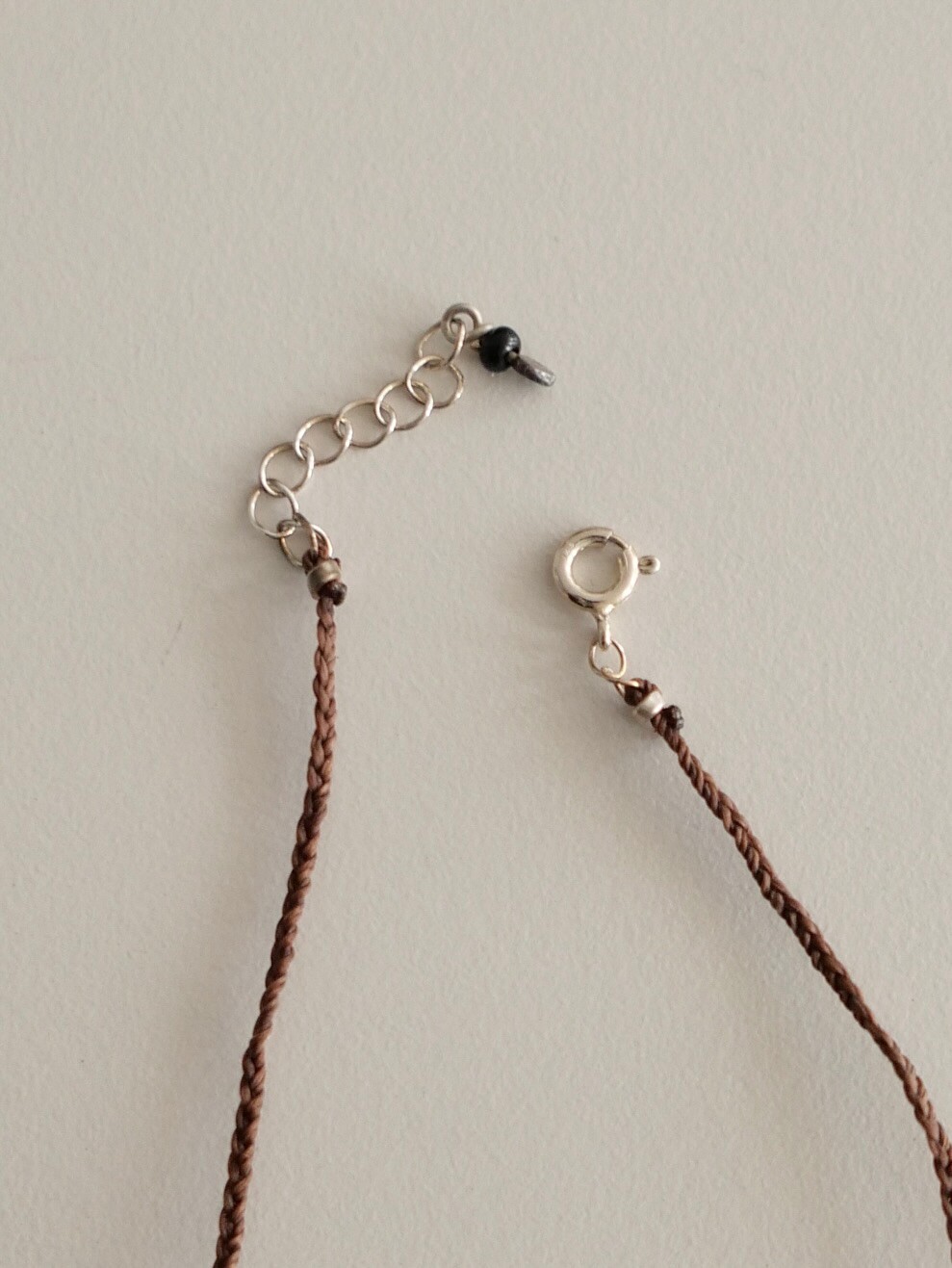 브라운 매듭 실과 브라운 색 글래스, 작은 가넷과 실버 조각들을 더해 섬세하고 아름답습니다.