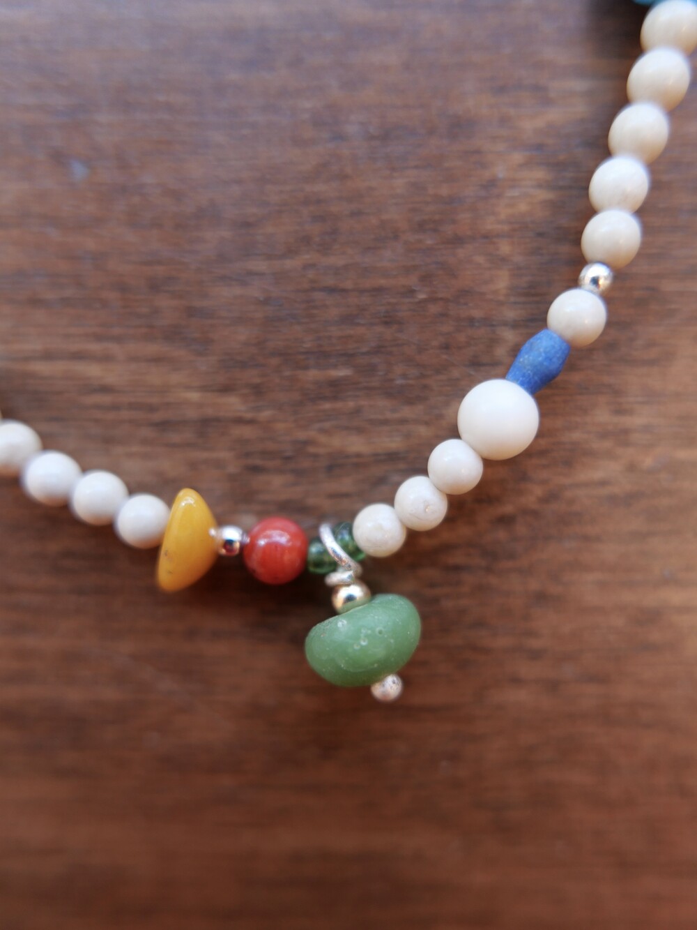 재료: 규화석, 은,글라스,애퍼타이트,라피스라줄리,호박,산호,우레탄줄