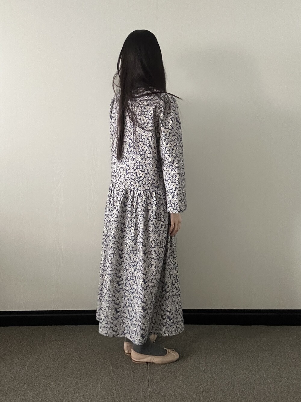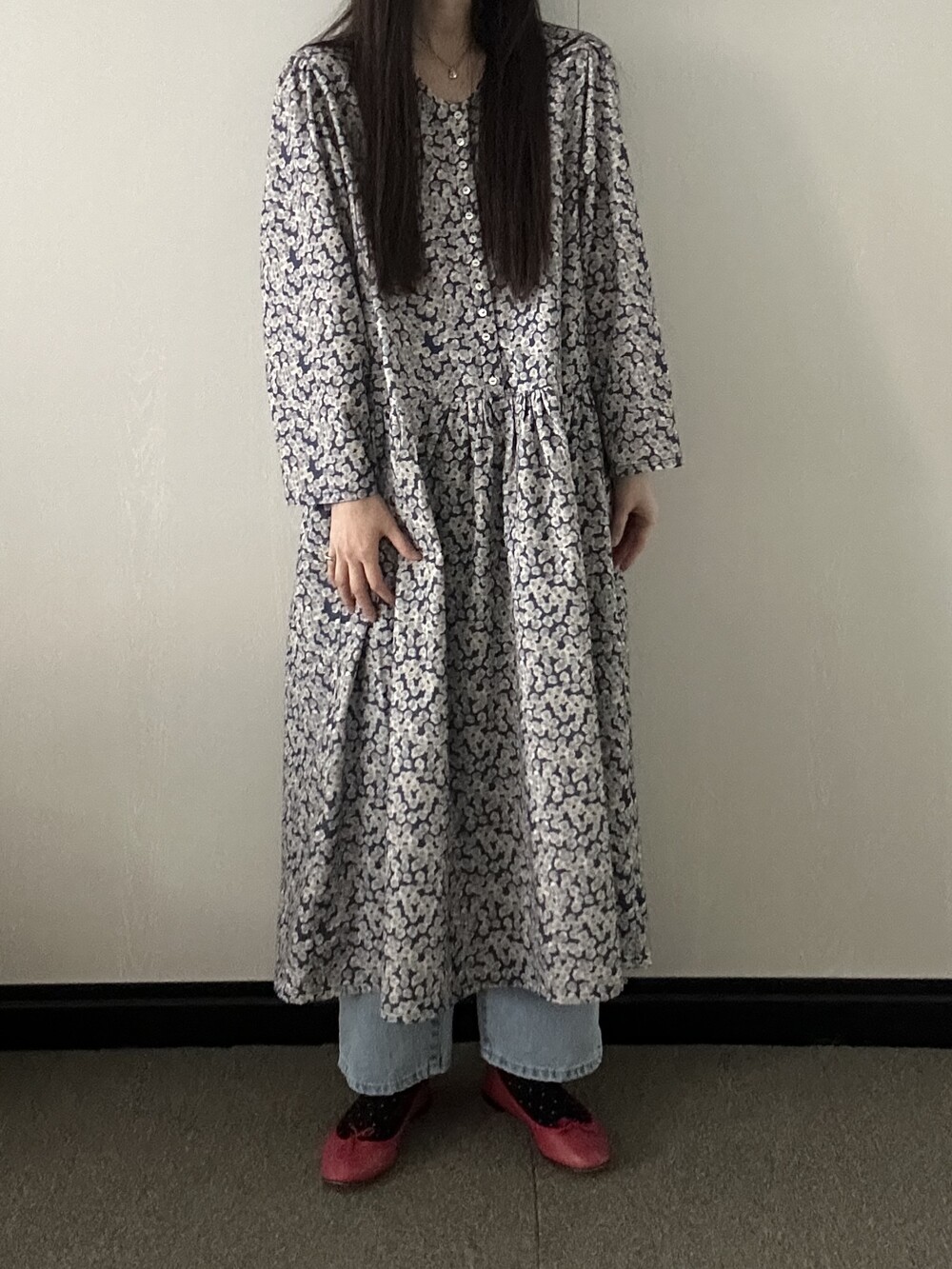 전체적으로 여유 있는 오버핏의 롱 드레스로 편안하면서도 존재감 있는 데일리 원피스입니다.