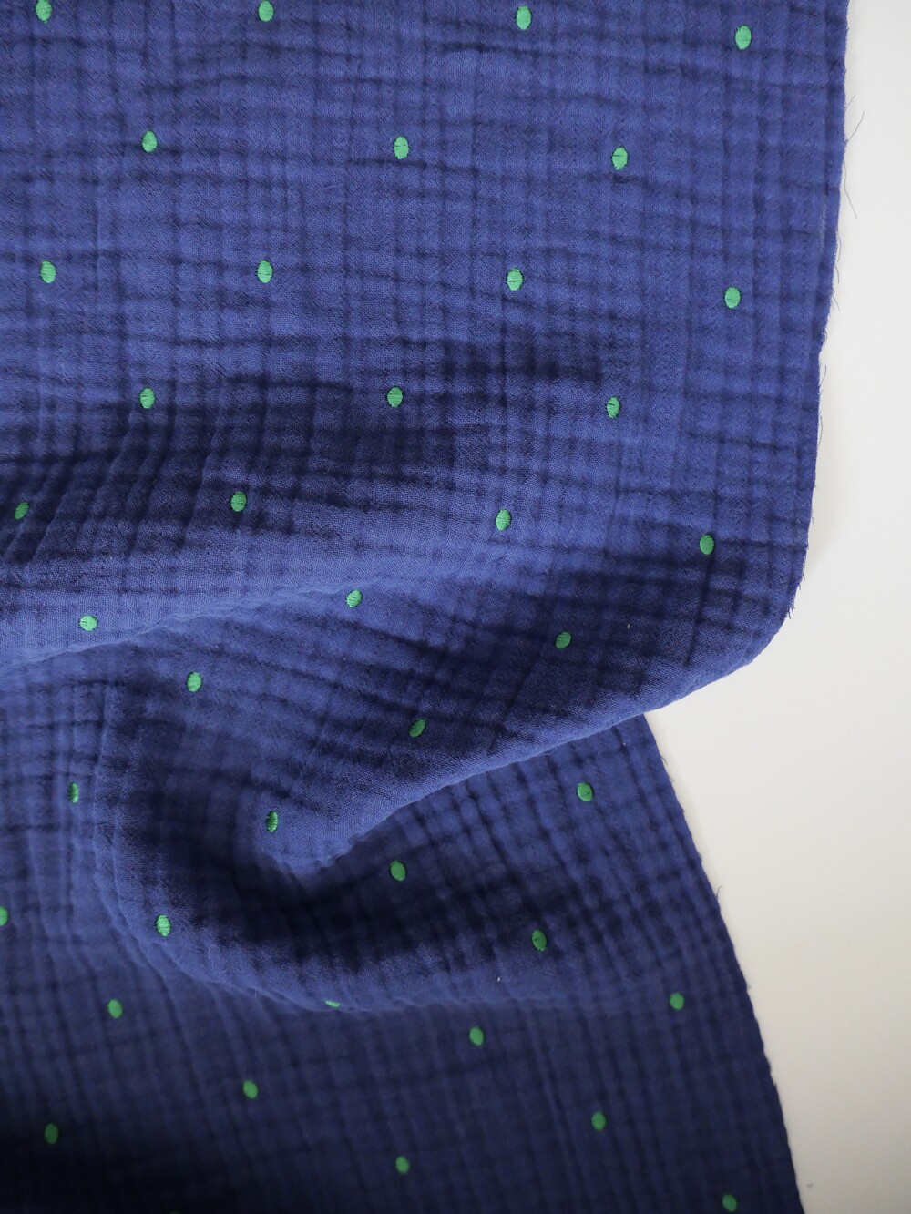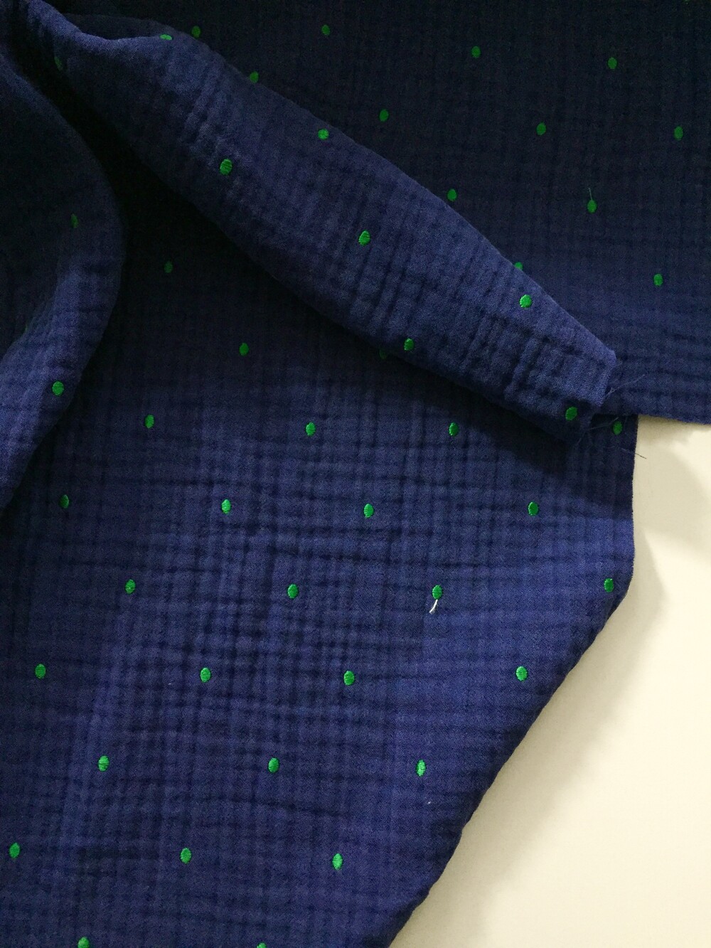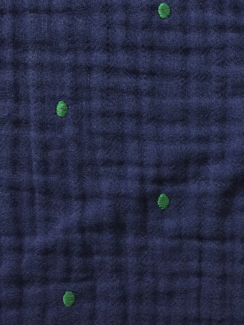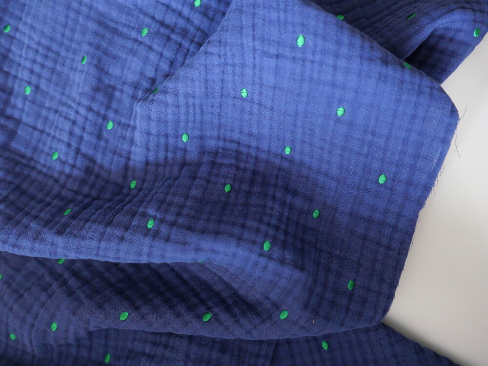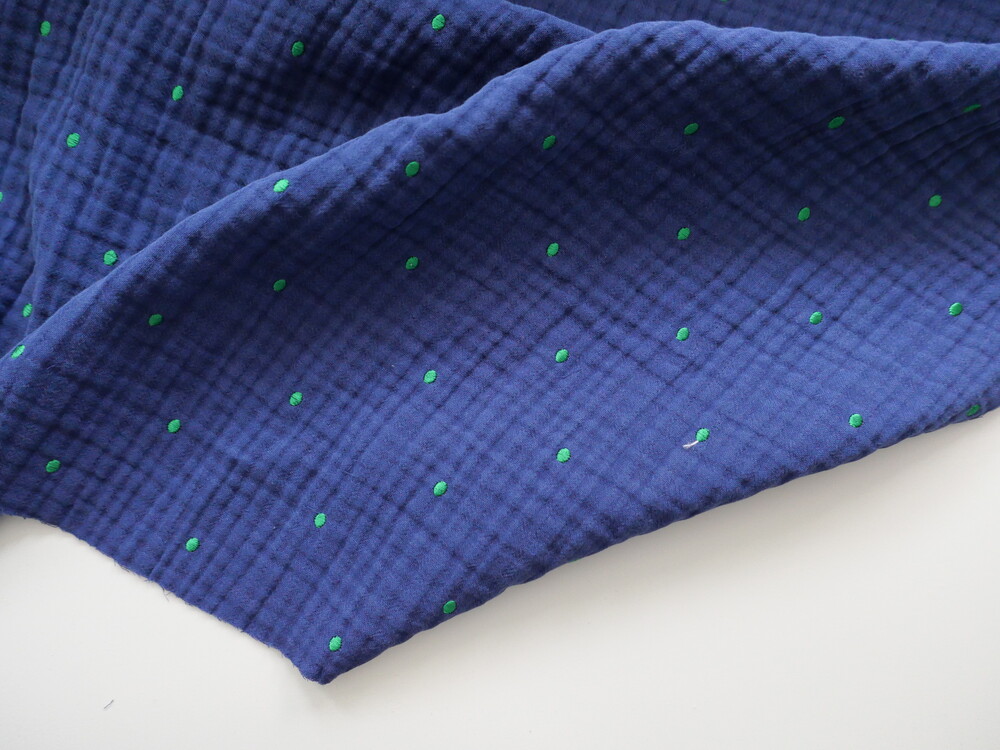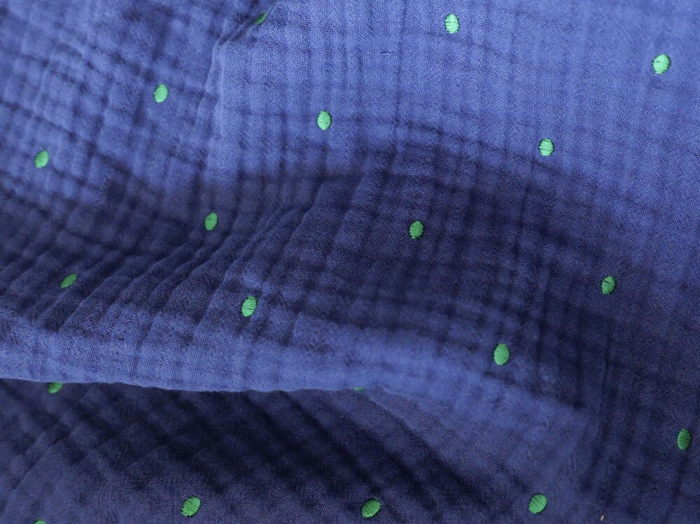삼중 요루 거즈에 도트가 자수로 들어가 있는 패브릭입니다.