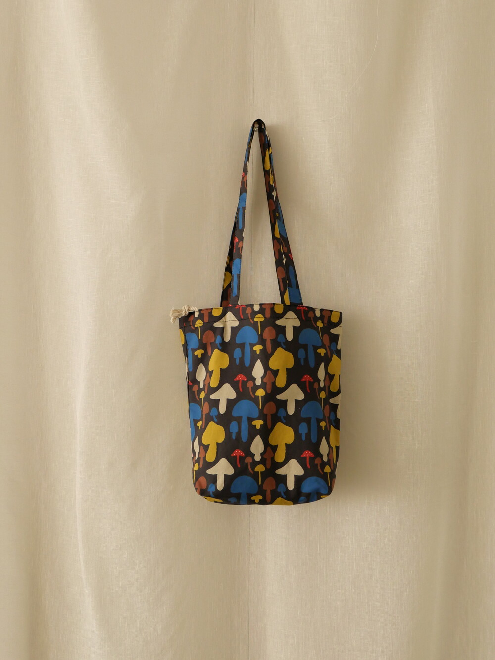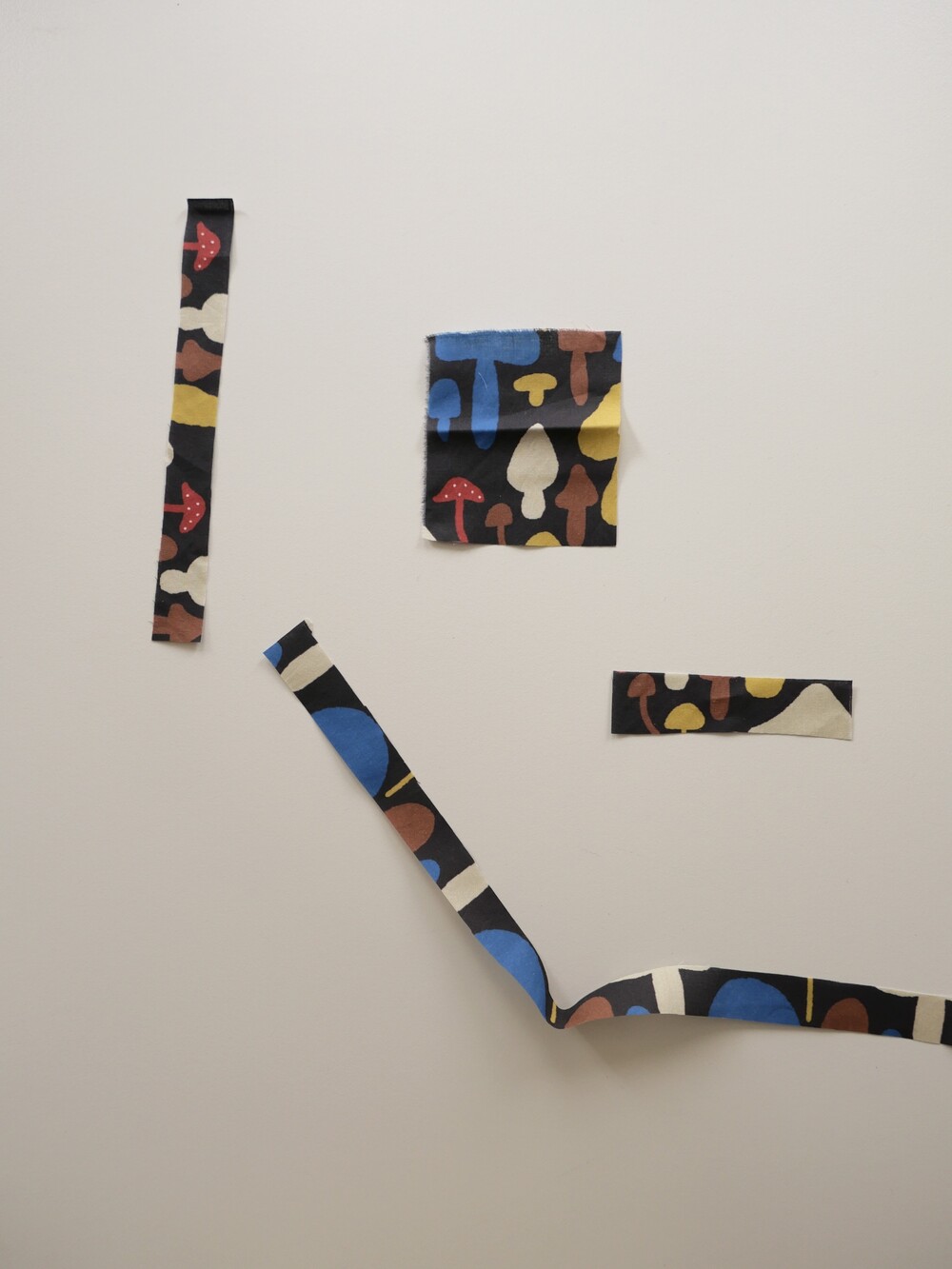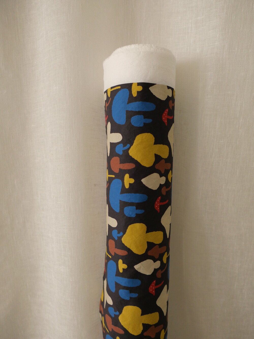 다양한 컬러와 모양의 버섯이 그려져 있는 패브릭입니다.