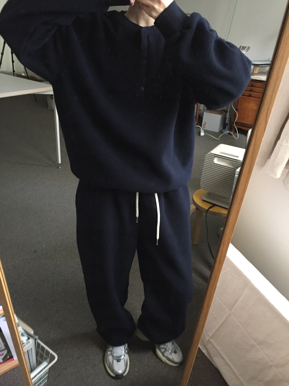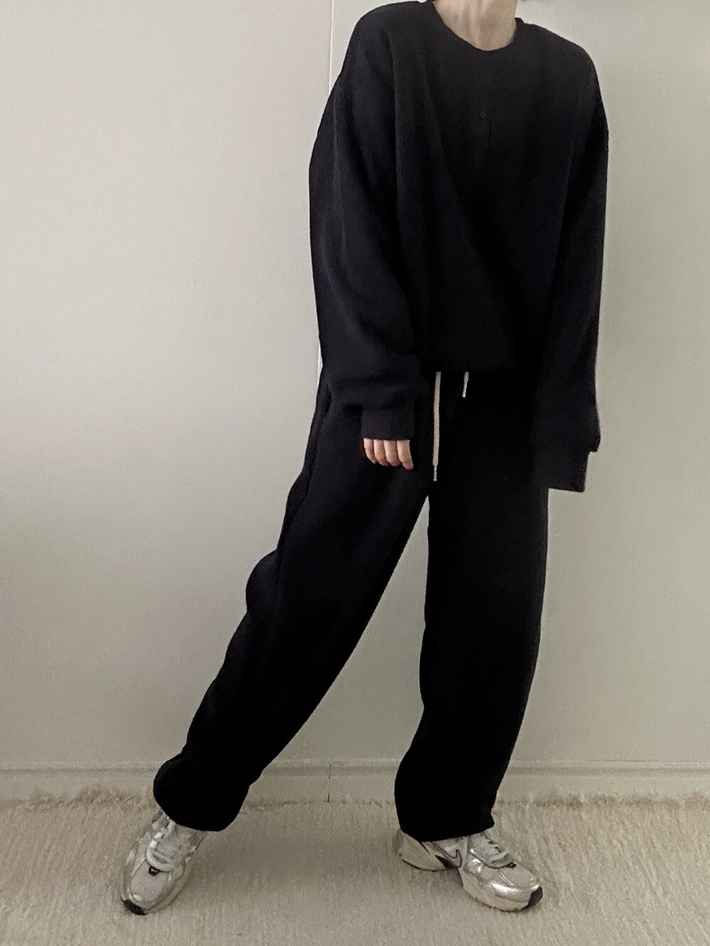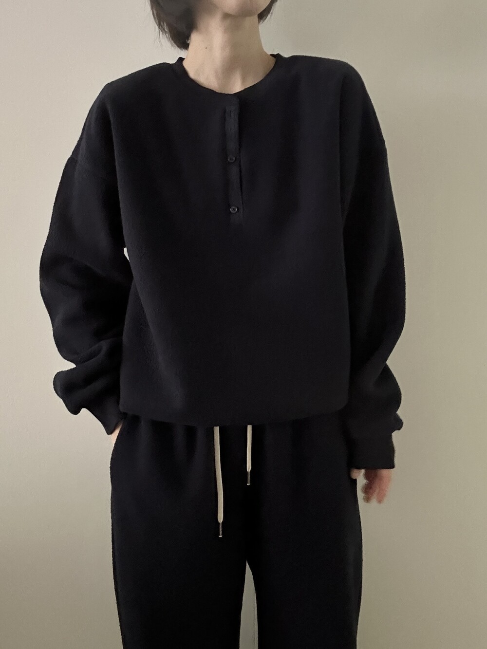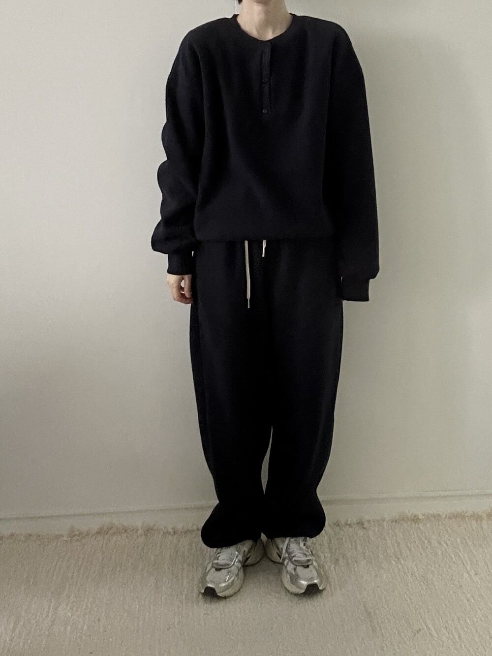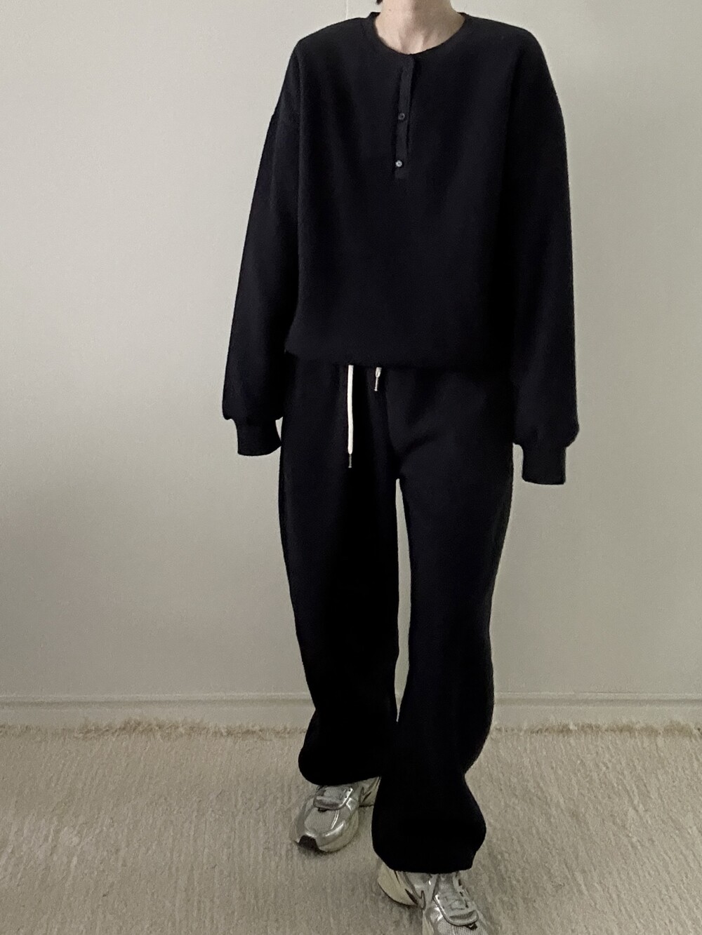 같은 소재의 조거 팬츠와 세트로 착용하면 더욱 완성도 있는 겨울 룩이 되며, 단독으로도 깔끔하고 데일리하게 즐기기 좋은 기본 아이템이에요.
