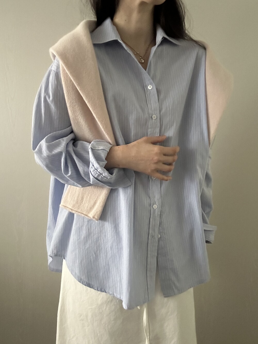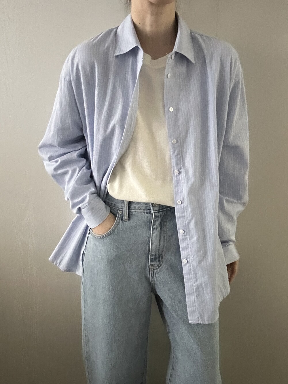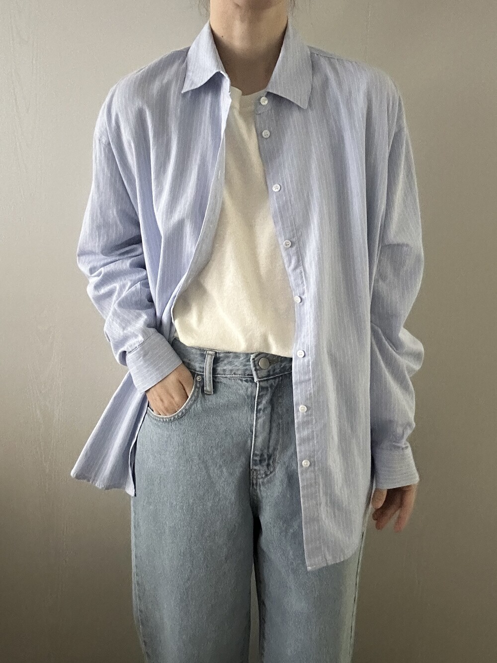 핏 , 컬러감 , 소재 모두 만족스러웠던 스트라이프 셔츠 소개합니다.