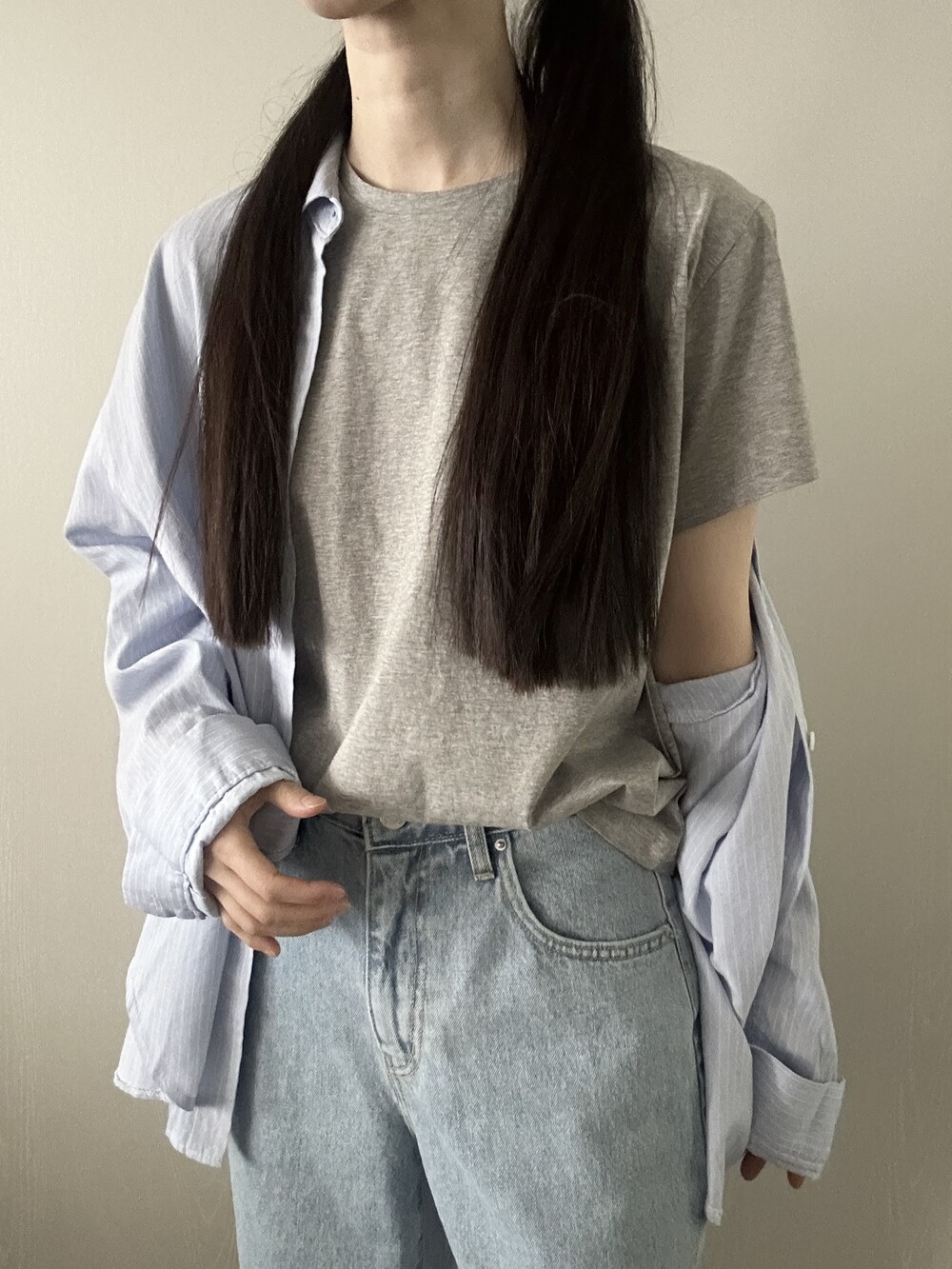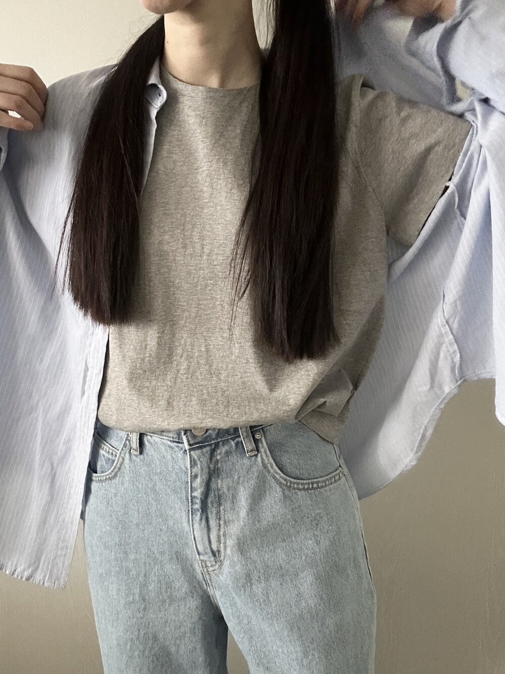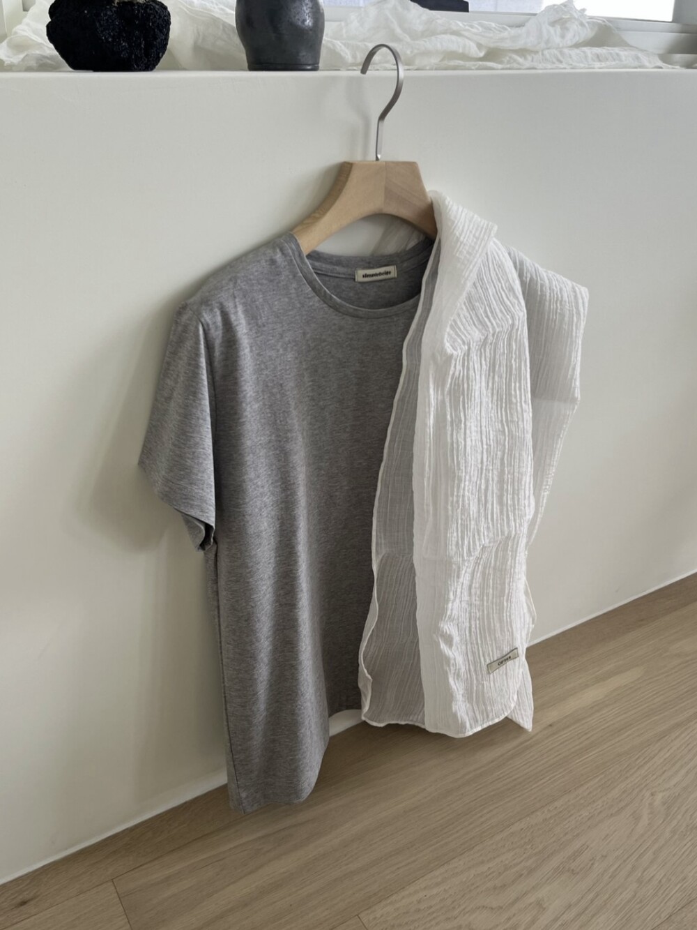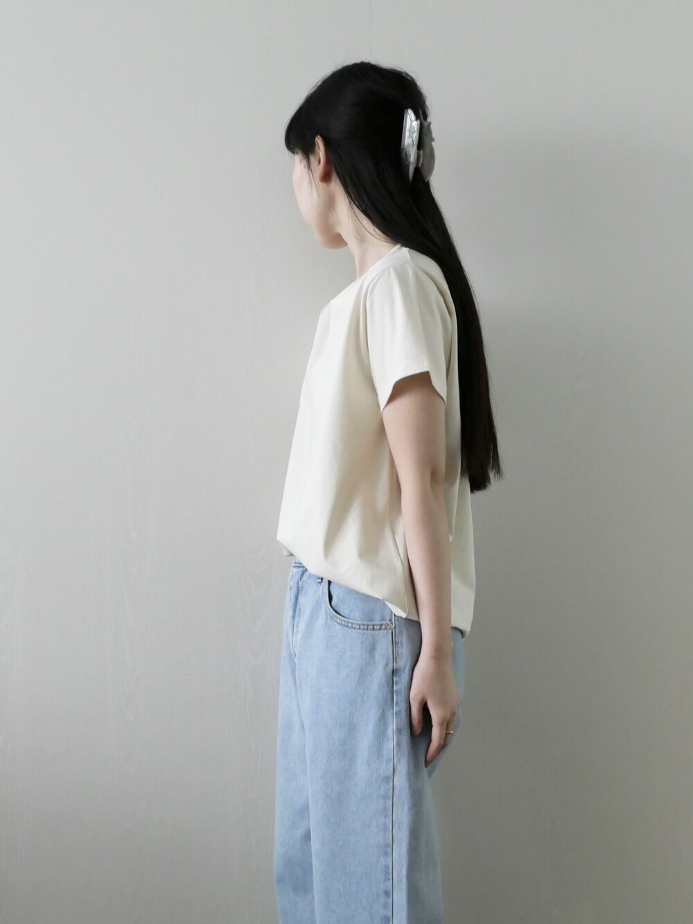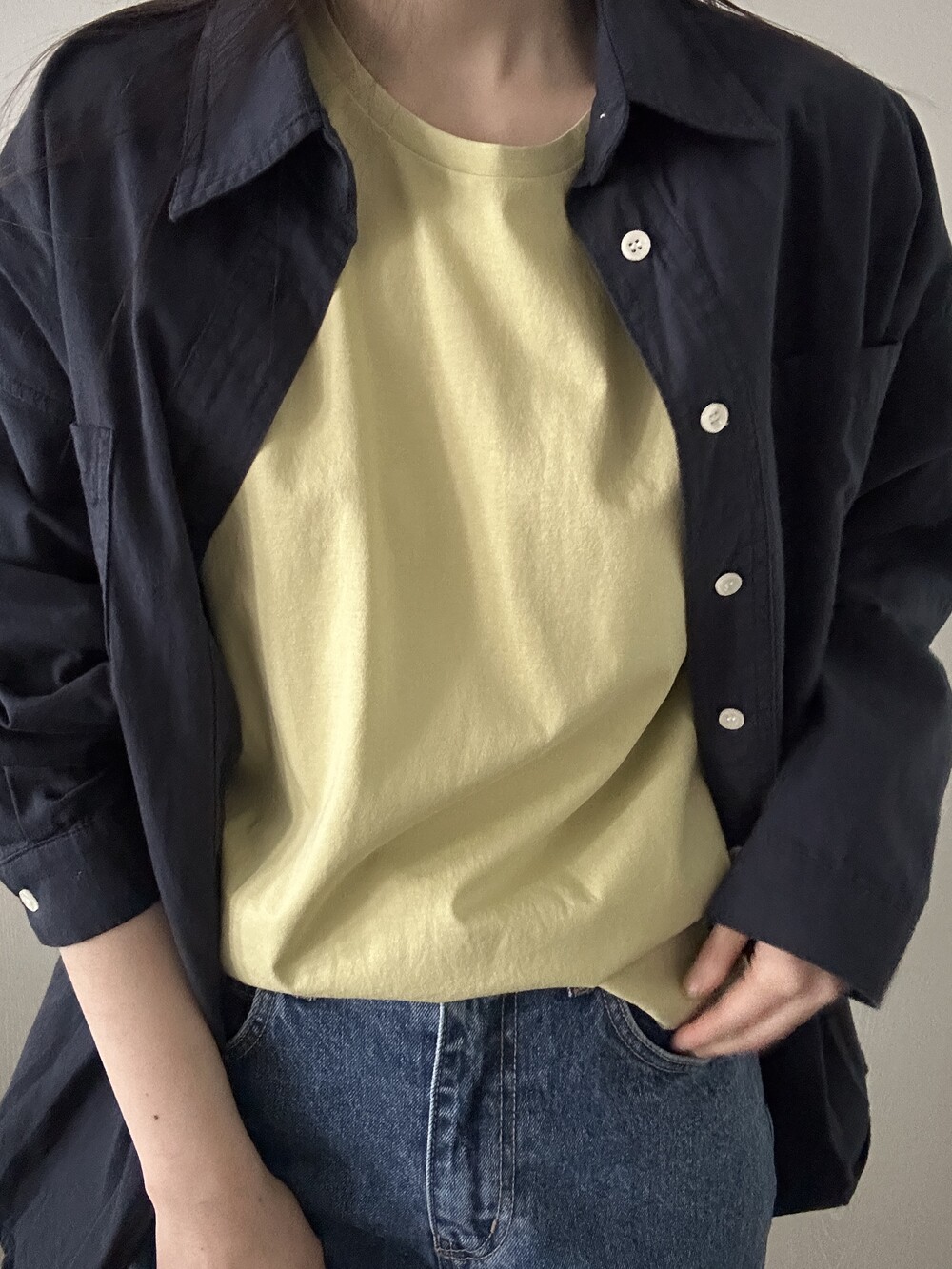 봄엔 이너 티셔츠로 활용하고 여름엔 단독으로 착용하기 좋습니다. 최대한 넥 라인은 얇고 깔끔하게 디자인하고 목 늘어짐을 방지할 수 있도록 봉제되었습니다. 너무 크지 않은 레귤러 핏으로 간절기 가디건 안에 입는 이너 티셔츠로도 활용하기 정말 좋습니다.