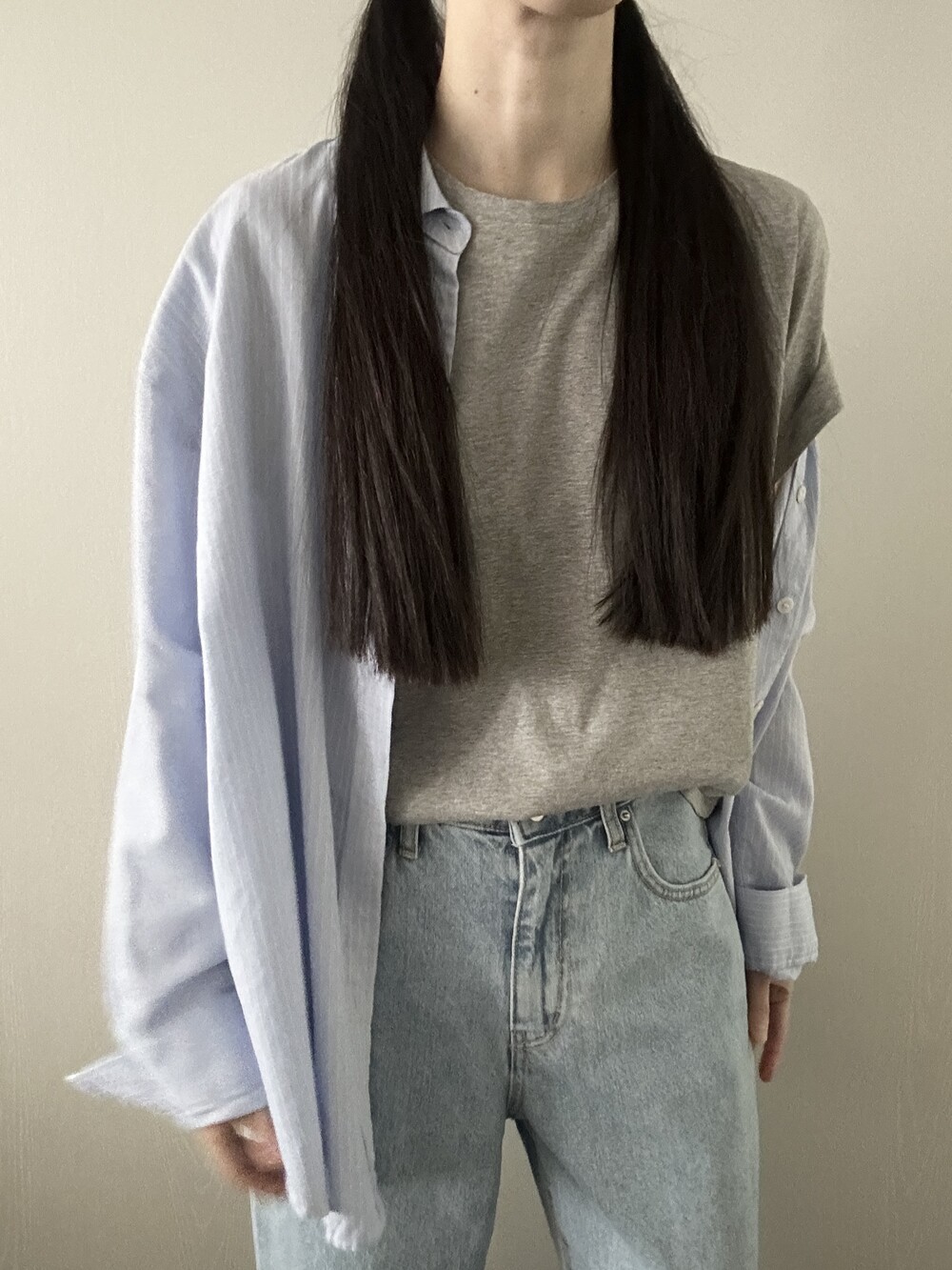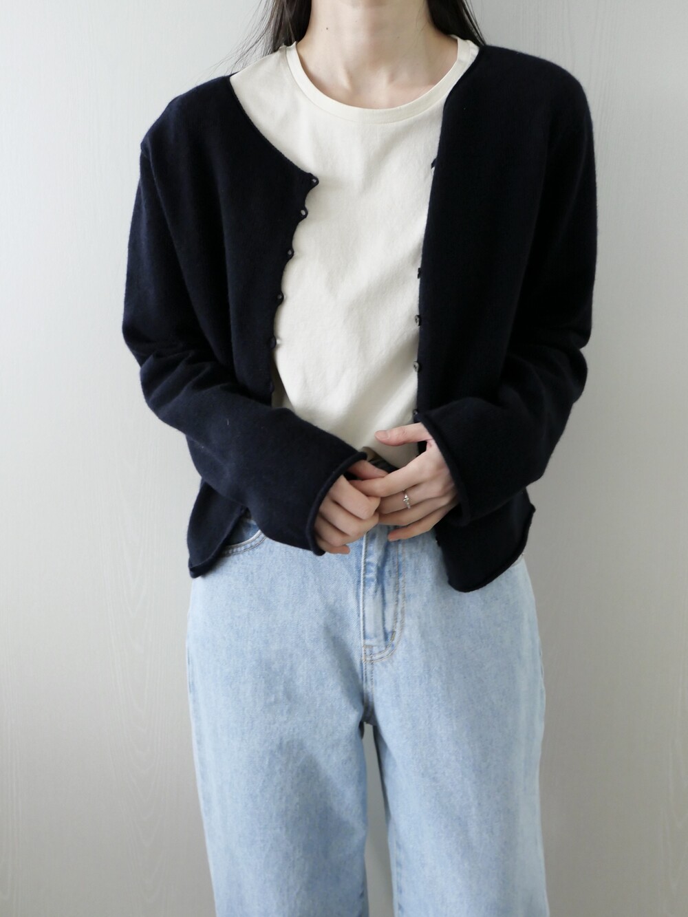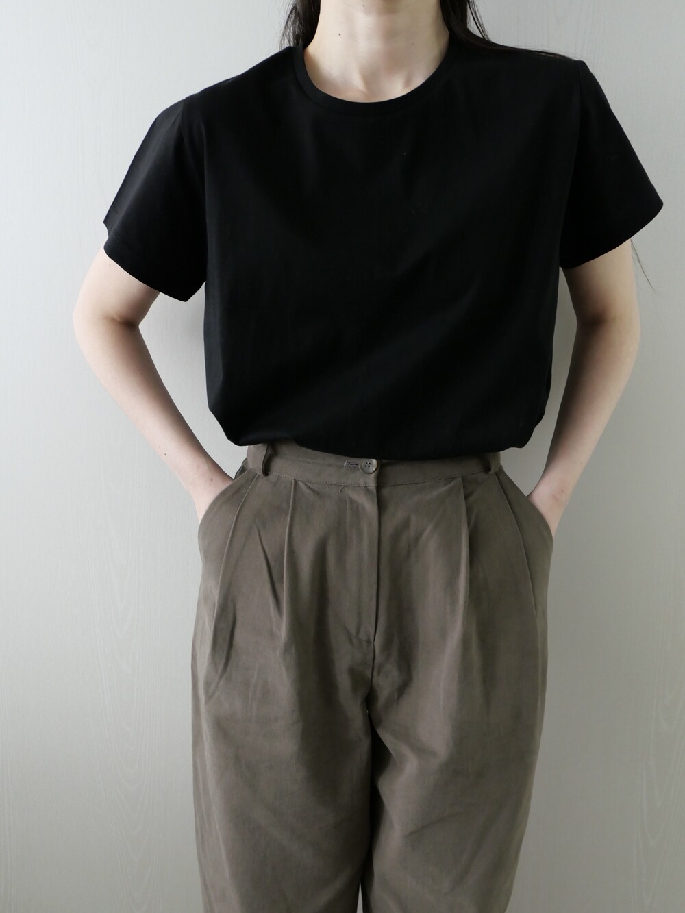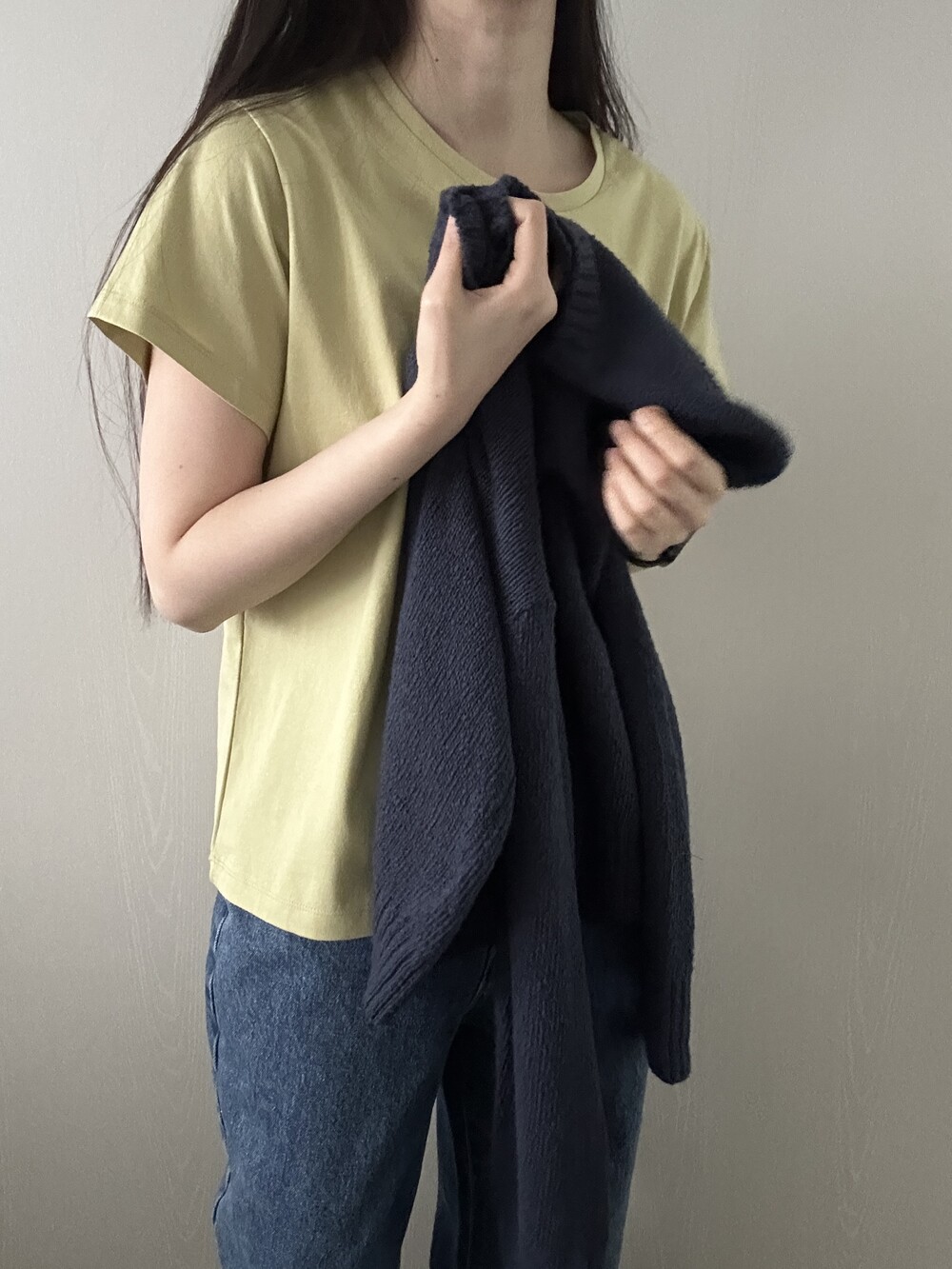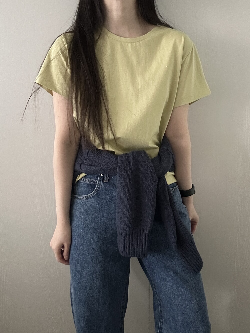 봄엔 이너 티셔츠로 활용하고 여름엔 단독으로 착용하기 좋습니다. 최대한 넥 라인은 얇고 깔끔하게 디자인하고 목 늘어짐을 방지할 수 있도록 봉제되었습니다. 너무 크지 않은 레귤러 핏으로 간절기 가디건 안에 입는 이너 티셔츠로도 활용하기 정말 좋습니다.