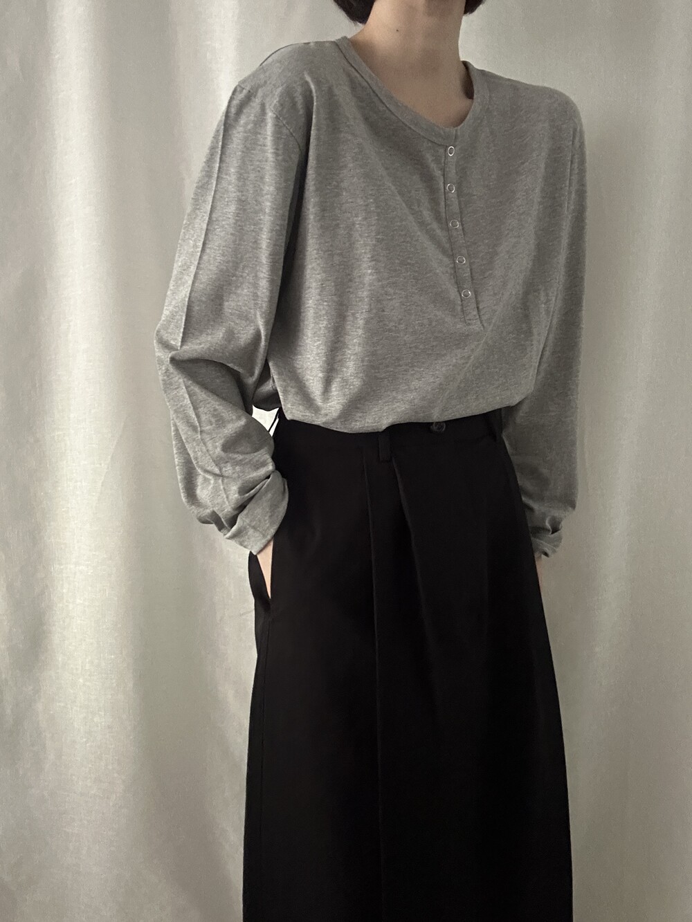 단작에 단추 디테일이 심플하고 매니시한 무드를 느끼게 해줍니다.