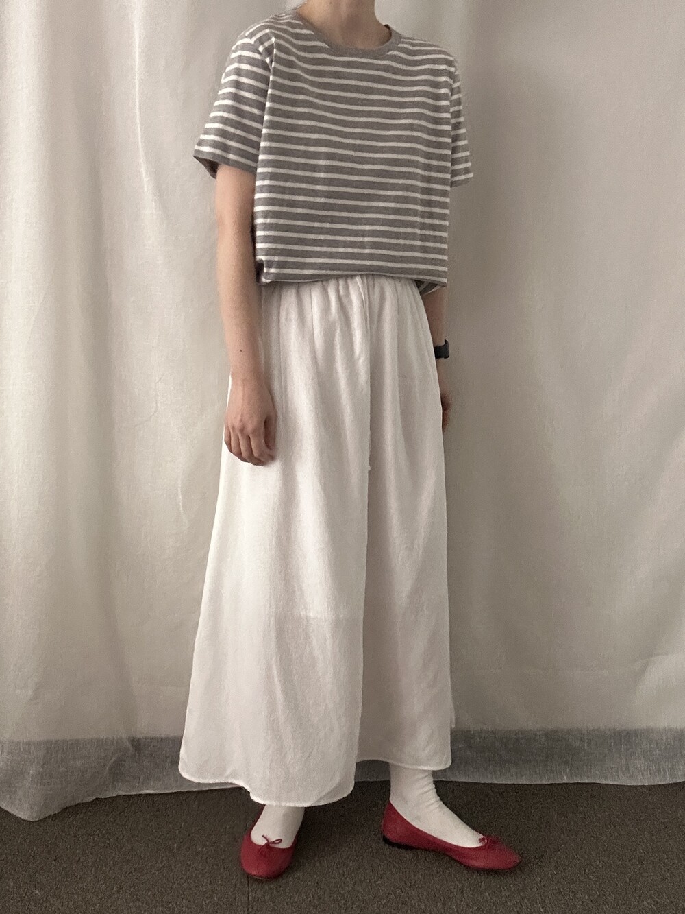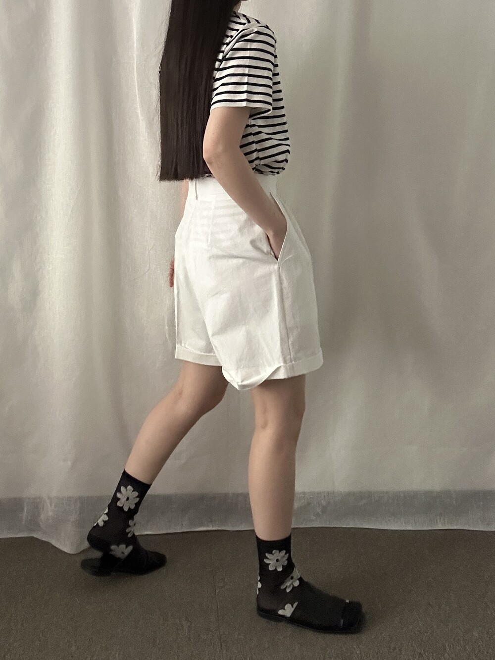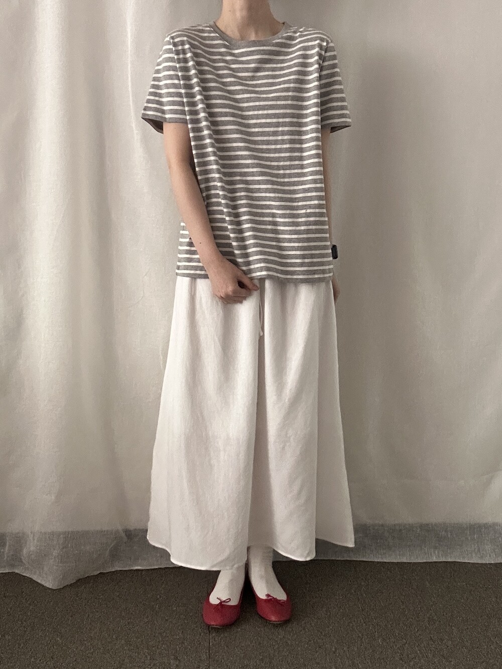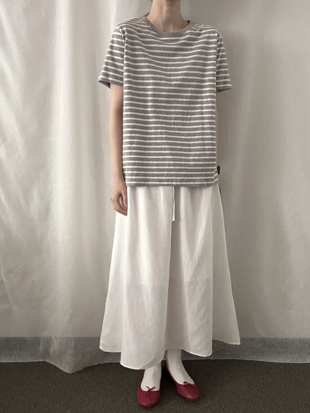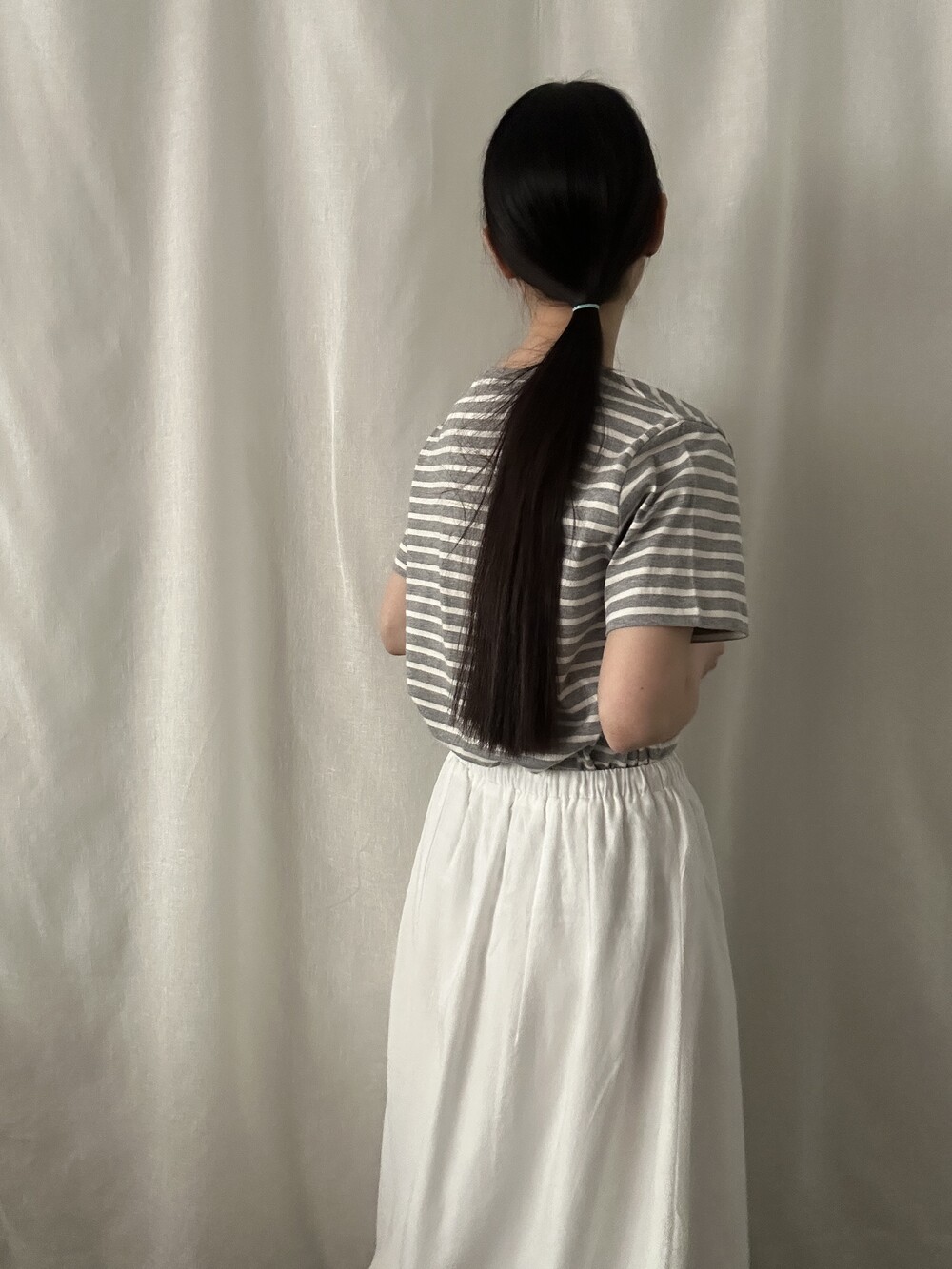 소매길이 , 총장 모두 짧지 않아 부담 없이 입기 좋으며 시간이 지나도 촌스럽지 않은 스트라이프 패턴으로 하나쯤 있으면 여름 내내 든든합니다.