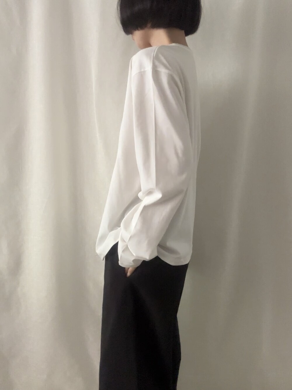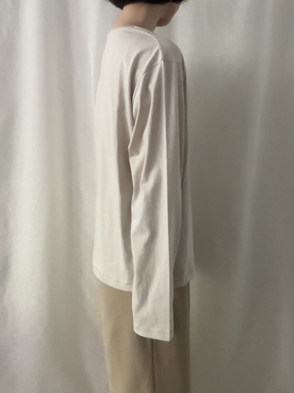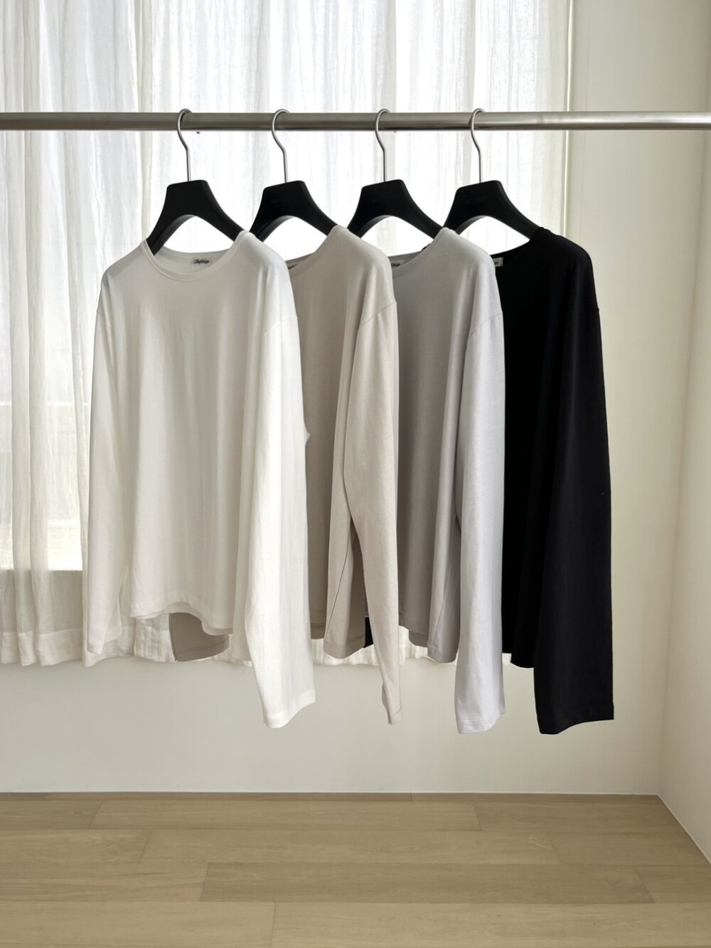 적당한 오버핏에 군더더기 없이 깔끔하고 부드럽고 가벼운 코튼 100 소재로 쉽게 늘어지거나 한철 입고 망가지는 티셔츠가 아닙니다. 넥 깊이감이나 품, 길이감 모두 유행 없이 매년 꺼내 입기 좋은 기본 베이직한 긴팔 티셔츠로 단독으로 입어도 후줄근한 느낌 없으며 이너로 활용하기도 좋습니다.