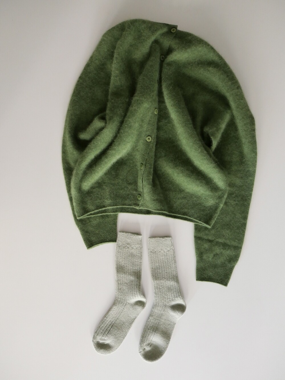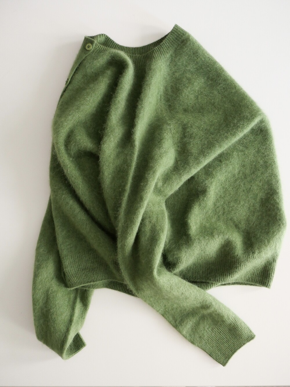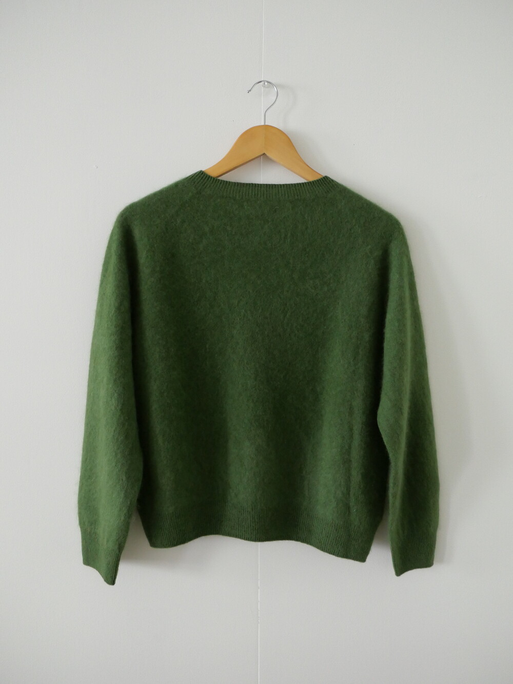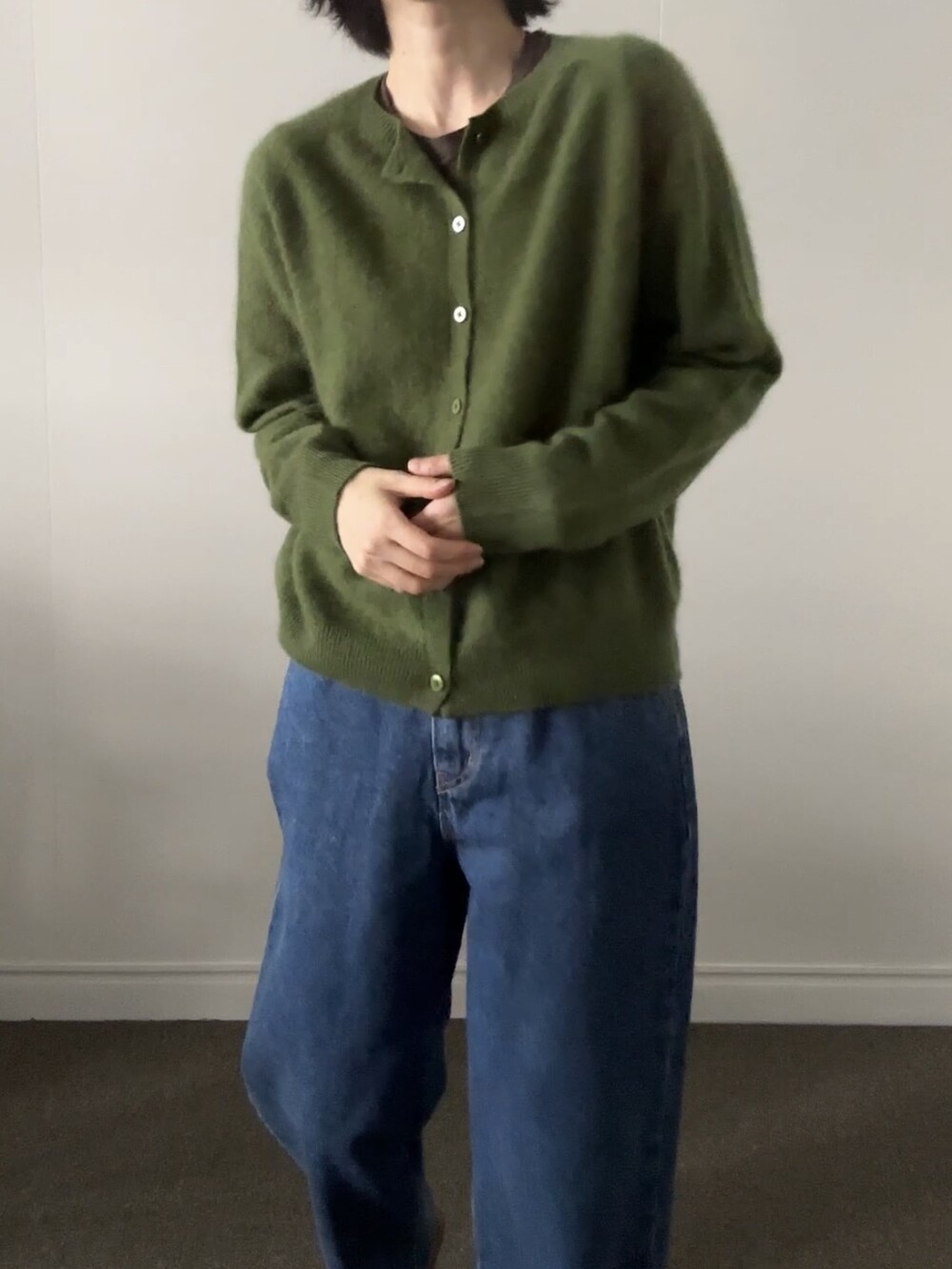포근한 헤어감이 돋보이는 울 가디건이에요.
