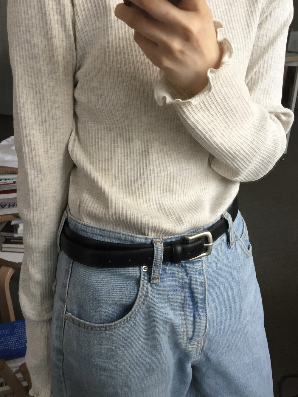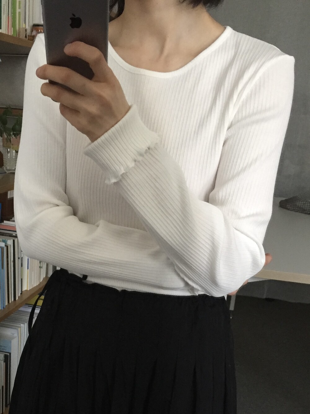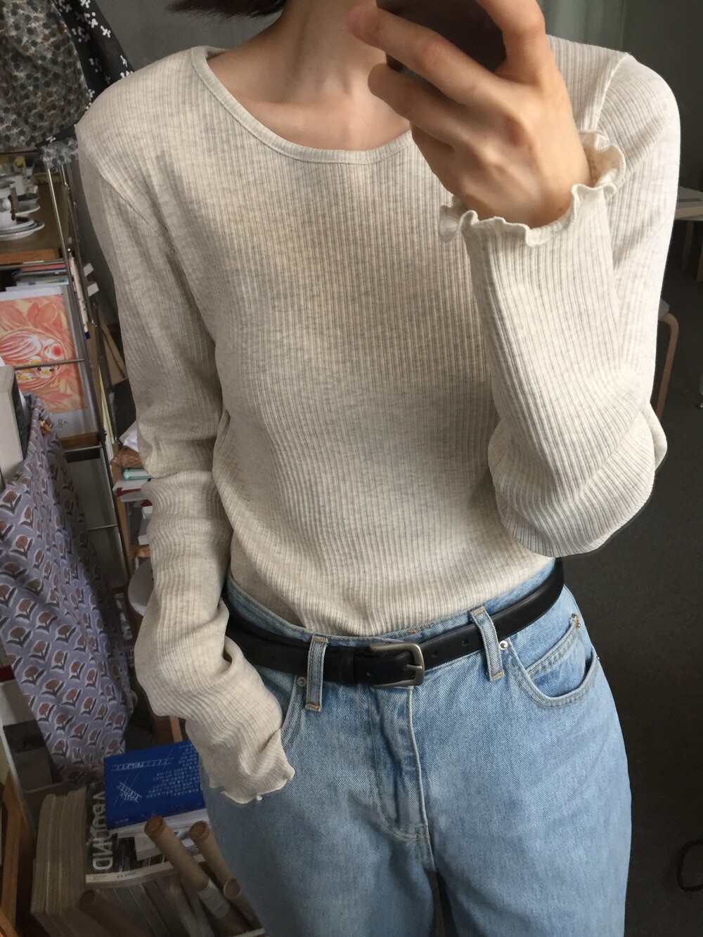 적당한 신축성이 있어 몸에 편안하게 맞으며, 단독으로 입기에도 부담 없는 두께감과 핏입니다.