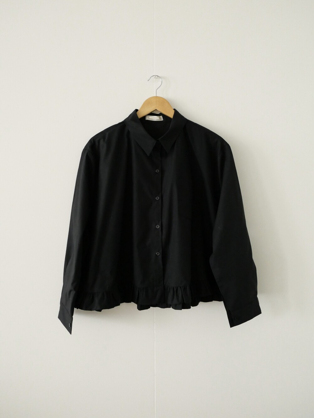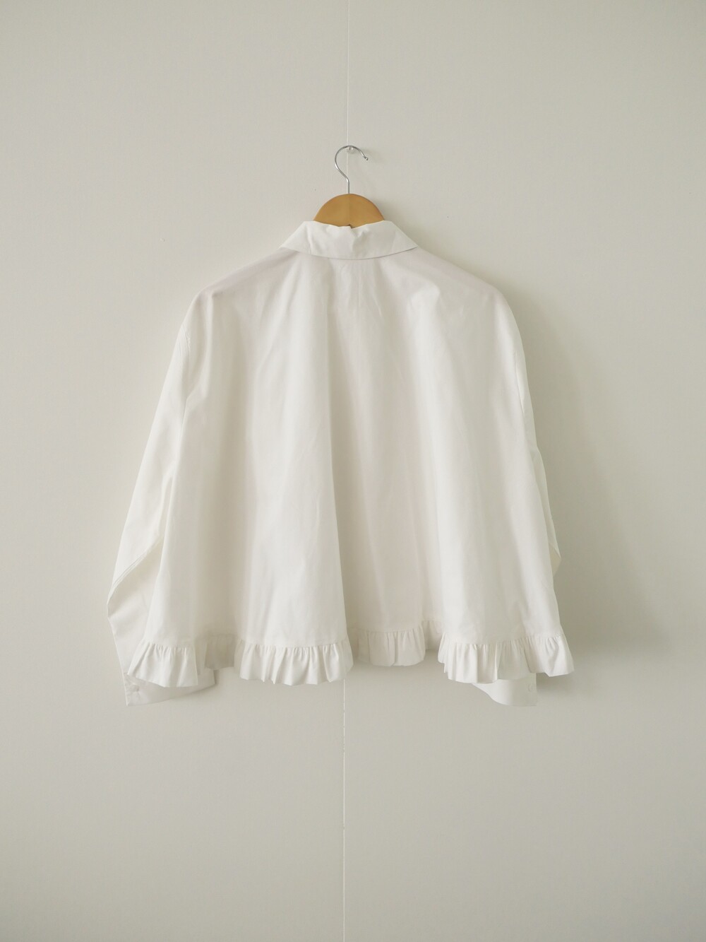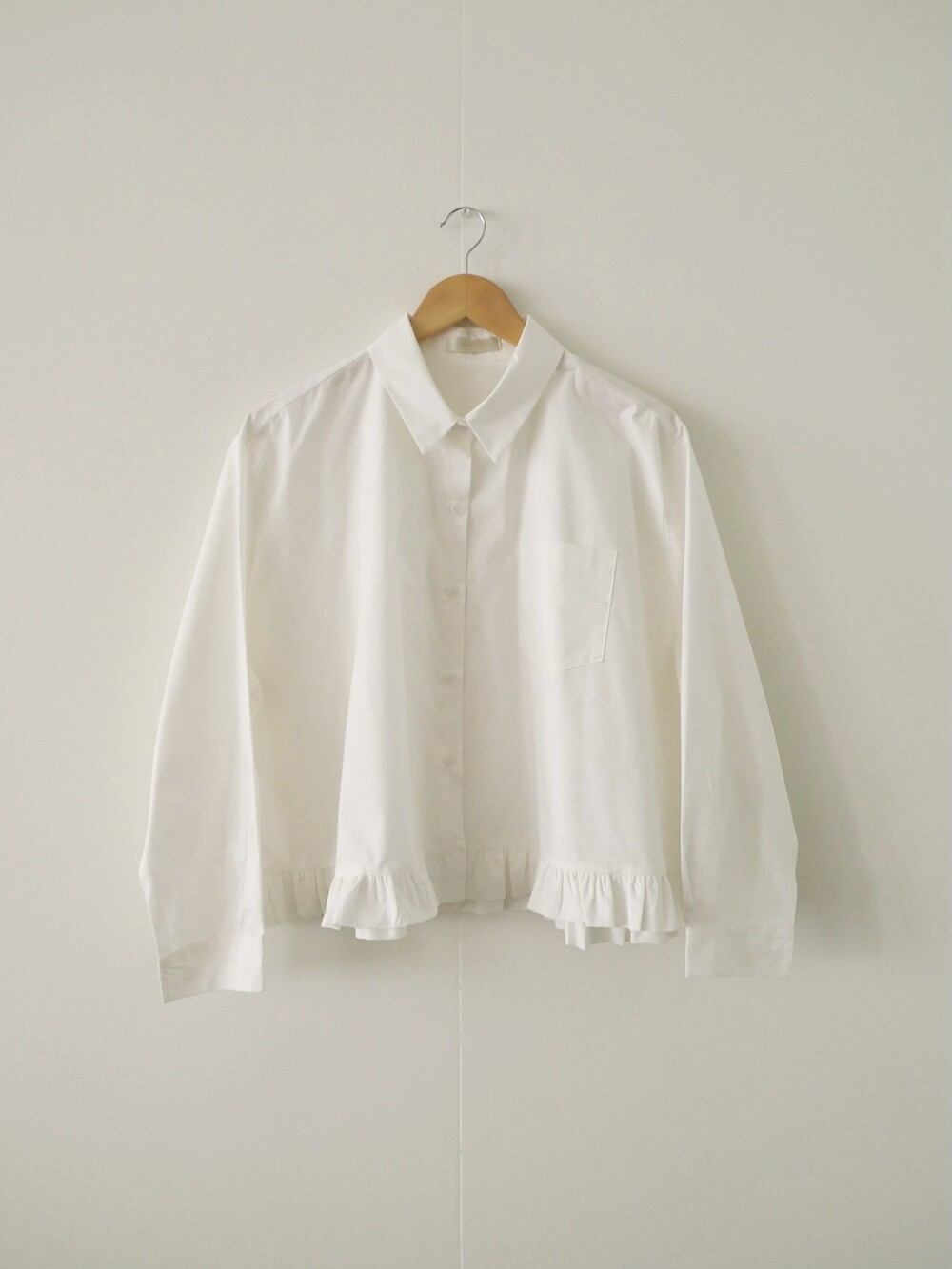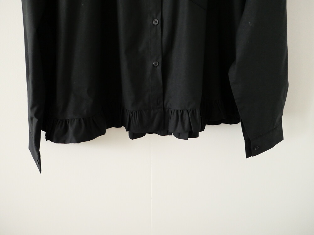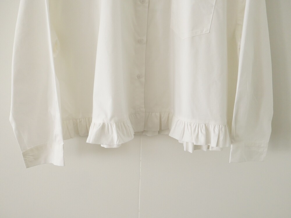 깔끔한 카라 디자인에 밑단 프릴 디테일을 더한 코튼 셔츠입니다.