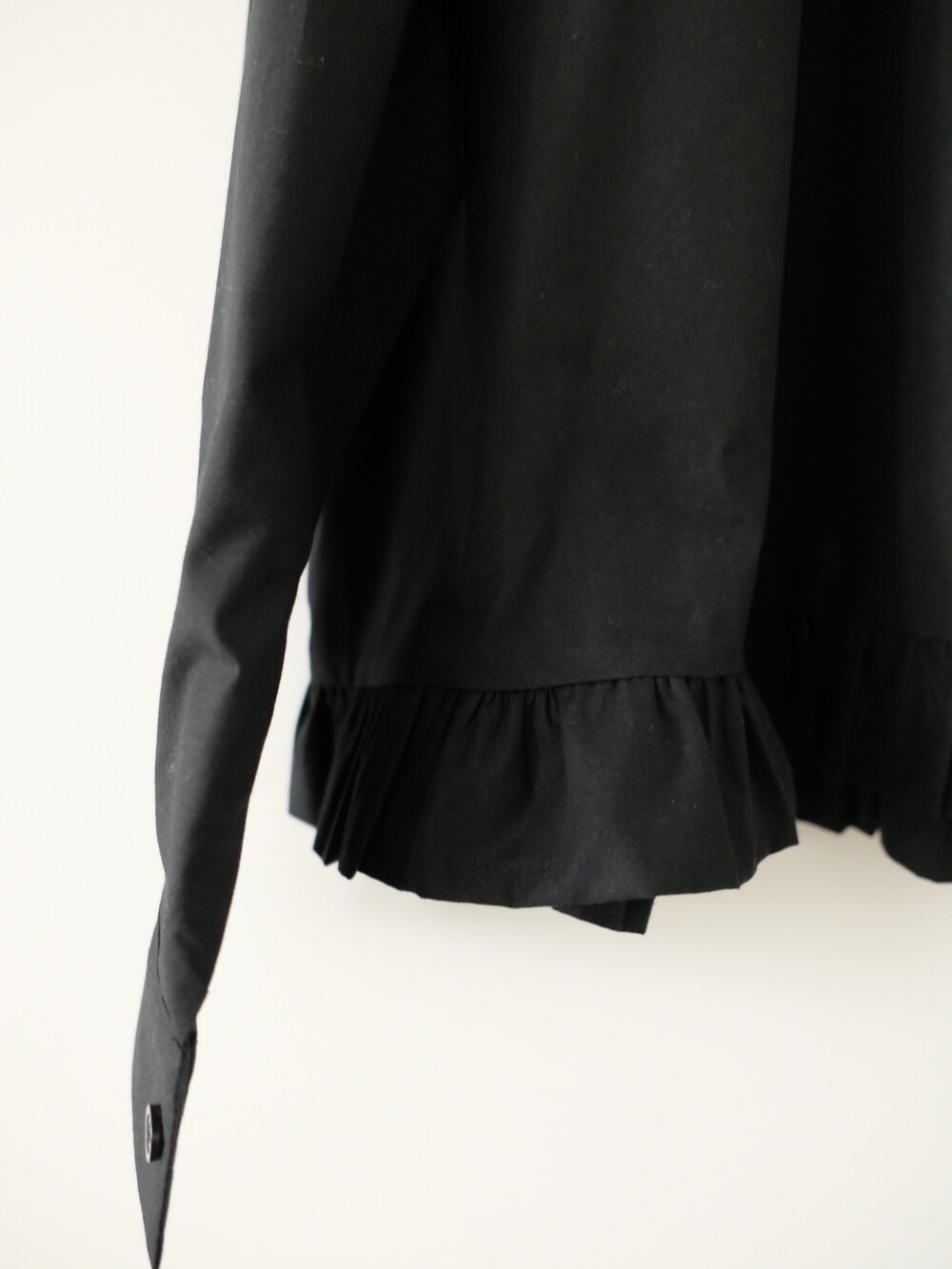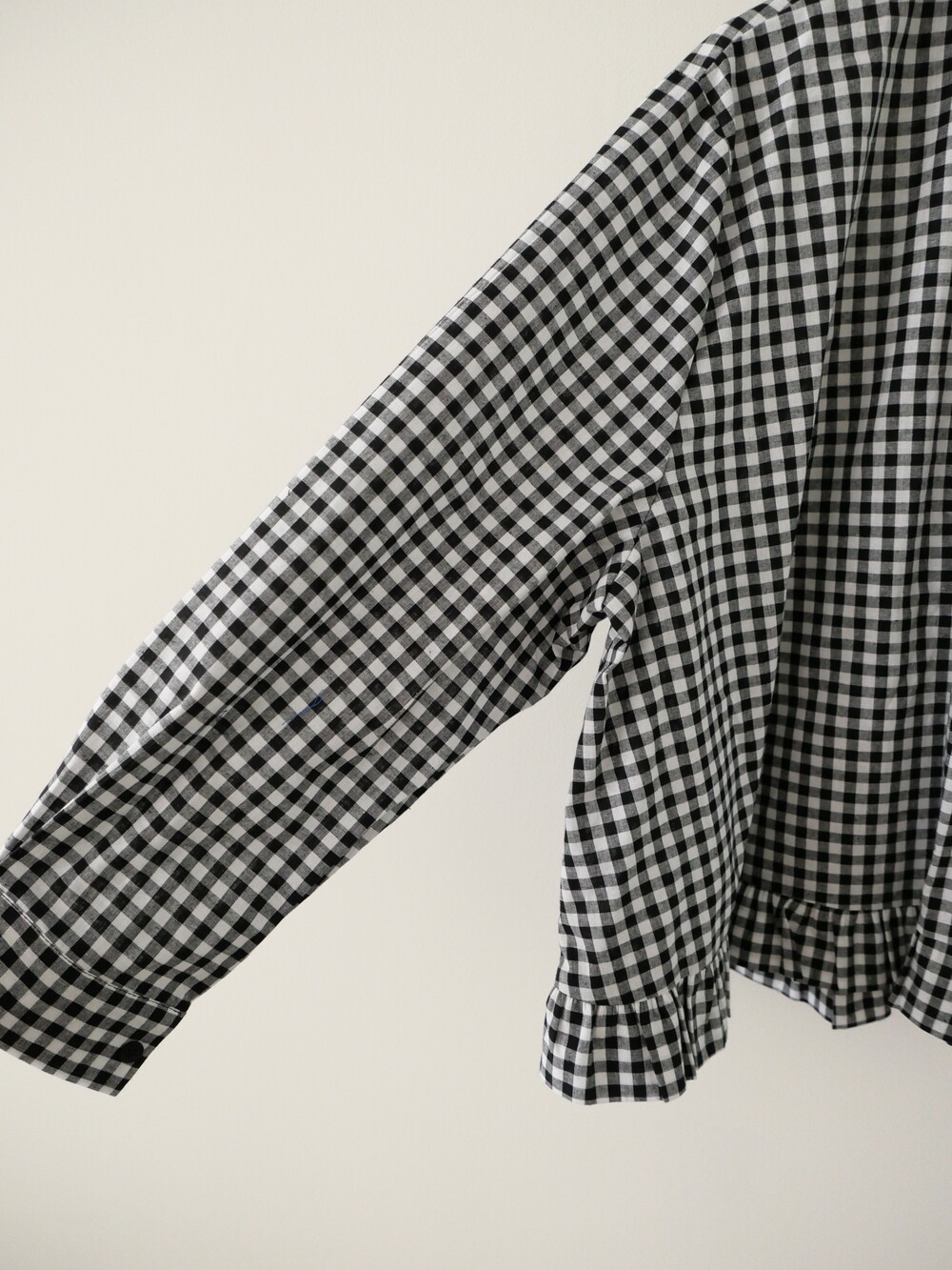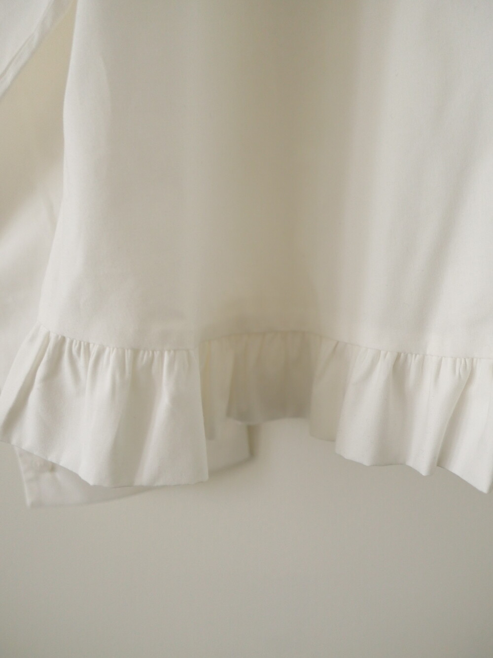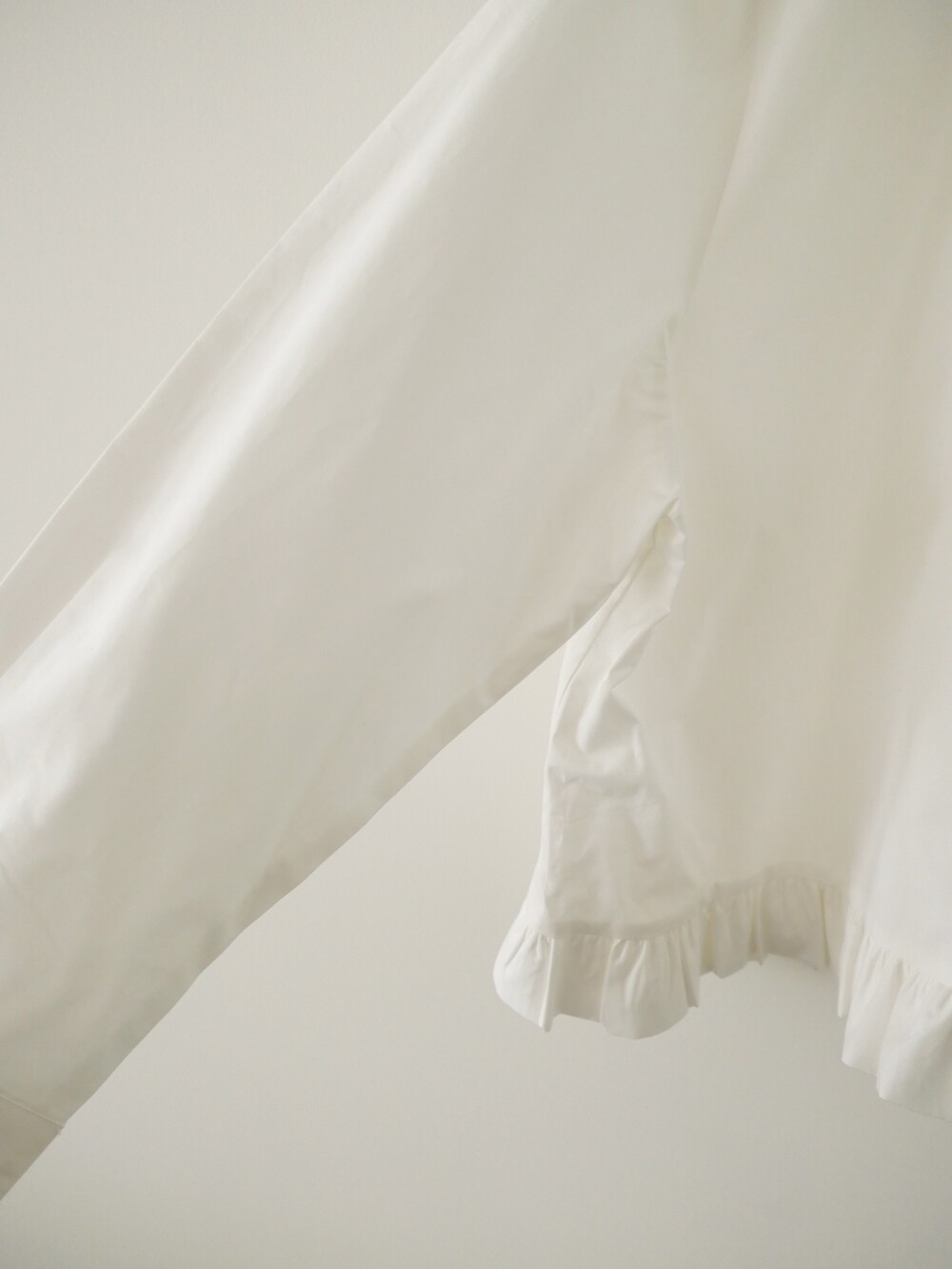 깔끔한 카라 디자인에 밑단 프릴 디테일을 더한 코튼 셔츠입니다.