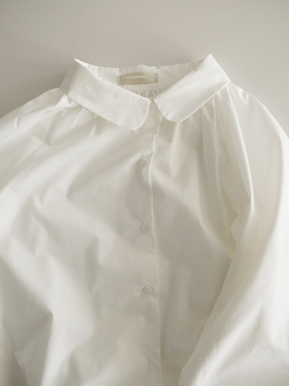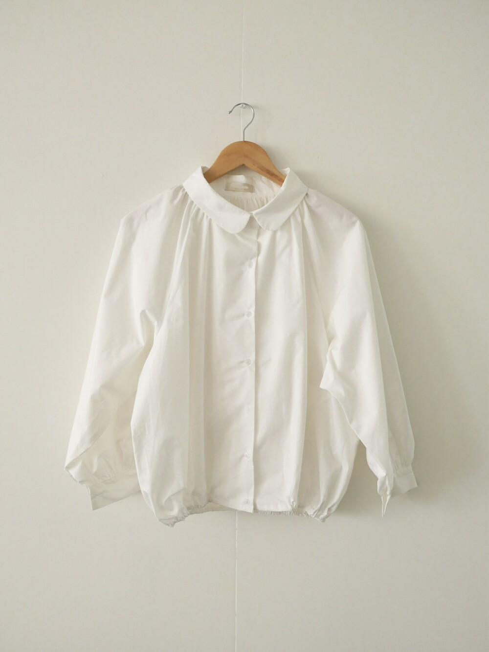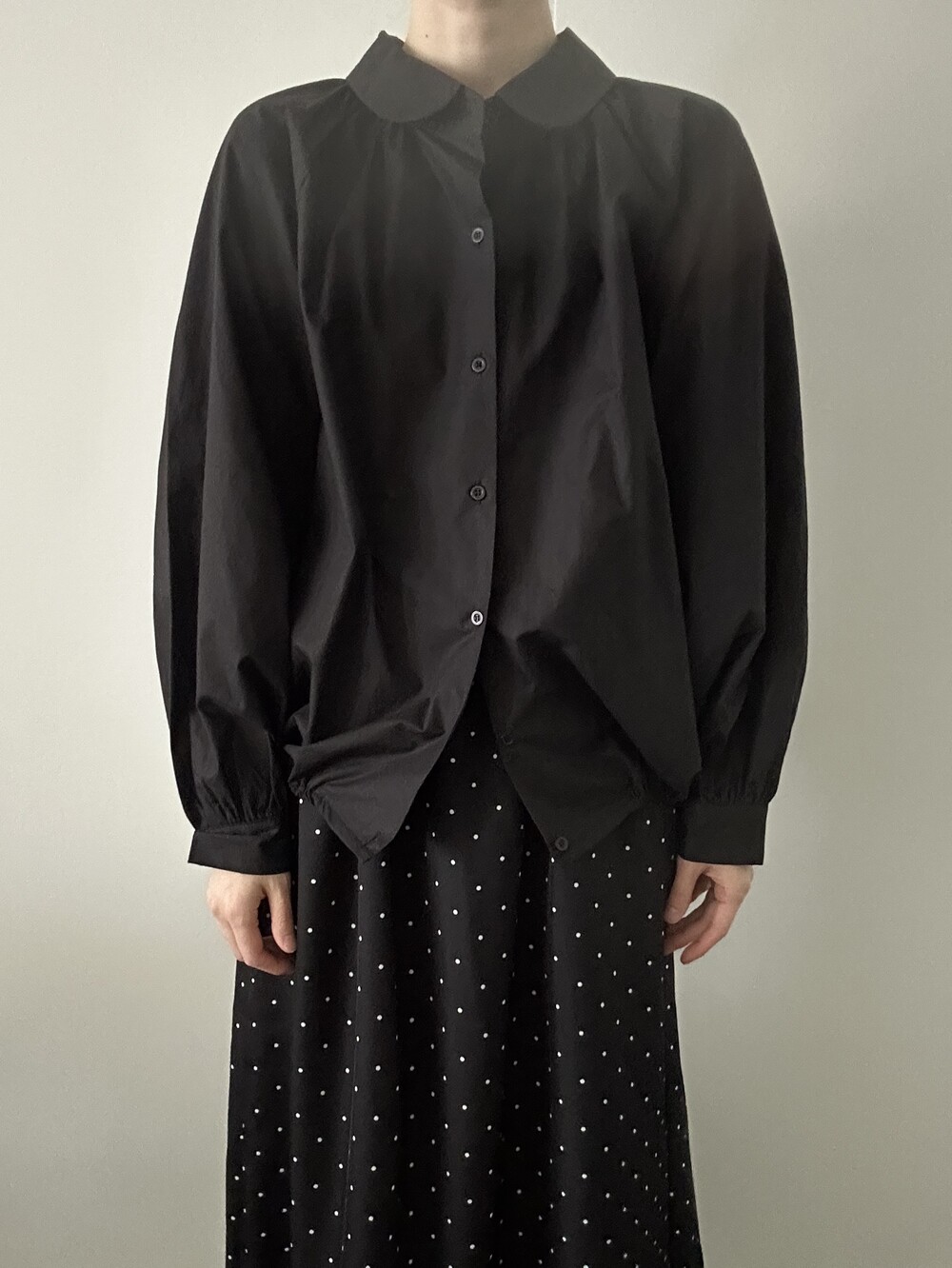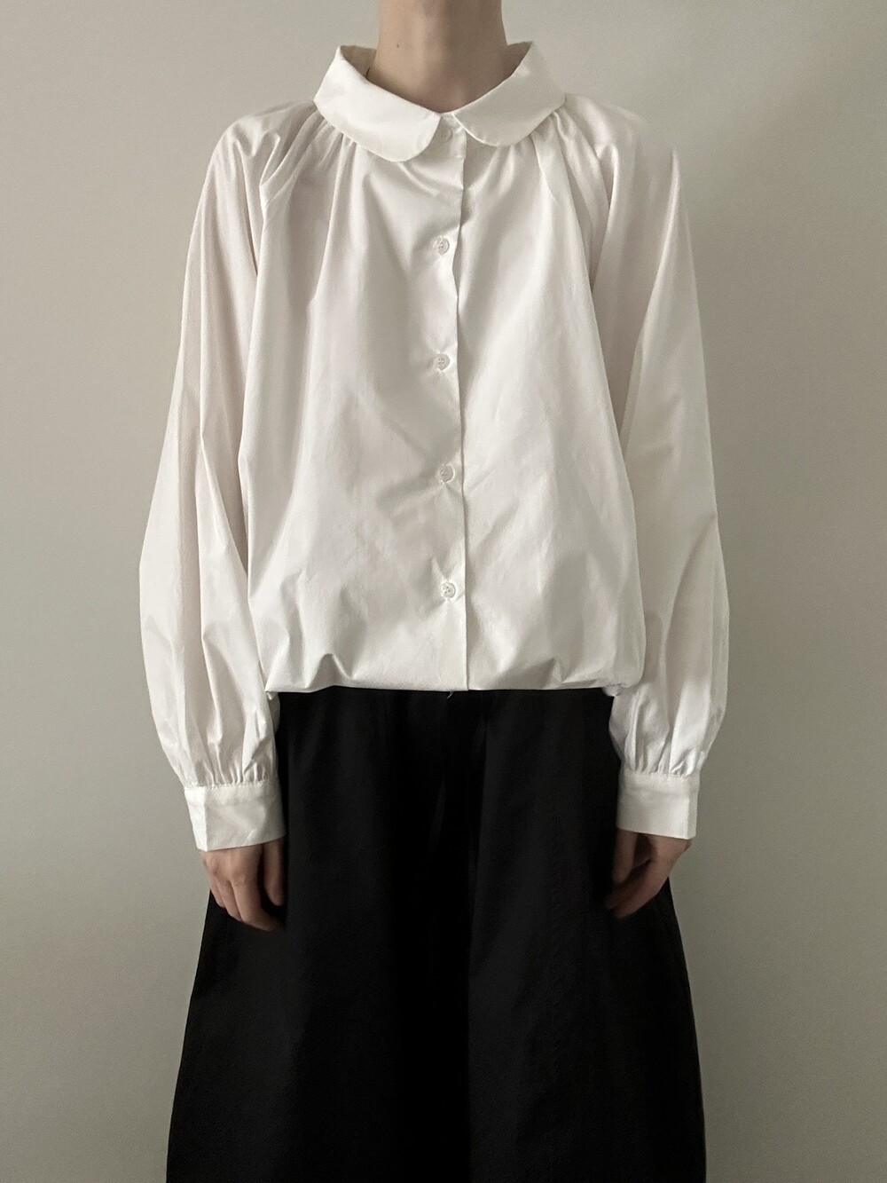 둥글게 떨어지는 카라와 자연스럽게 잡힌 셔링이