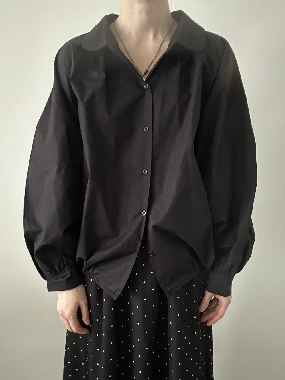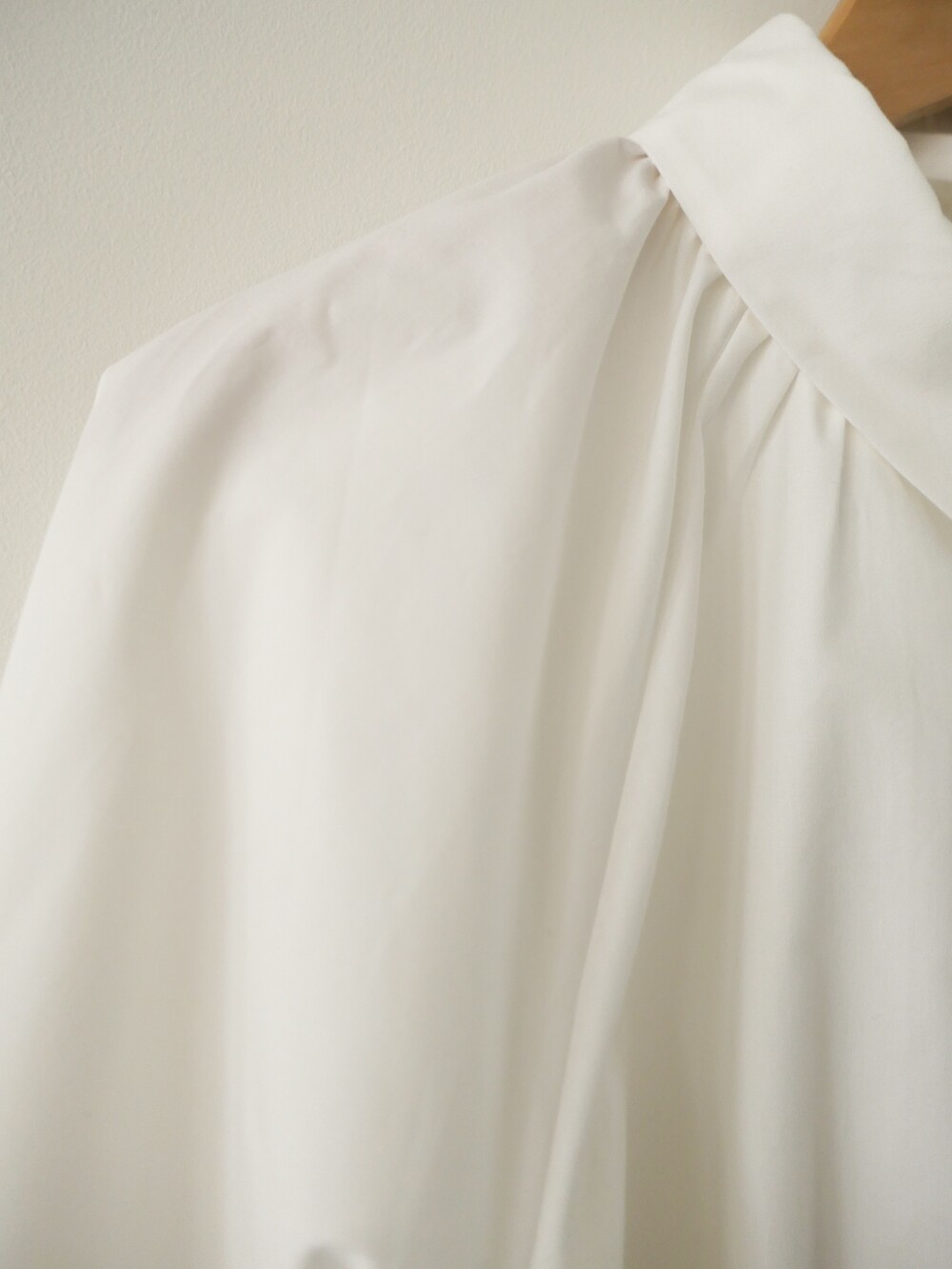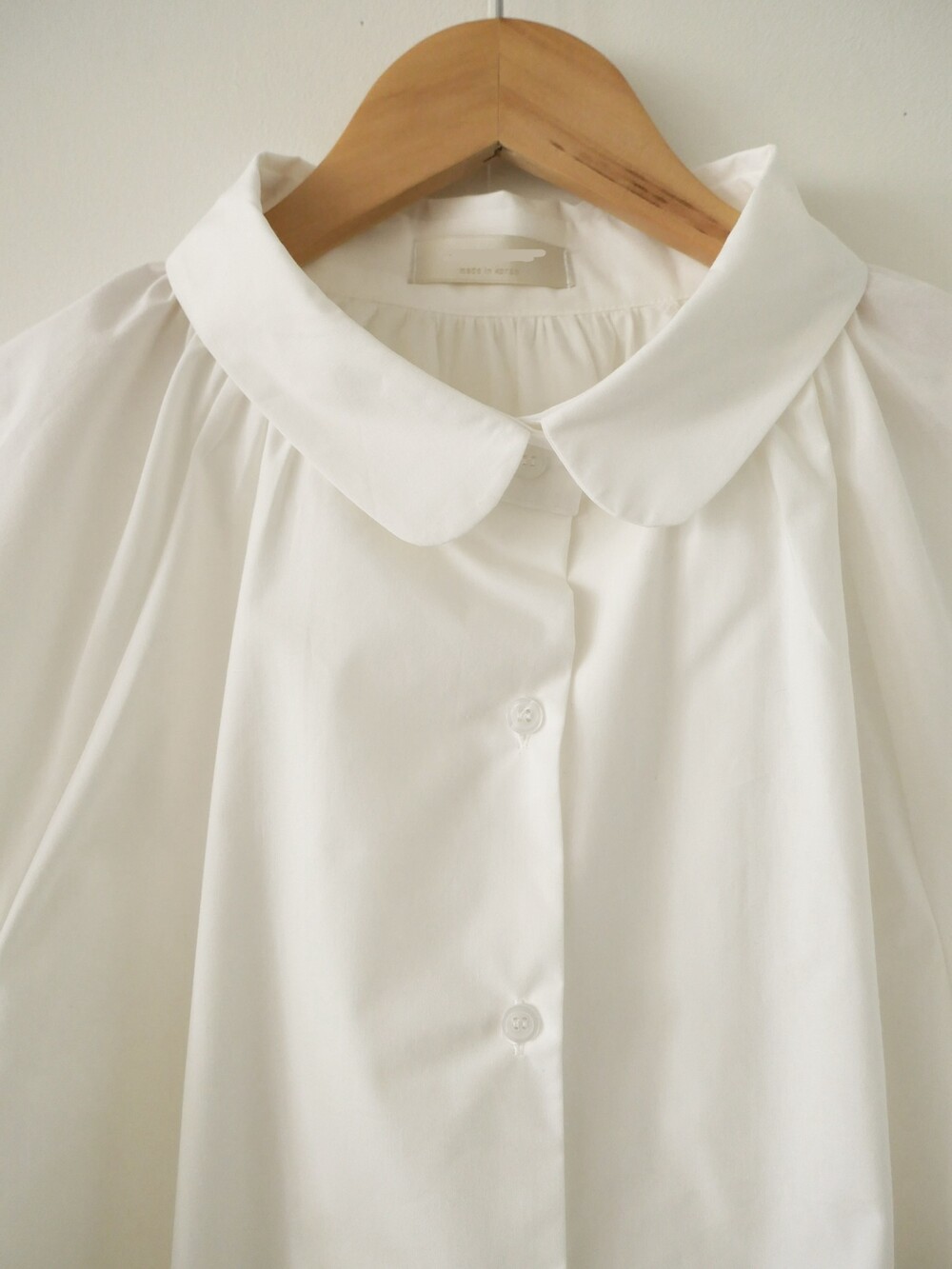 둥글게 떨어지는 카라와 자연스럽게 잡힌 셔링이