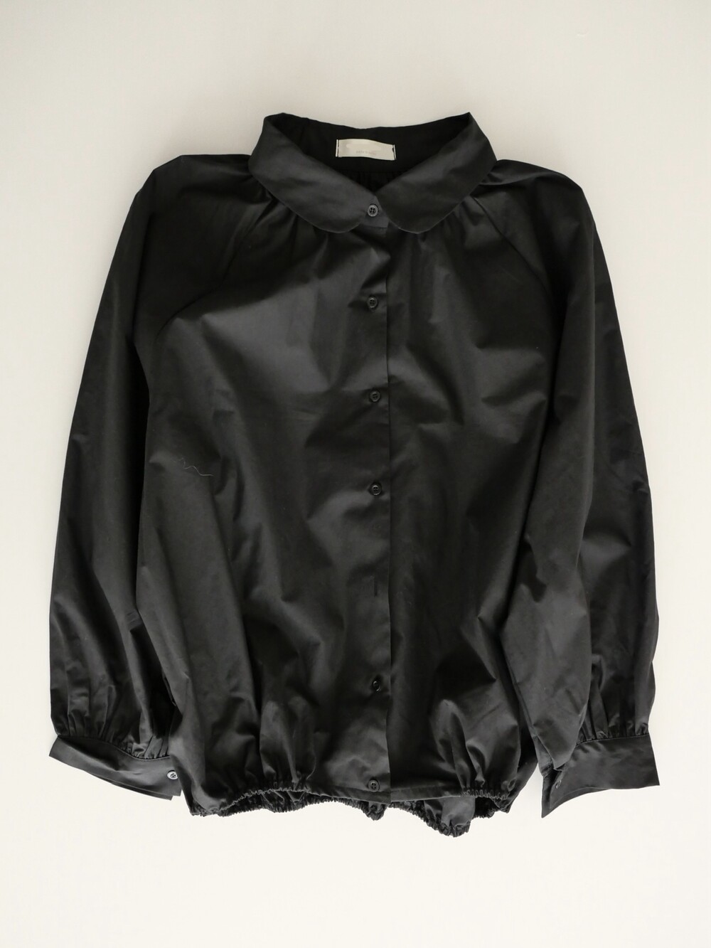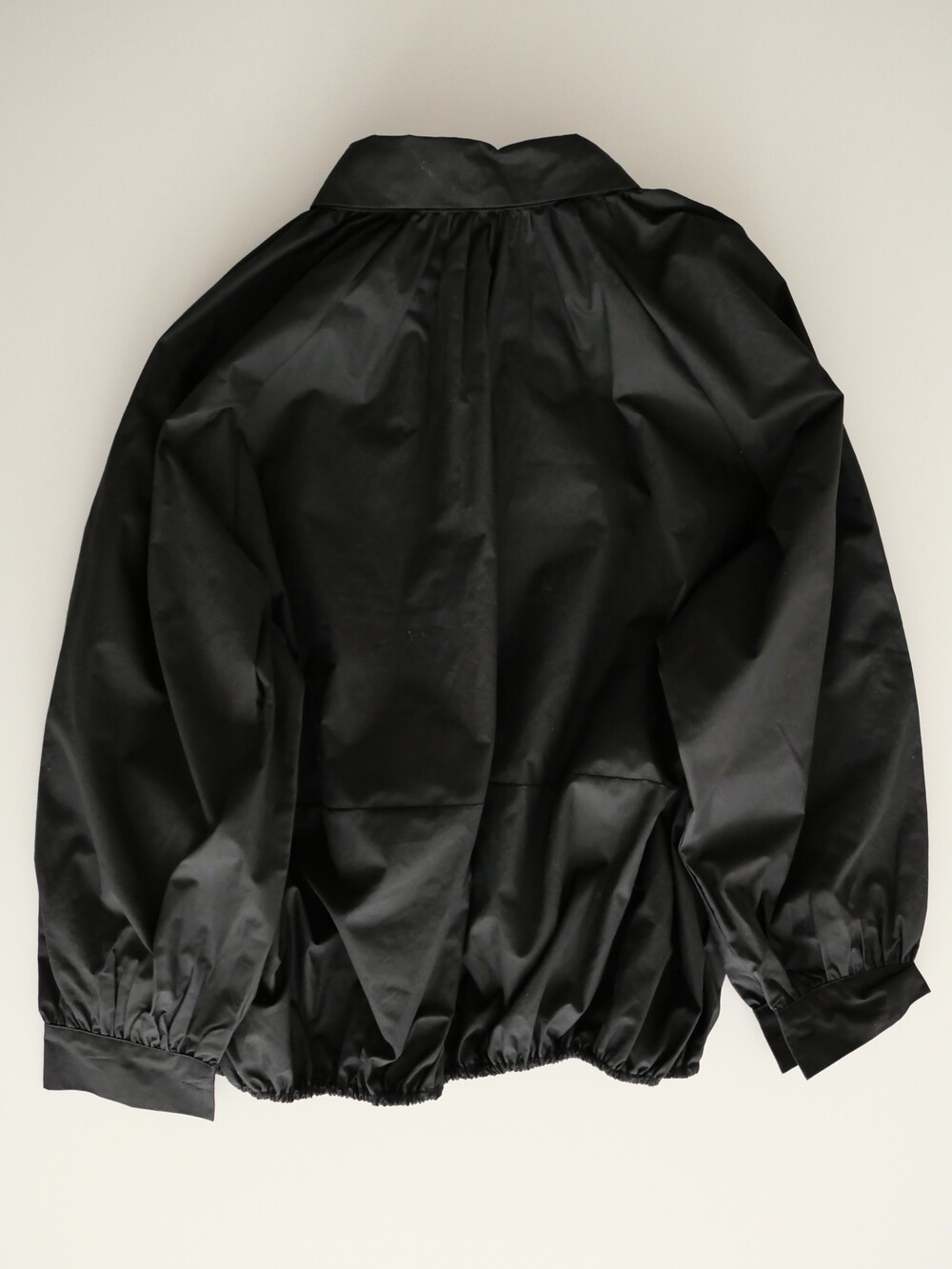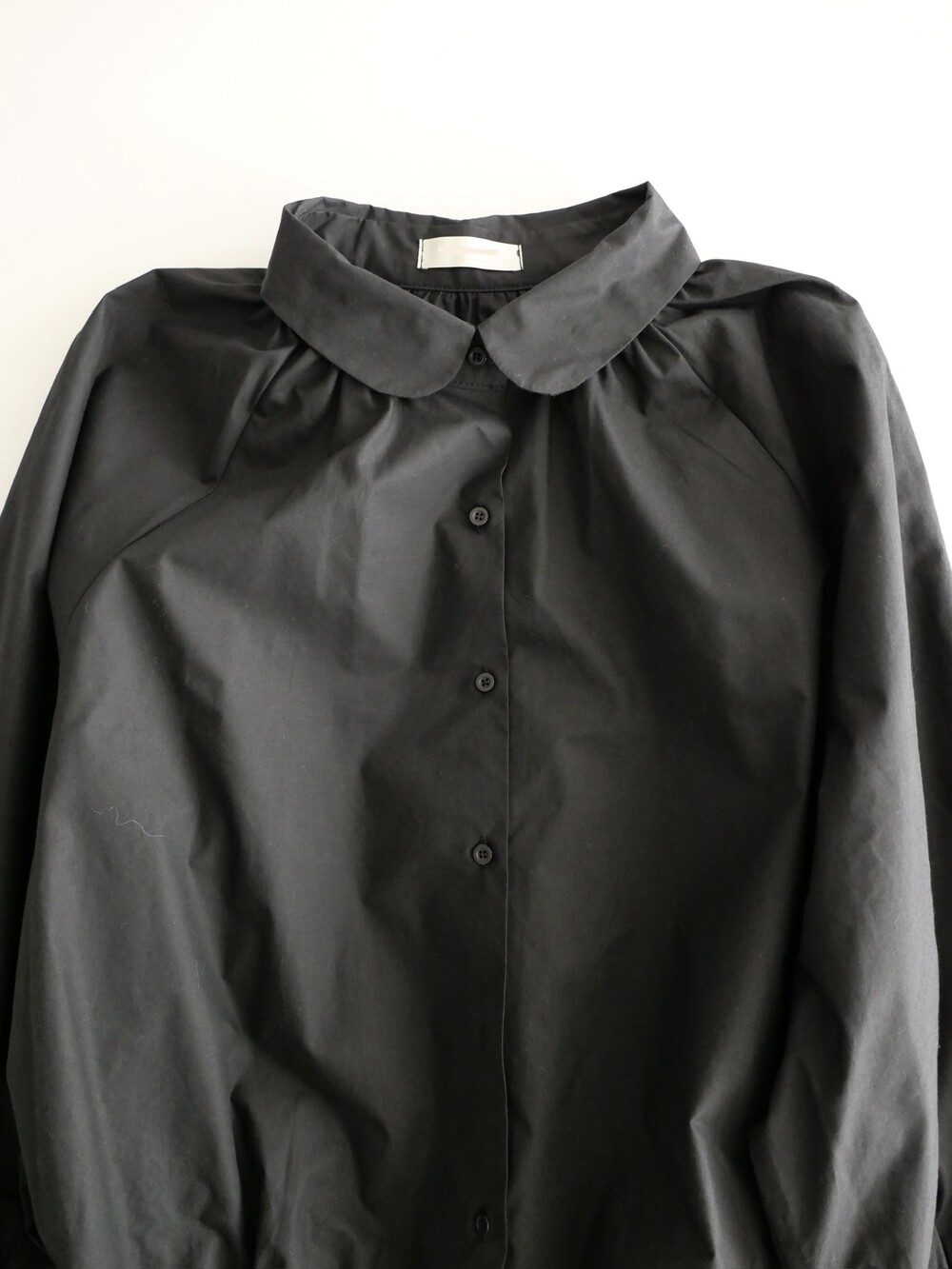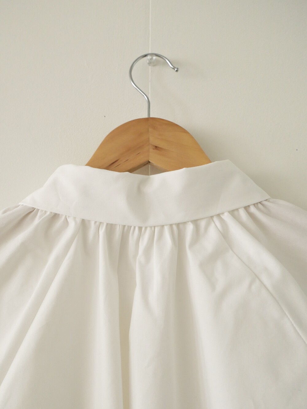 둥글게 떨어지는 카라와 자연스럽게 잡힌 셔링이