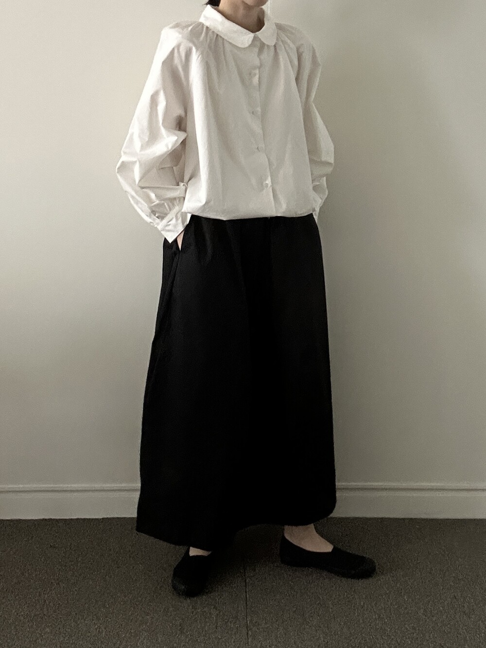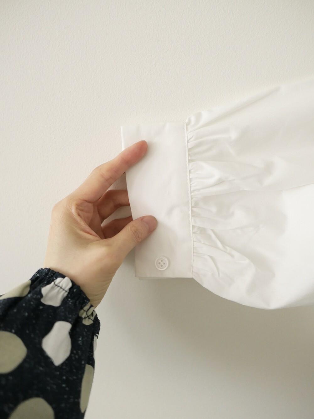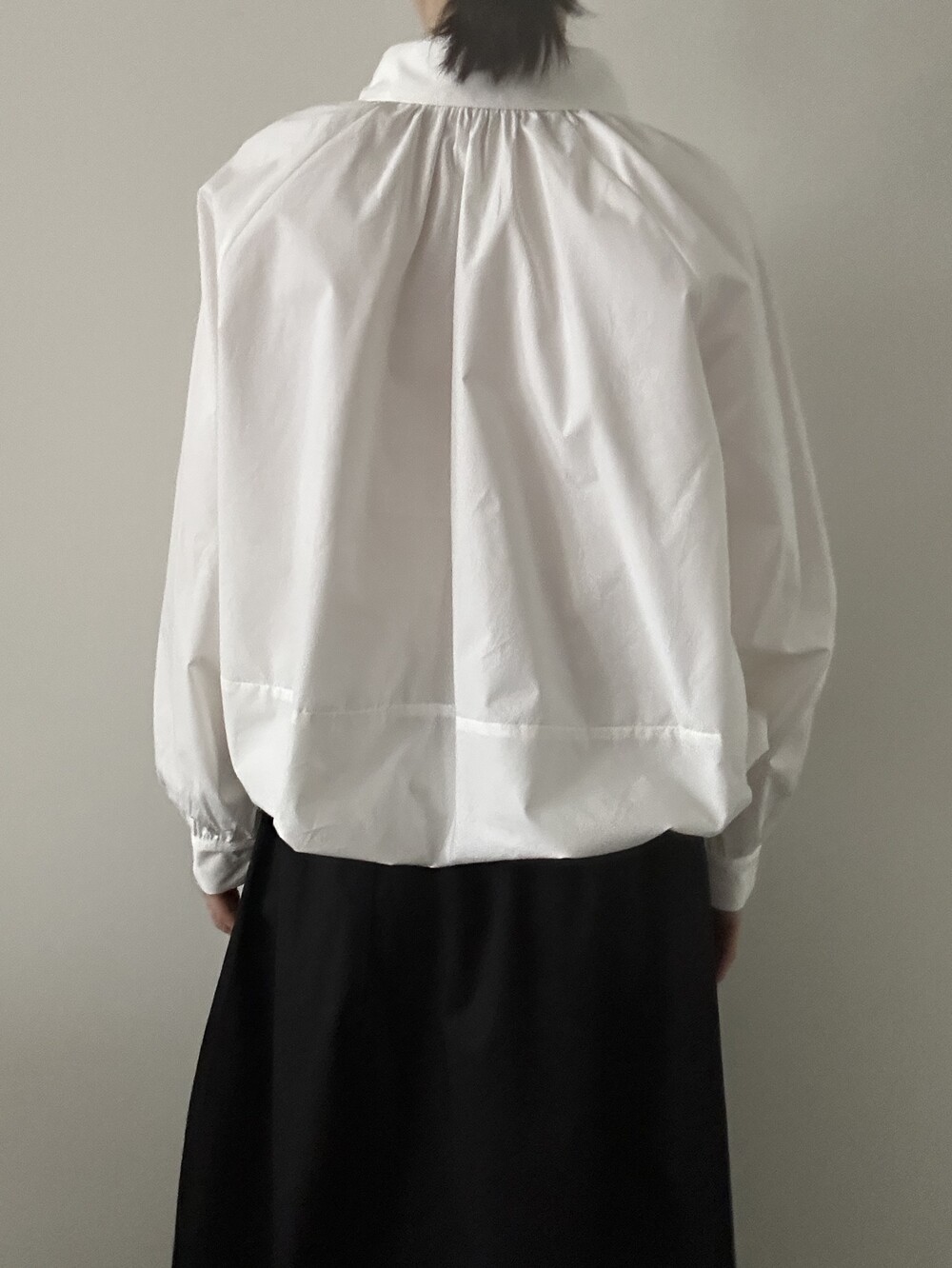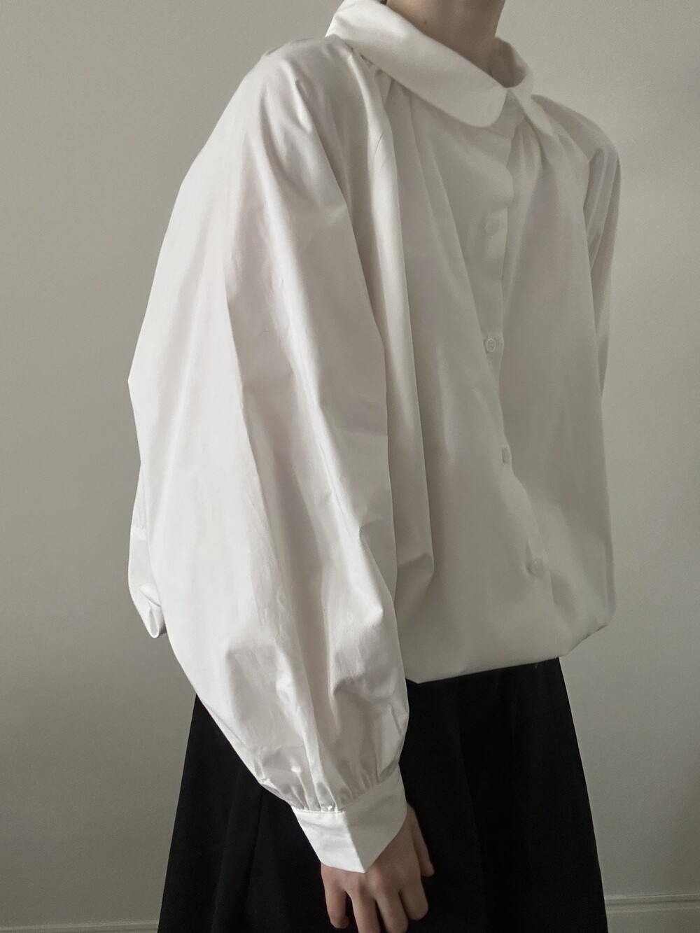소매 역시 볼륨감 있게 마무리되어 전체적인 균형을 잡아줍니다.
