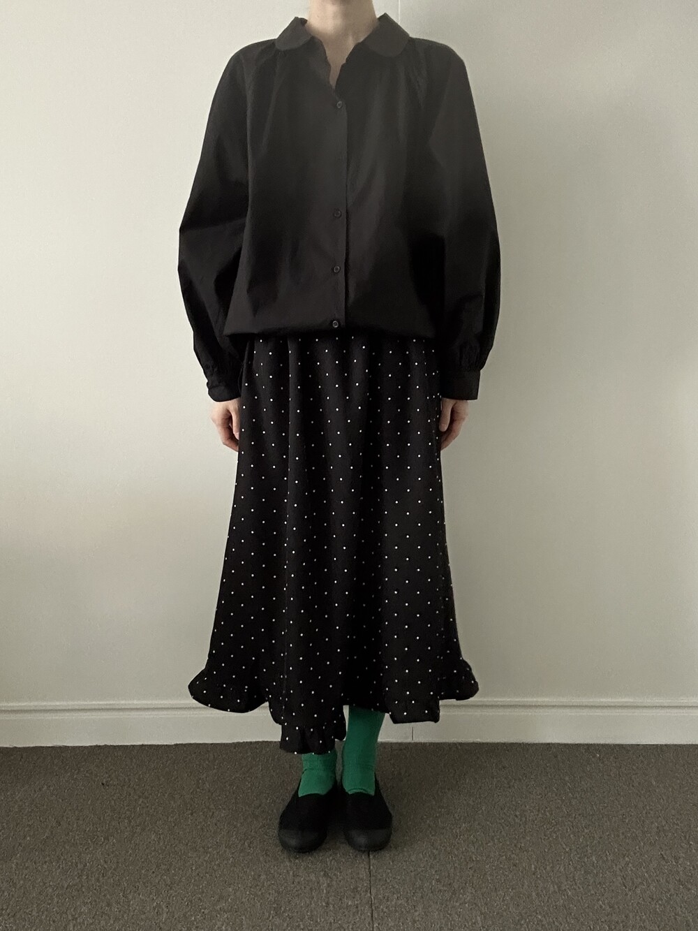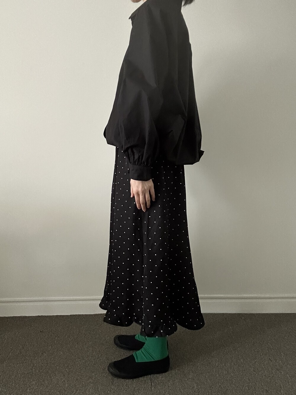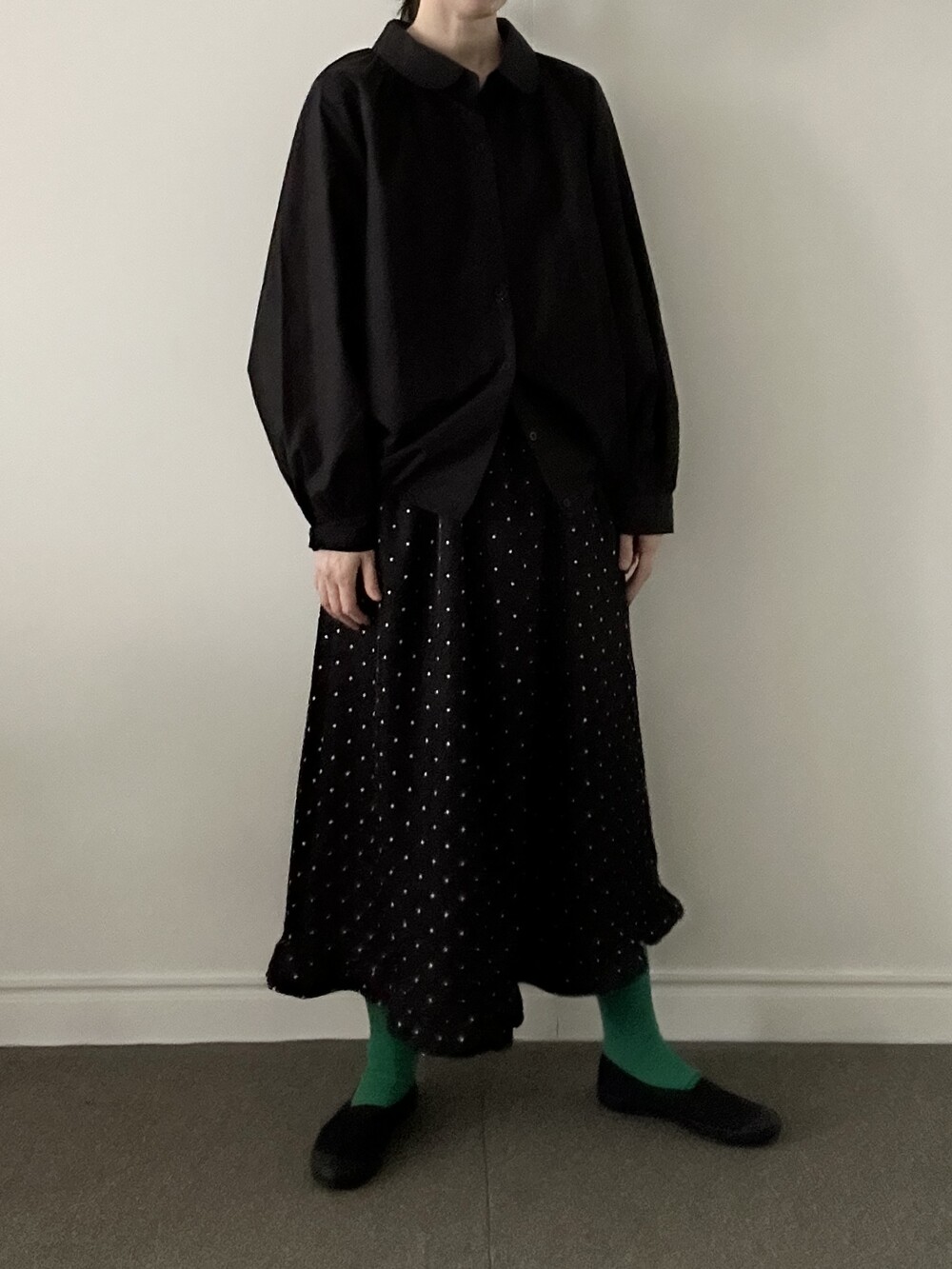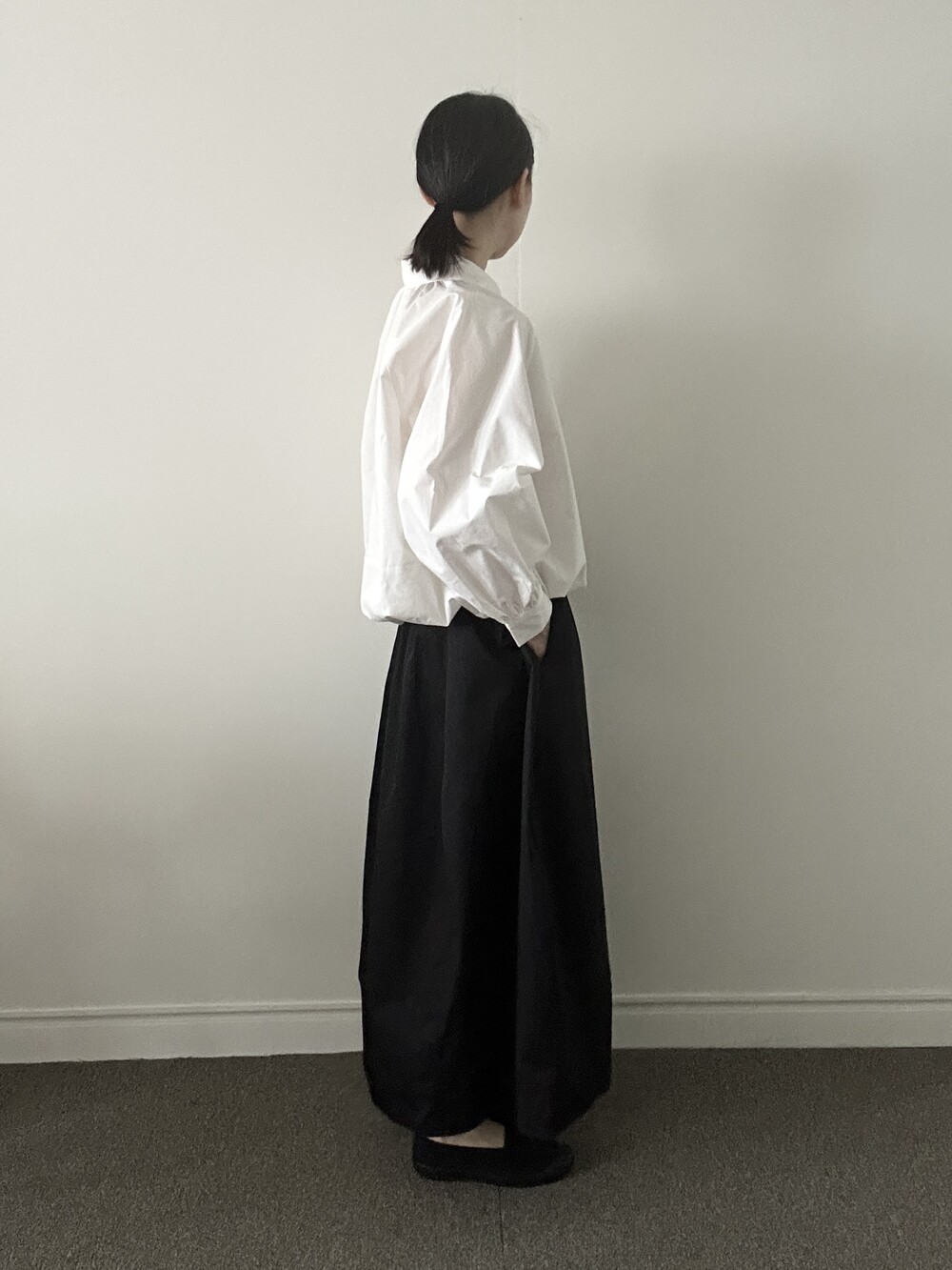 소매 역시 볼륨감 있게 마무리되어 전체적인 균형을 잡아줍니다.