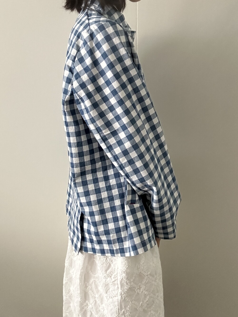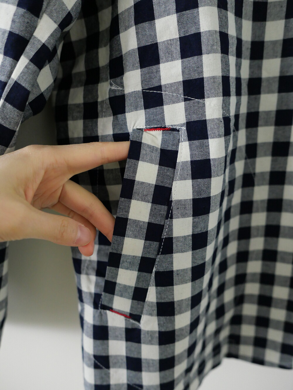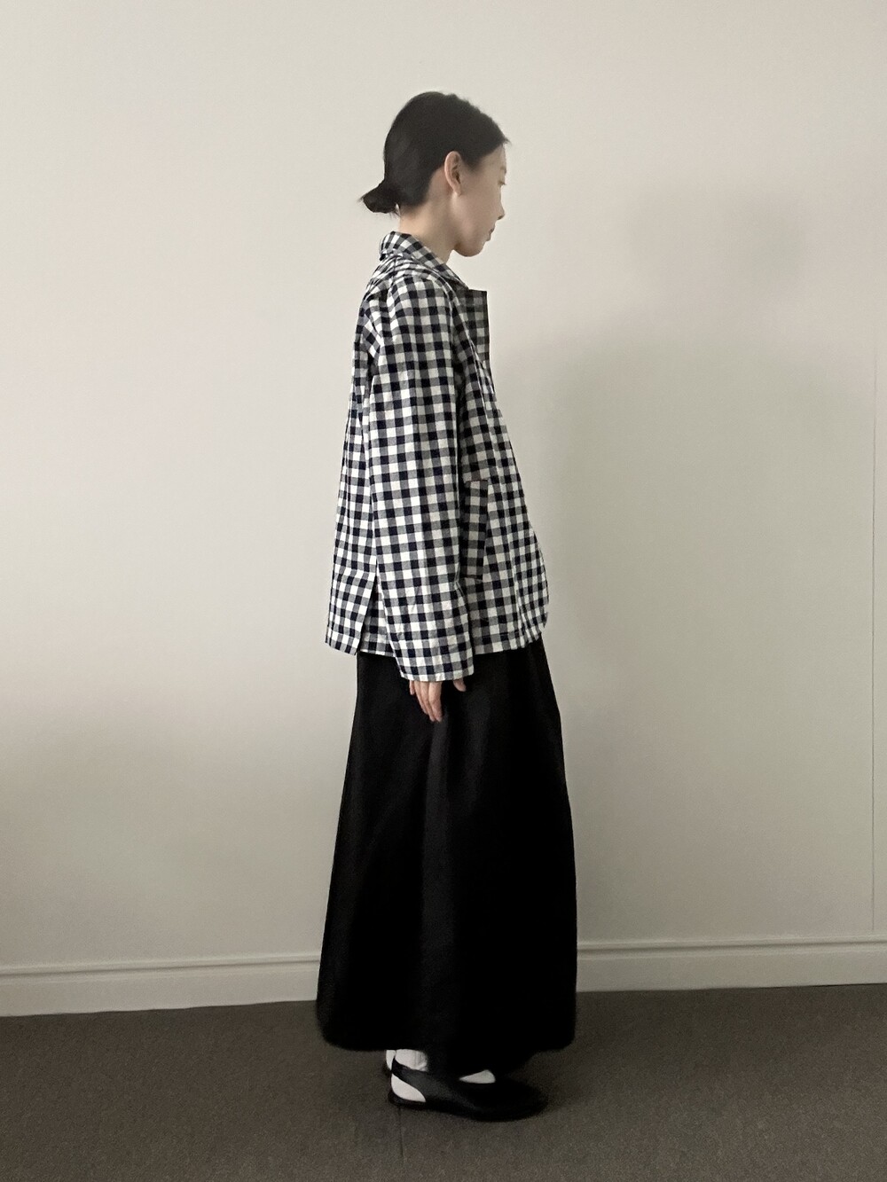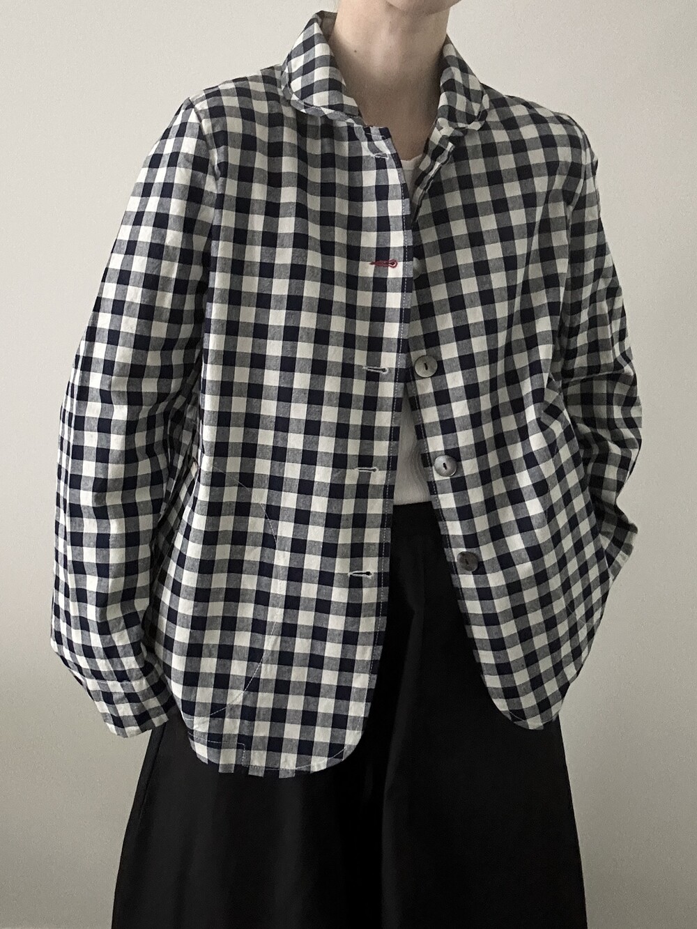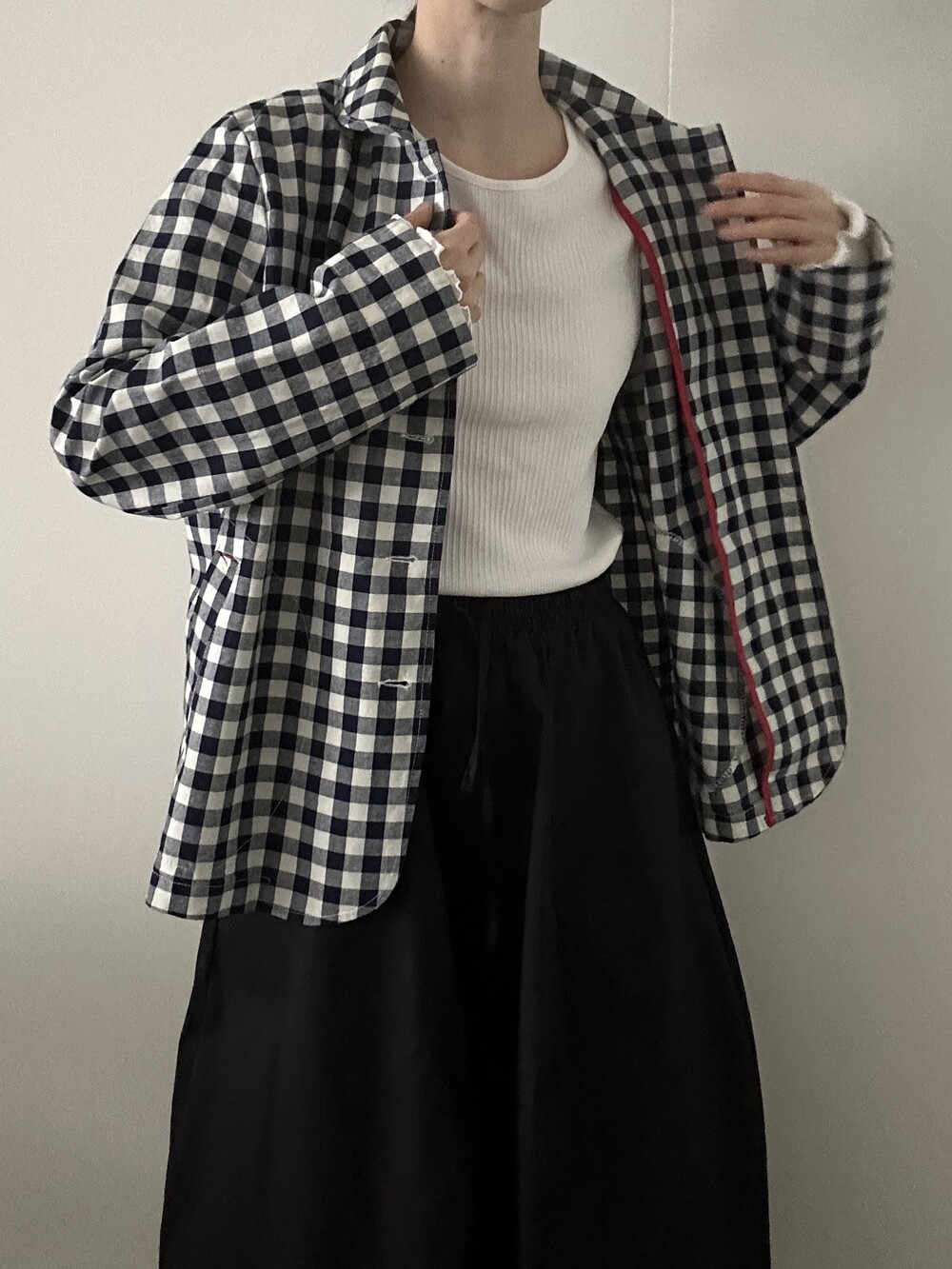 실을 먼저 염색해 짜낸 선염 원단 특유의 깊이감 있는 체크 패턴이 자연스럽고 은은한 분위기를 만들어줍니다.