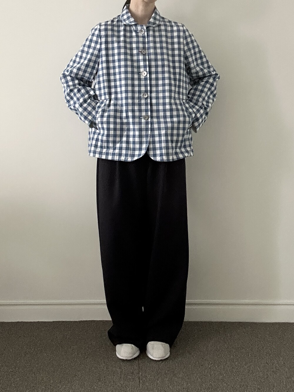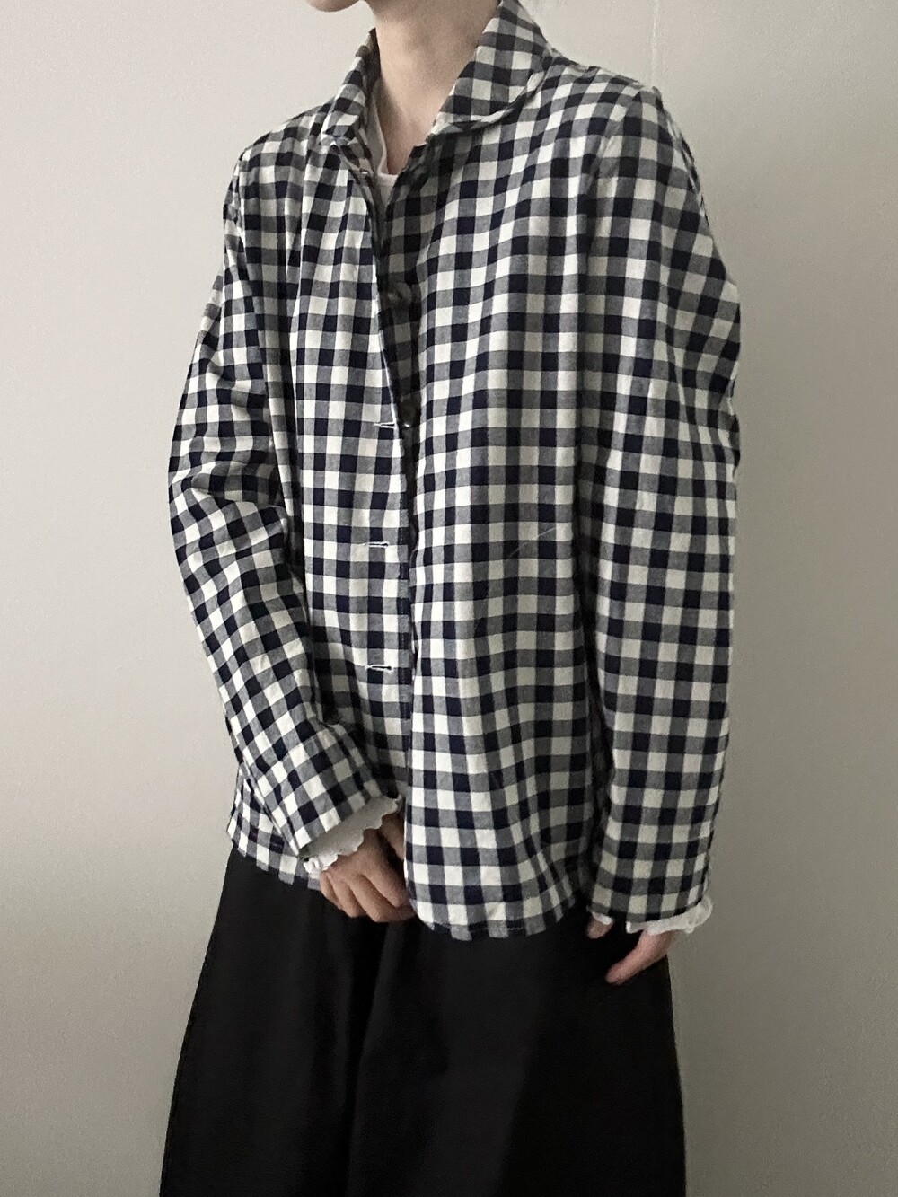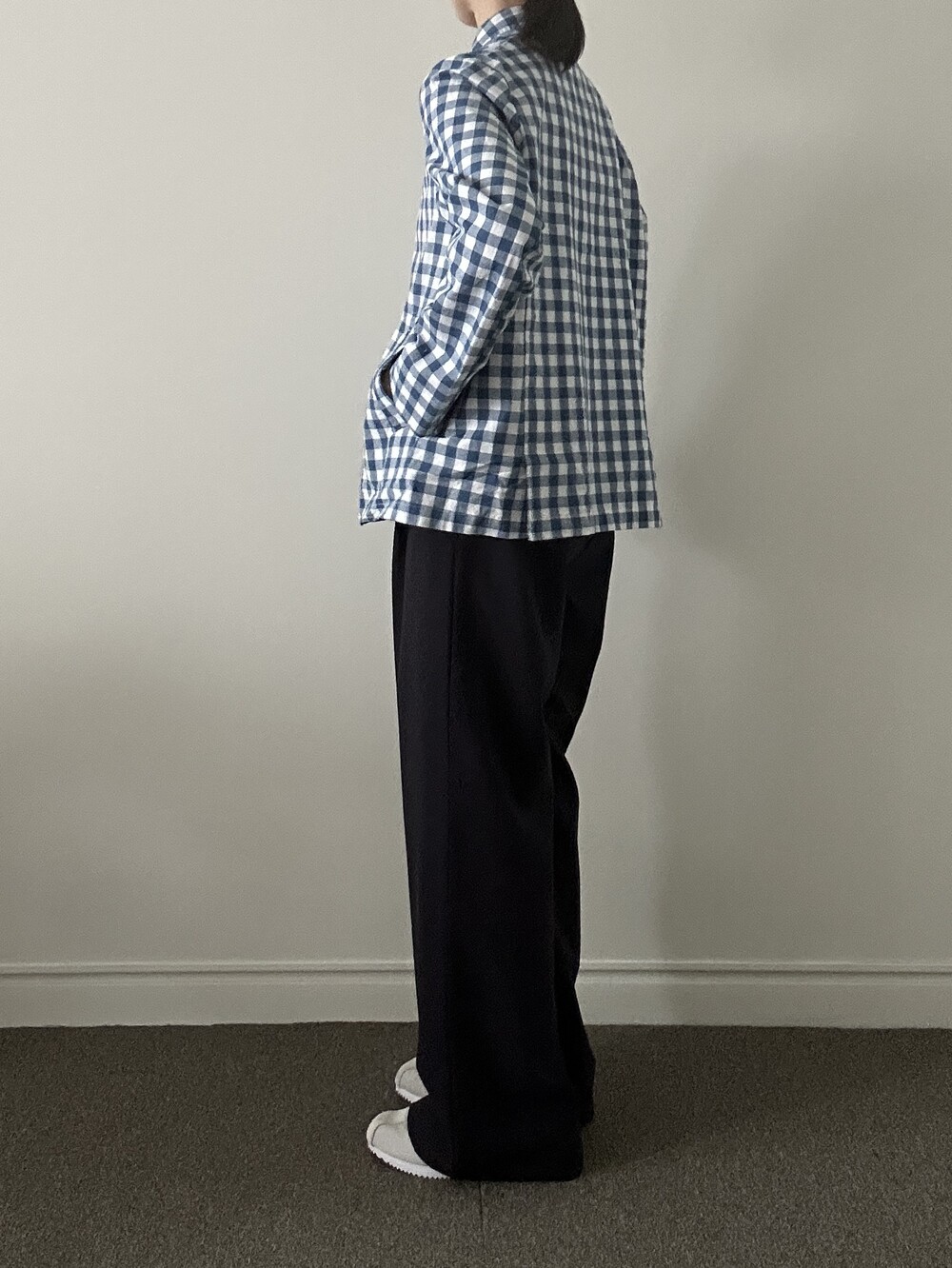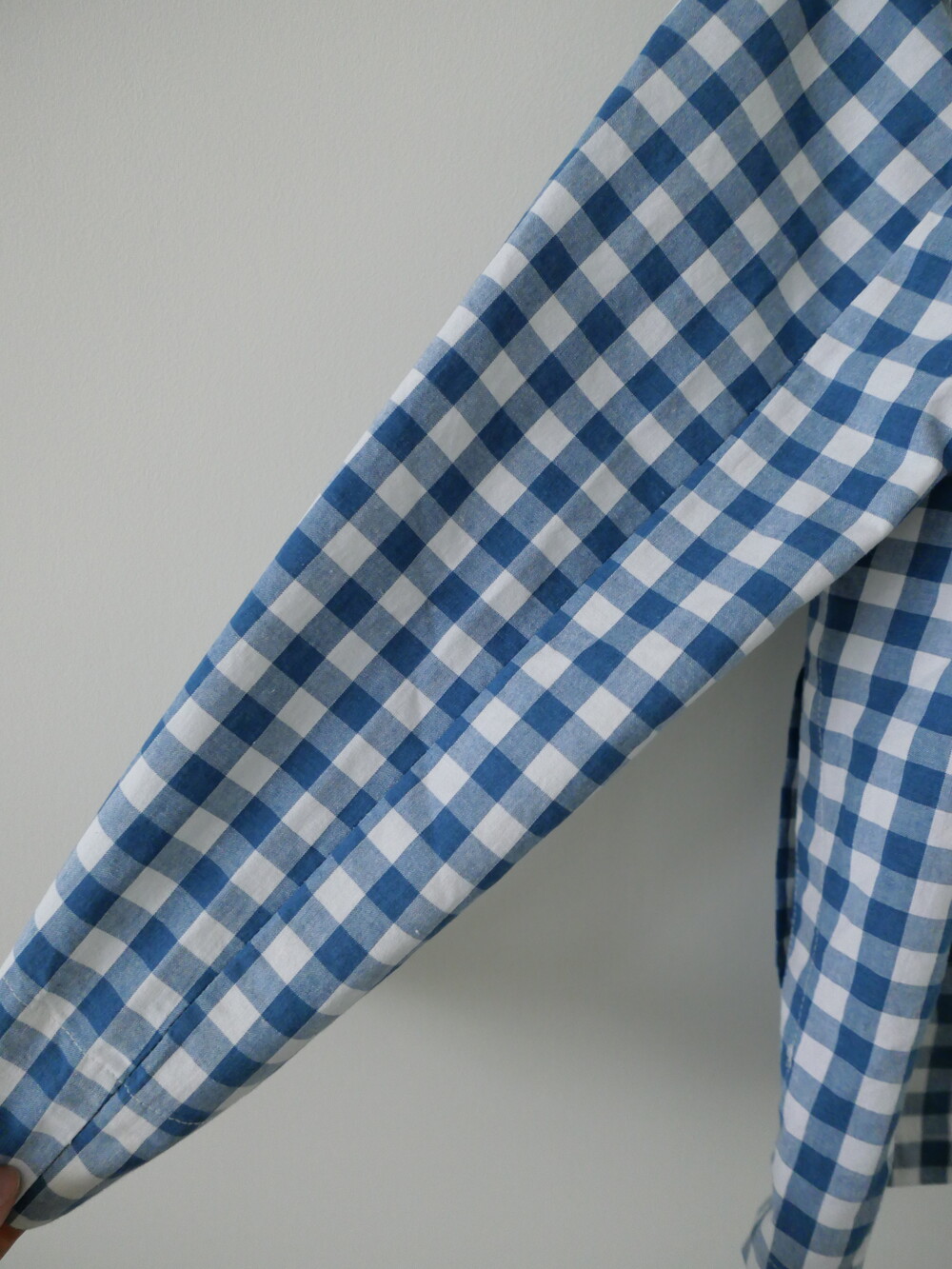 실을 먼저 염색해 짜낸 선염 원단 특유의 깊이감 있는 체크 패턴이 자연스럽고 은은한 분위기를 만들어줍니다.