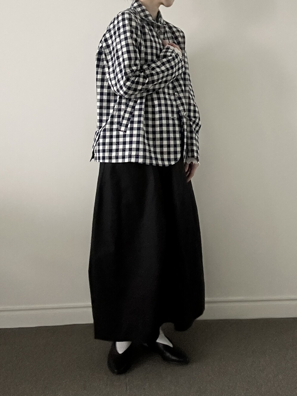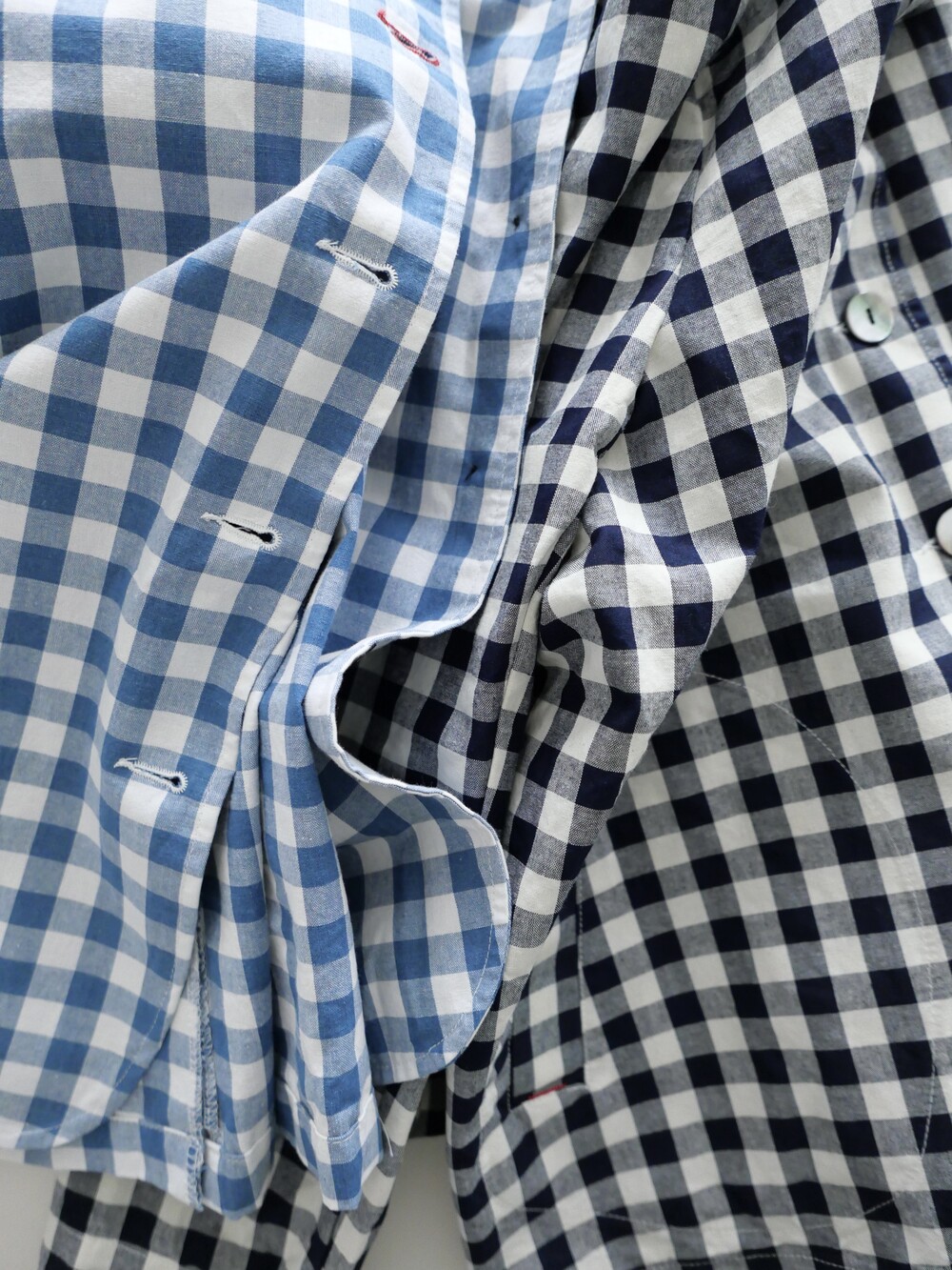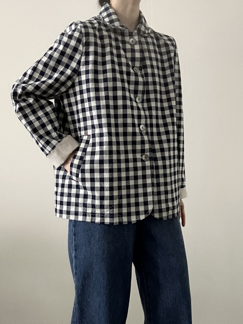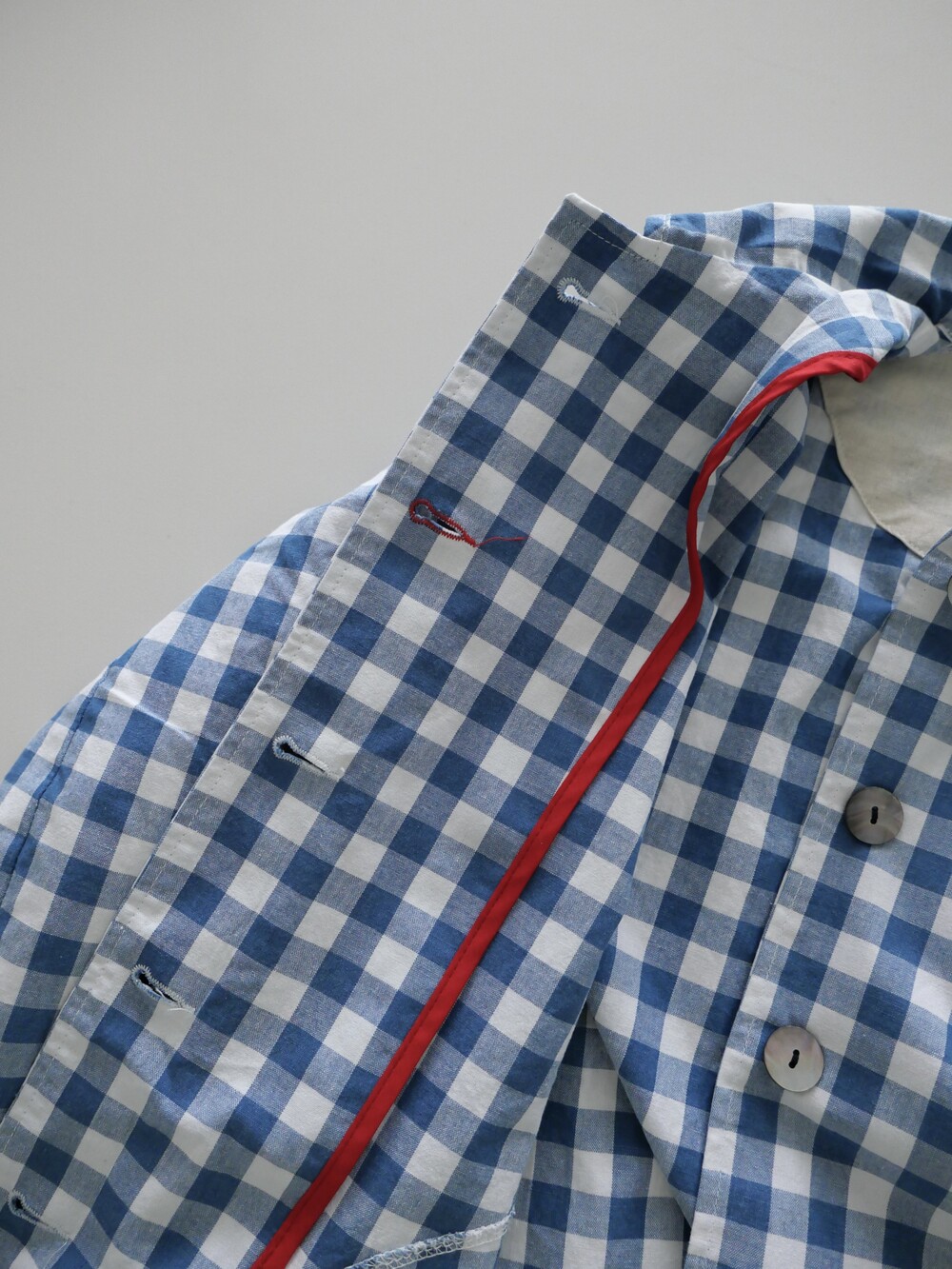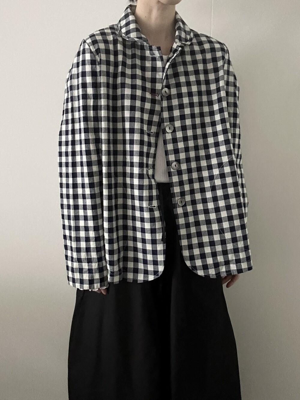 실을 먼저 염색해 짜낸 선염 원단 특유의 깊이감 있는 체크 패턴이 자연스럽고 은은한 분위기를 만들어줍니다.