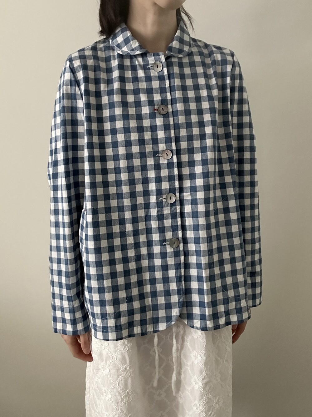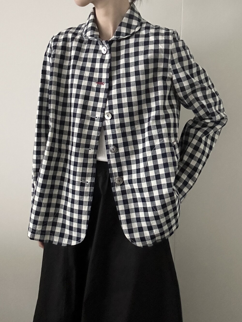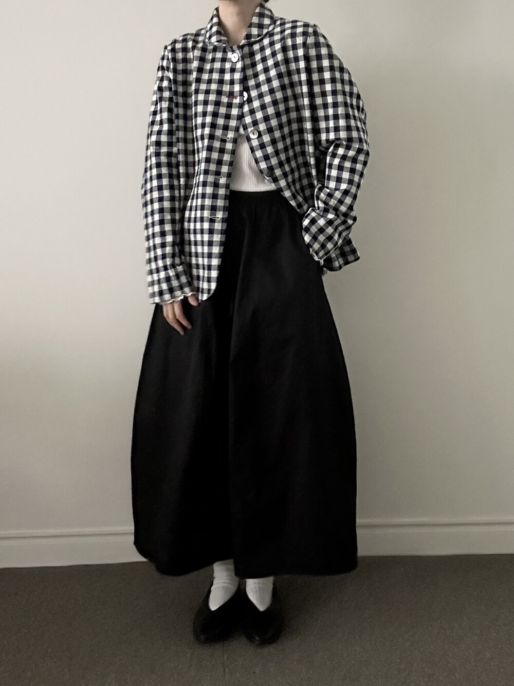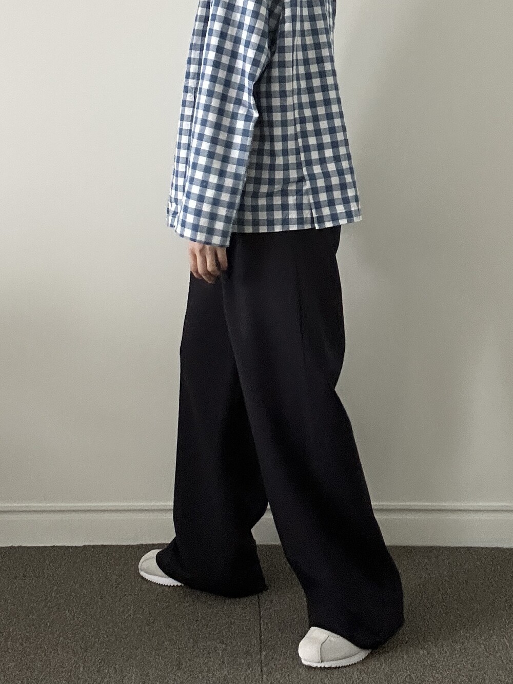 실을 먼저 염색해 짜낸 선염 원단 특유의 깊이감 있는 체크 패턴이 자연스럽고 은은한 분위기를 만들어줍니다.