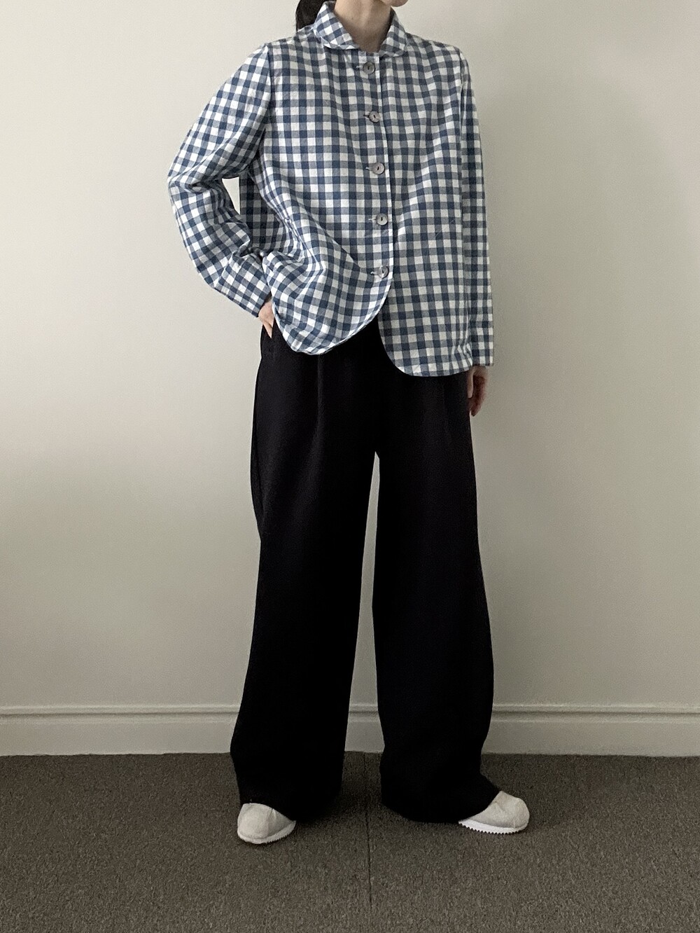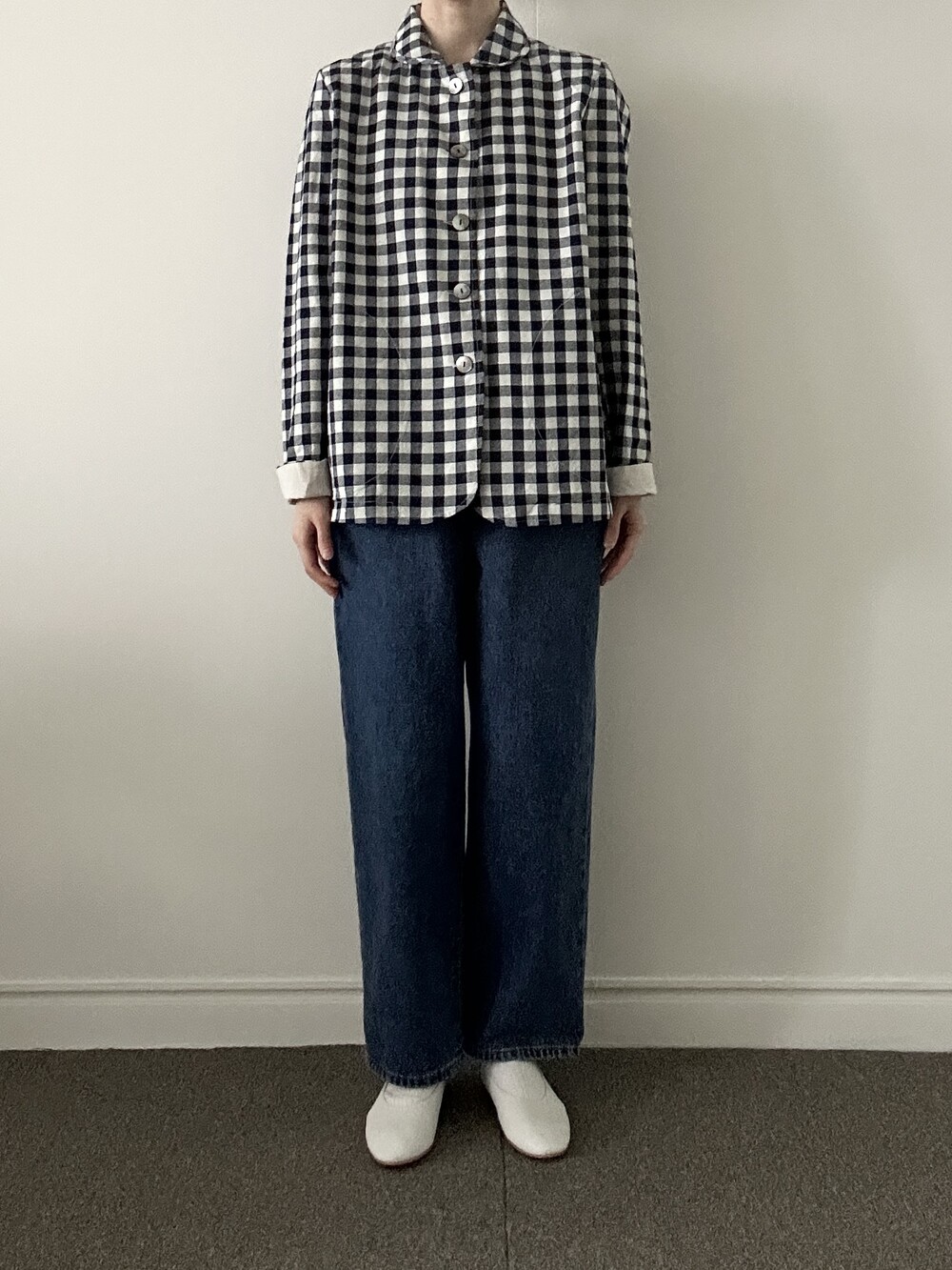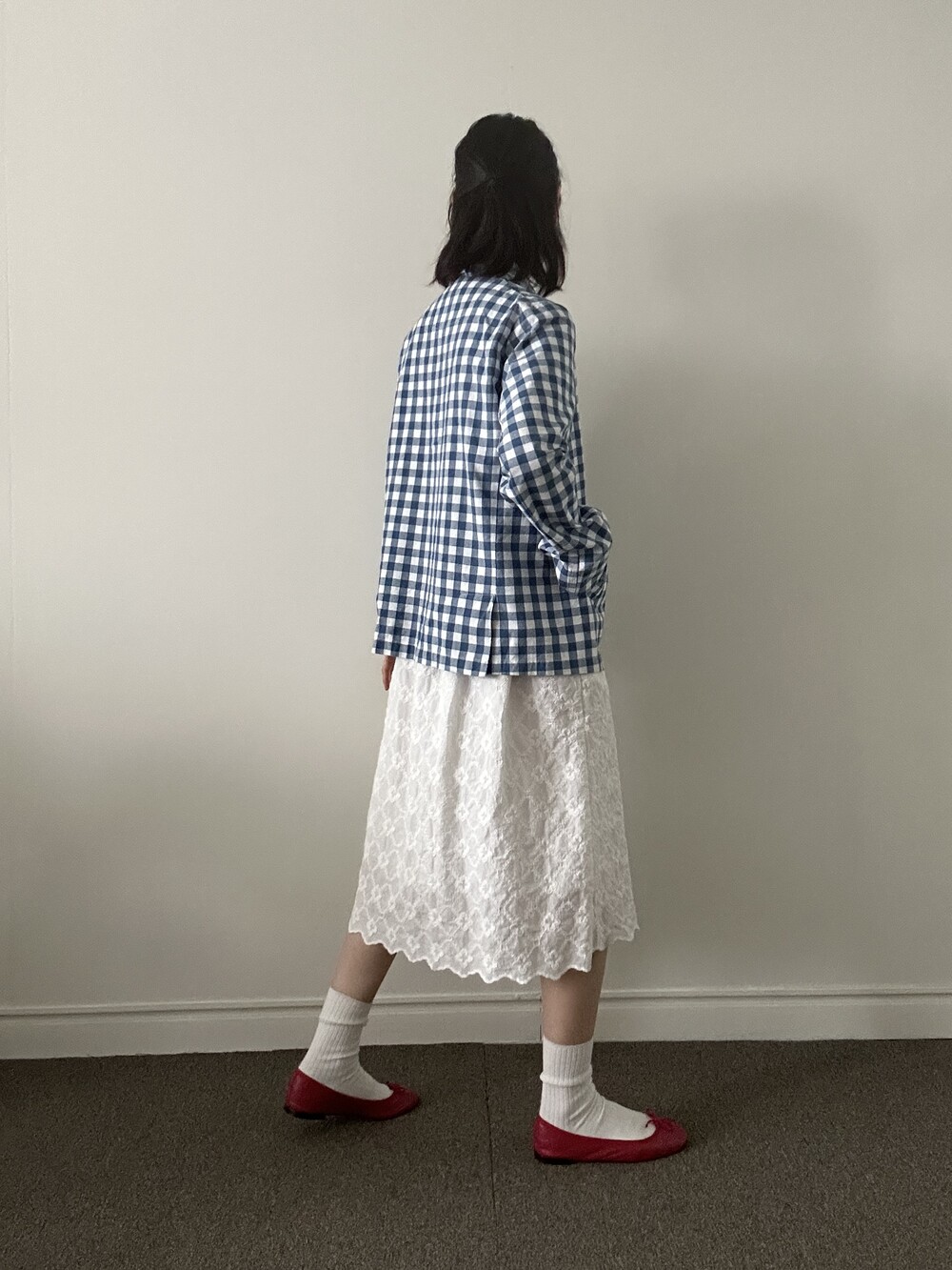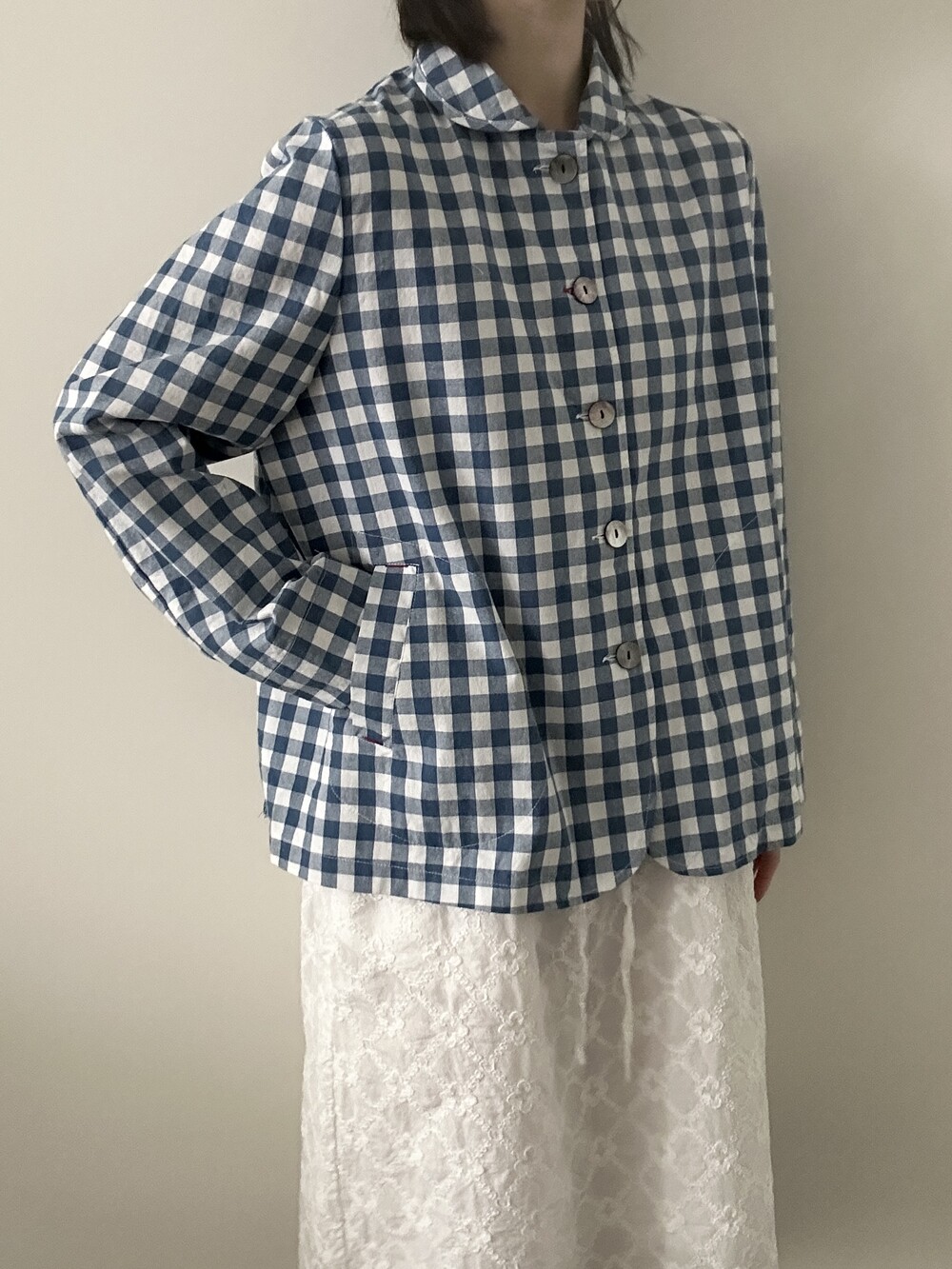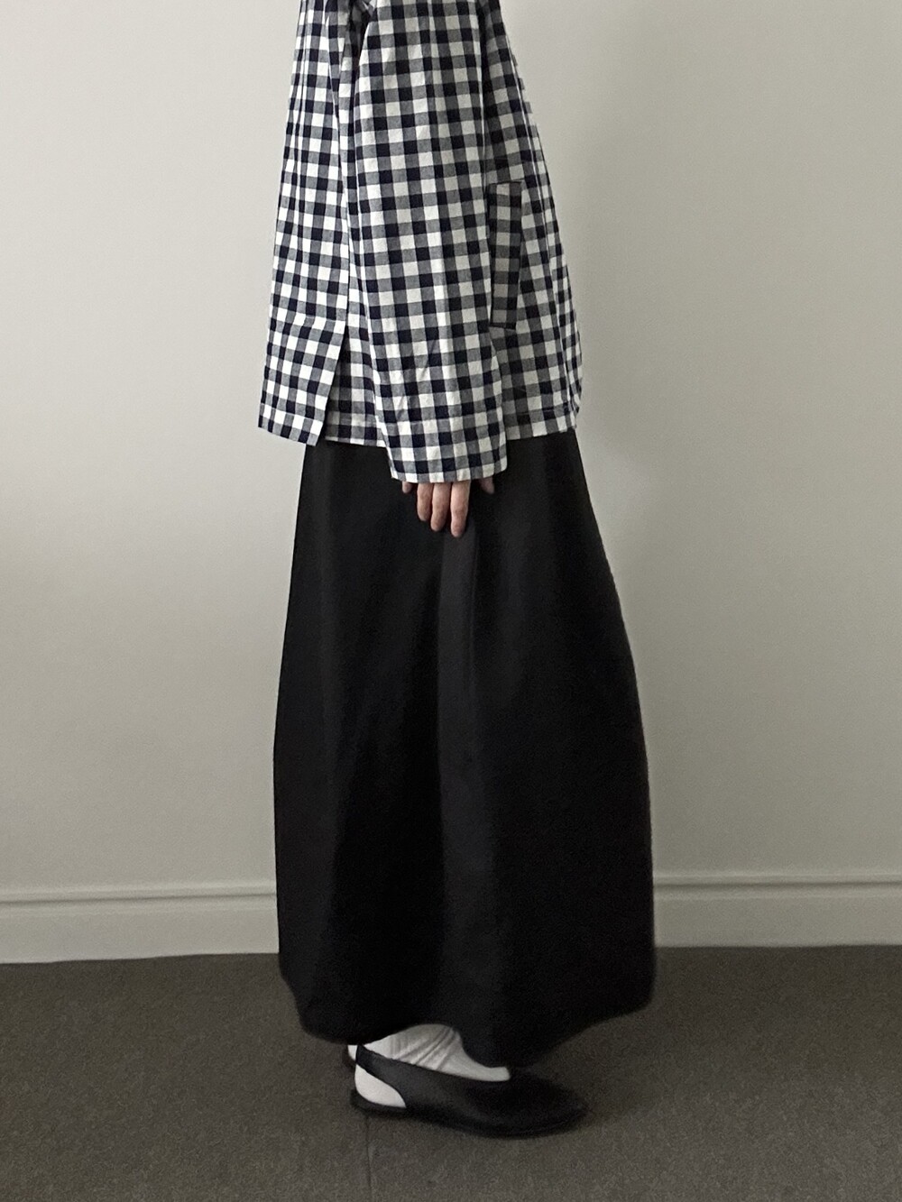 실을 먼저 염색해 짜낸 선염 원단 특유의 깊이감 있는 체크 패턴이 자연스럽고 은은한 분위기를 만들어줍니다.