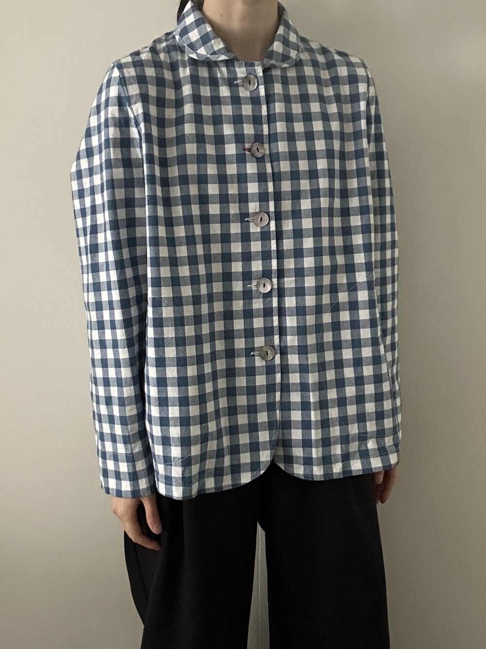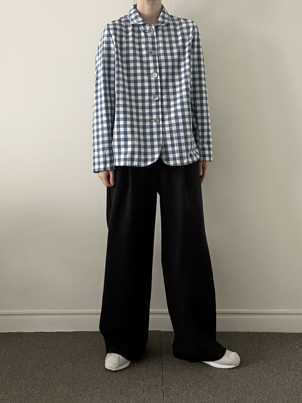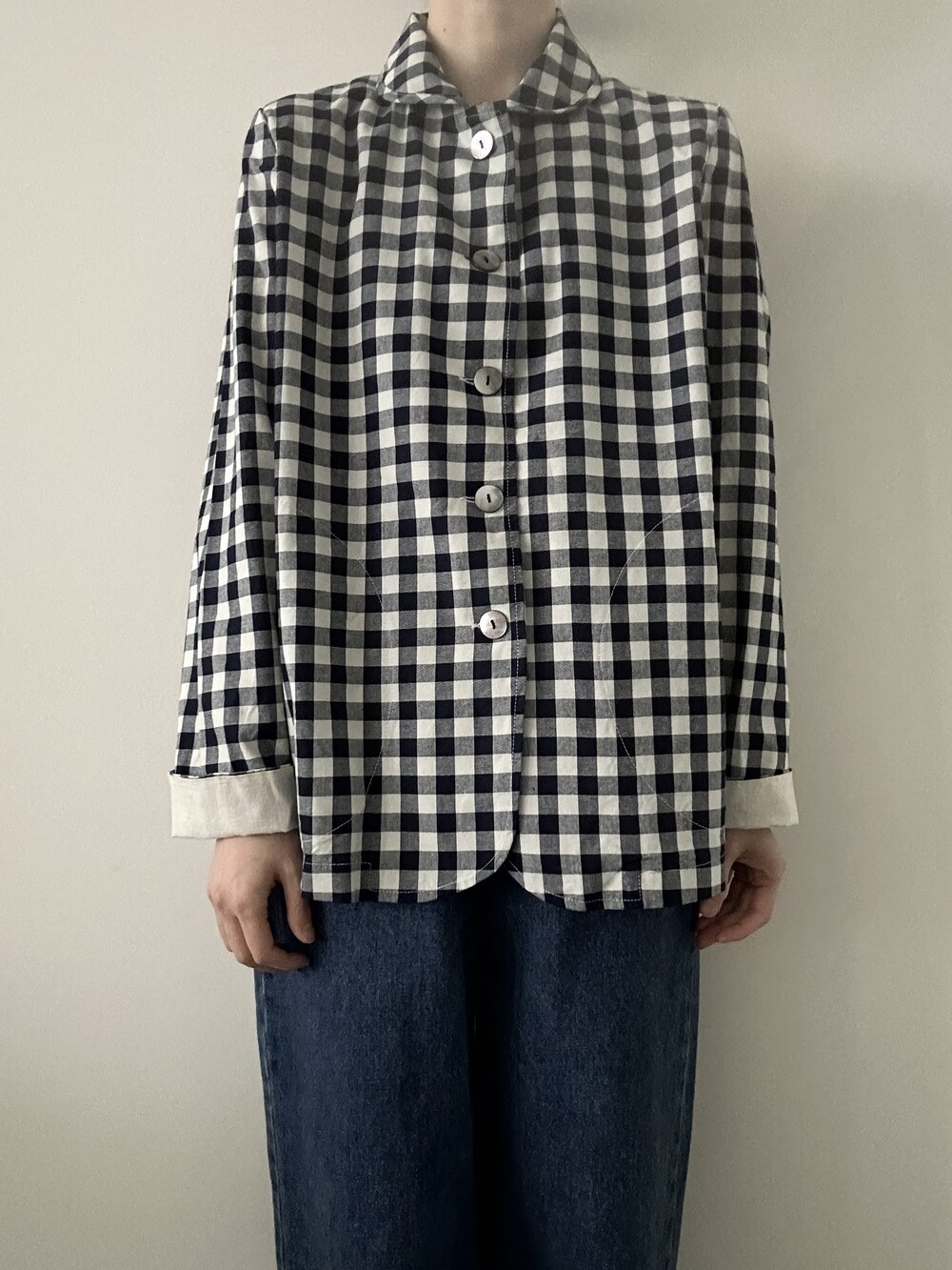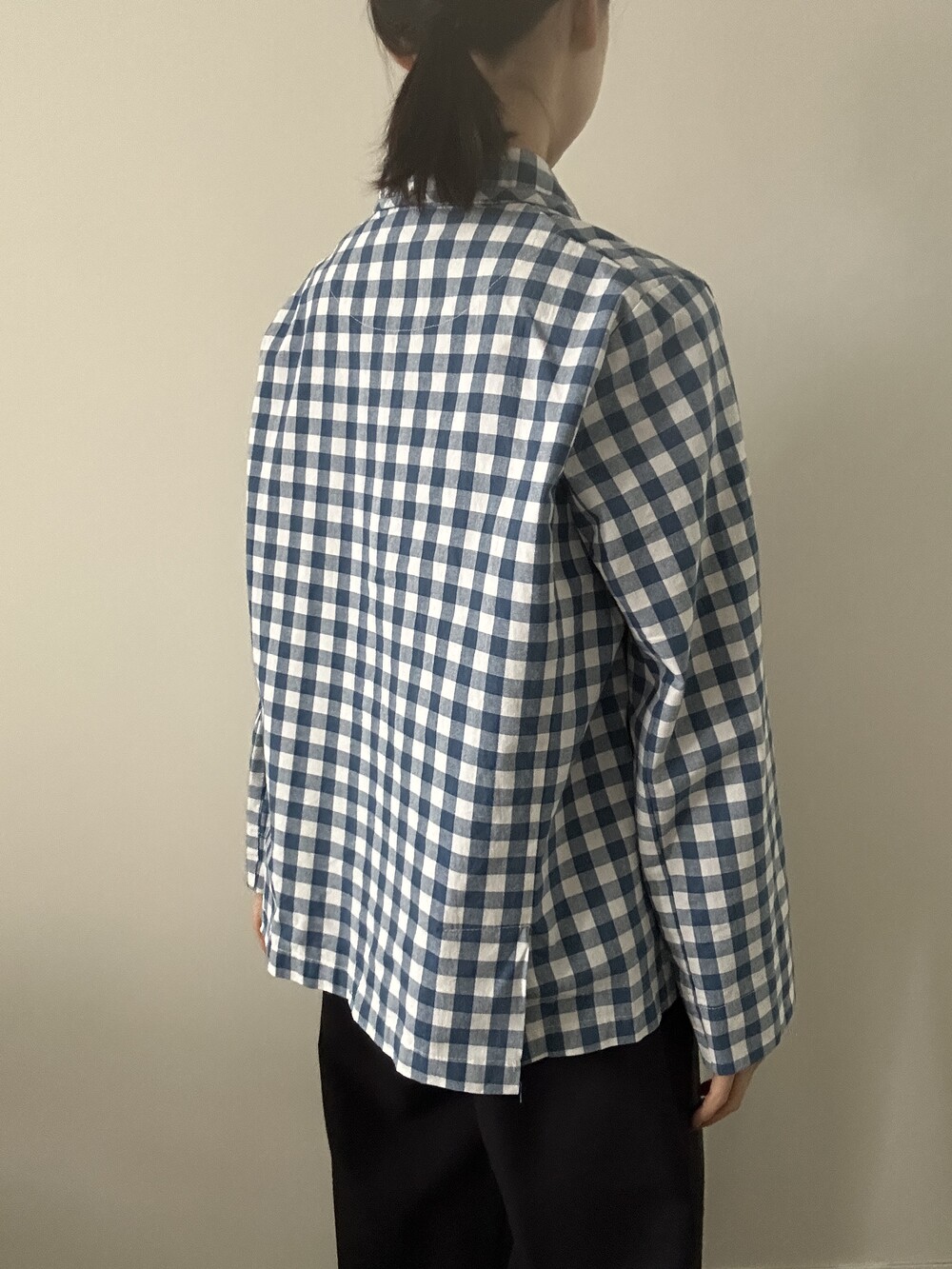 실을 먼저 염색해 짜낸 선염 원단 특유의 깊이감 있는 체크 패턴이 자연스럽고 은은한 분위기를 만들어줍니다.