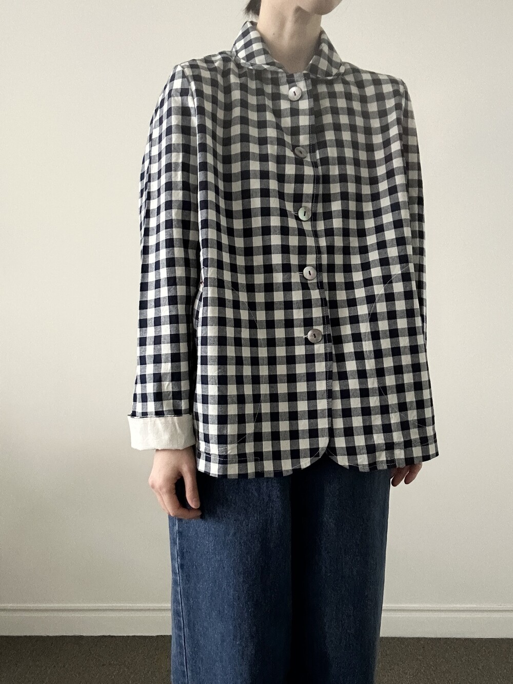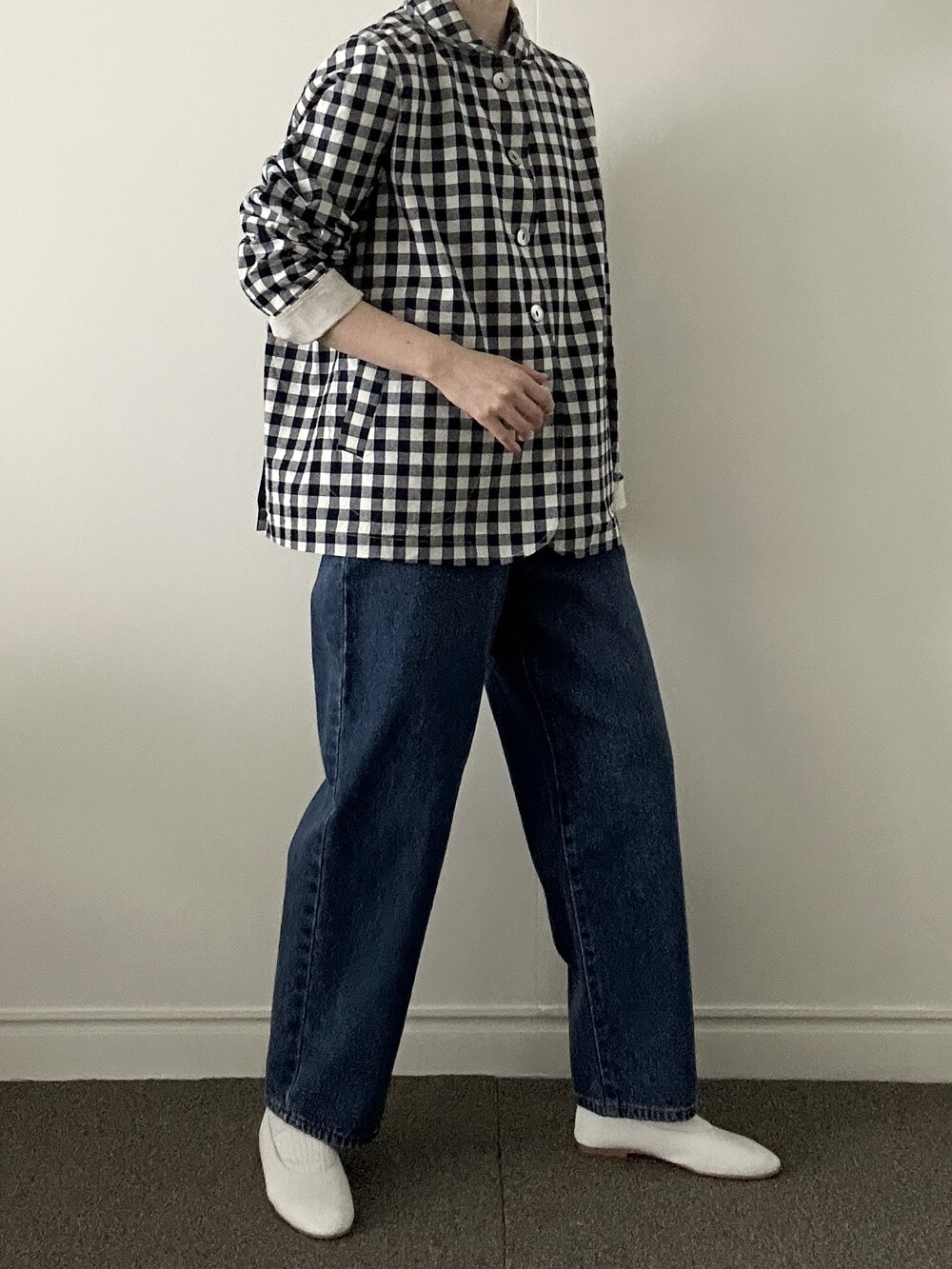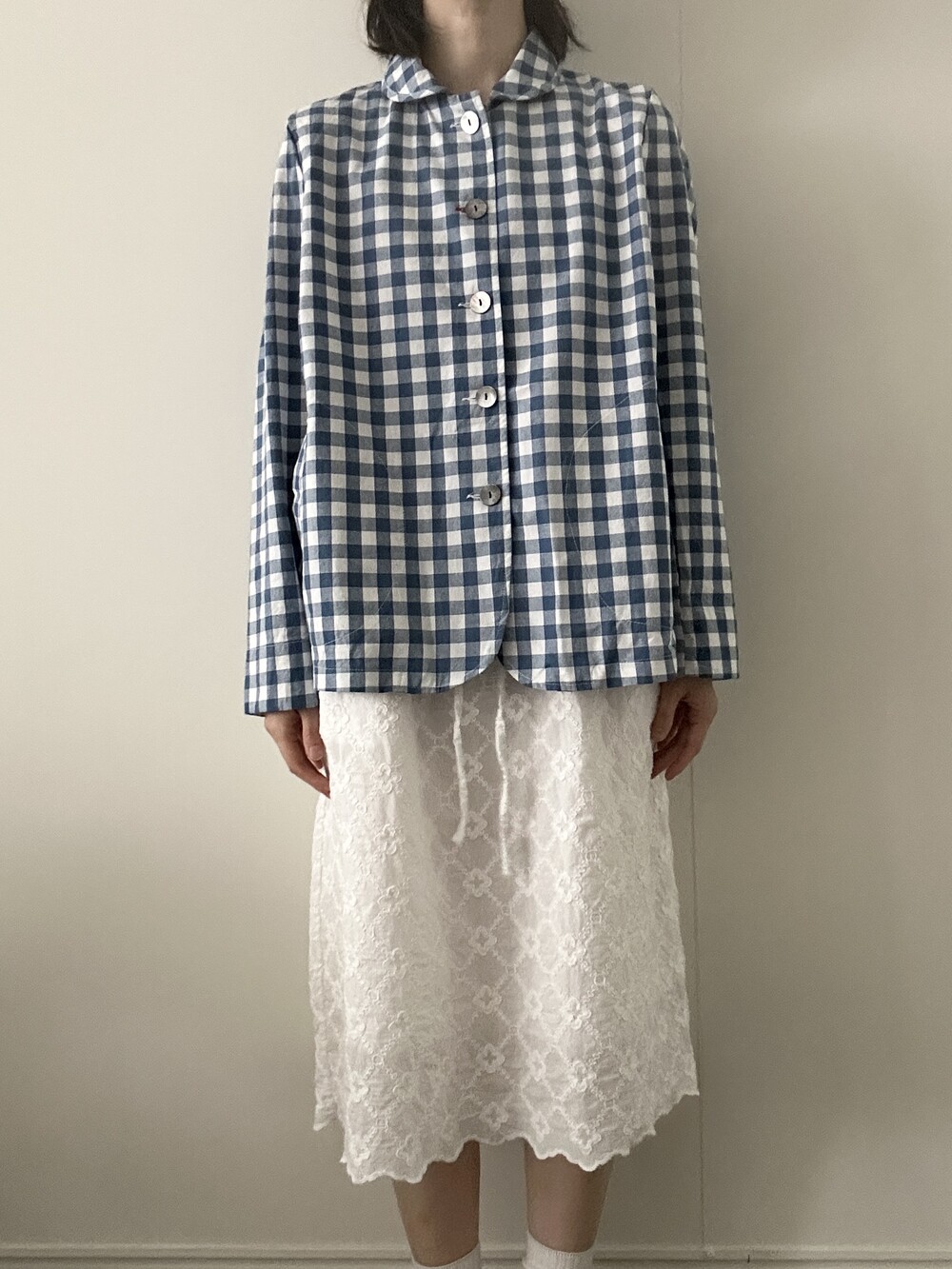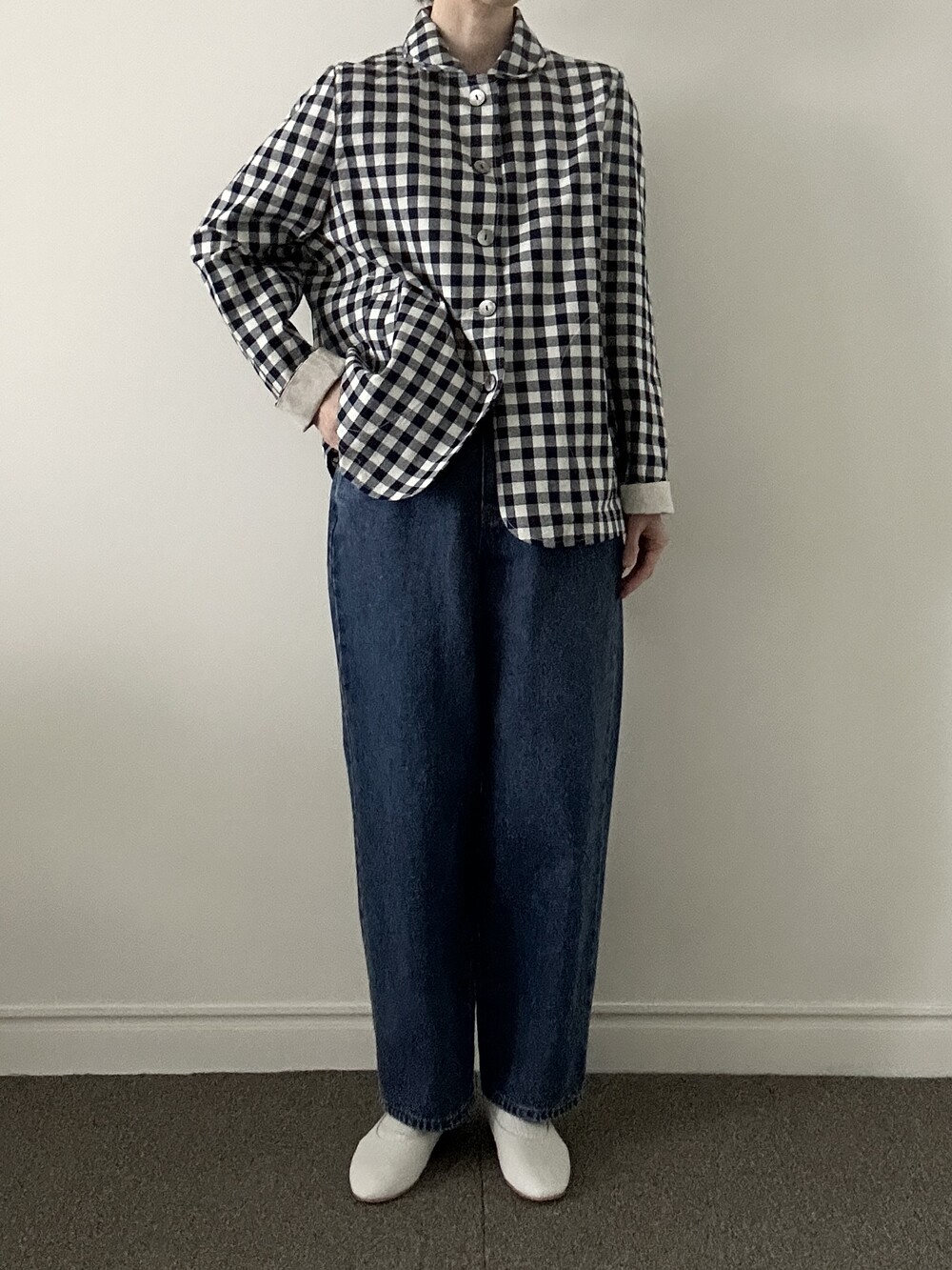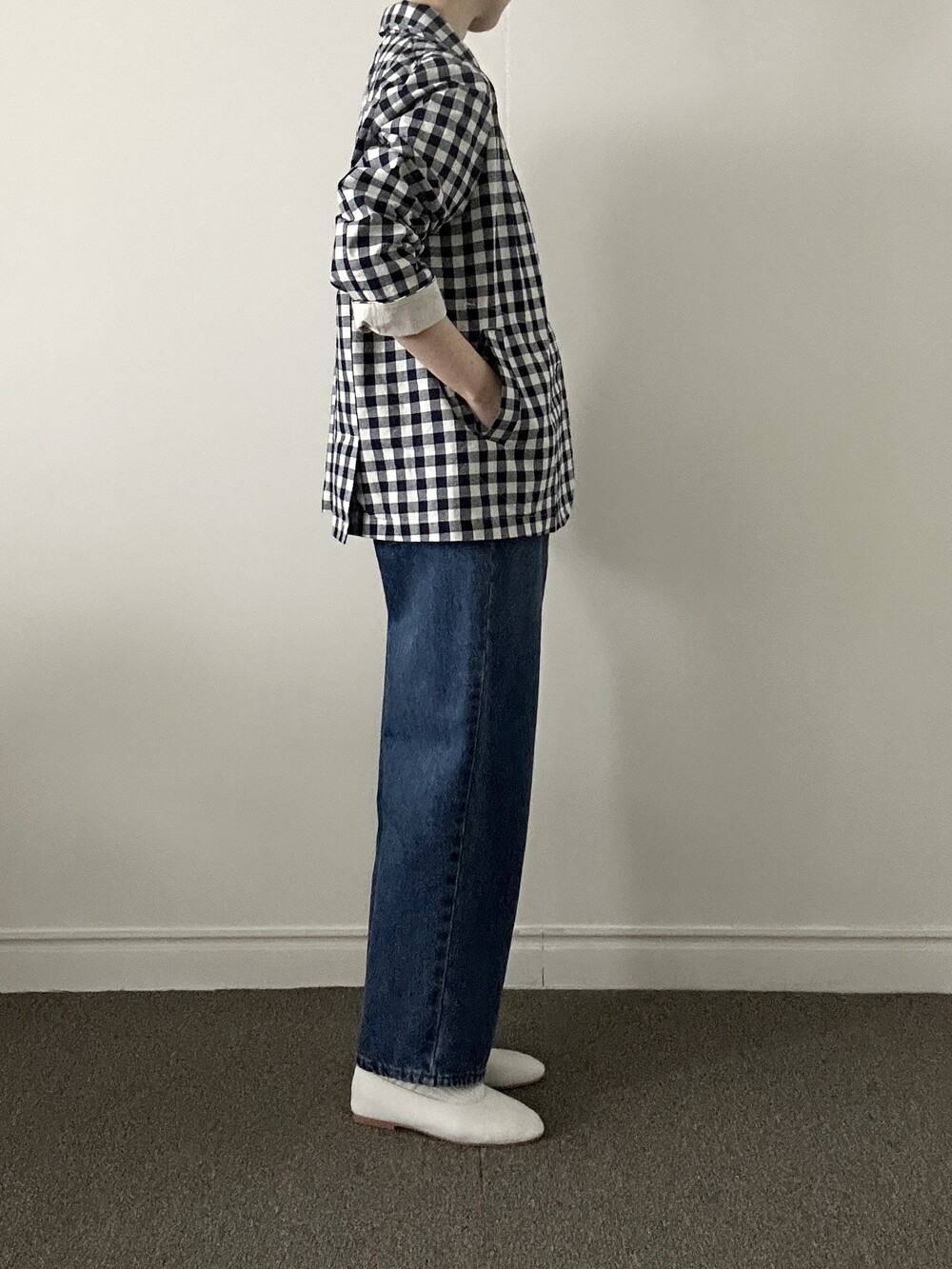 실을 먼저 염색해 짜낸 선염 원단 특유의 깊이감 있는 체크 패턴이 자연스럽고 은은한 분위기를 만들어줍니다.