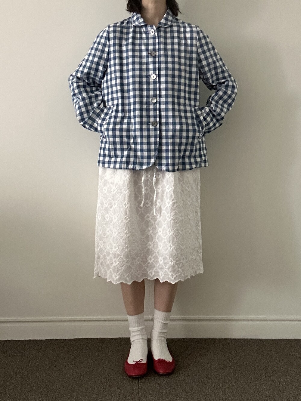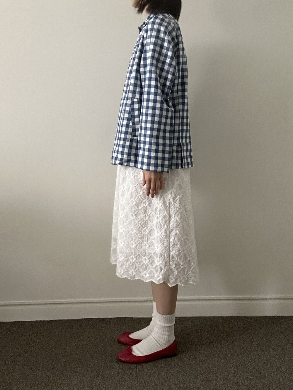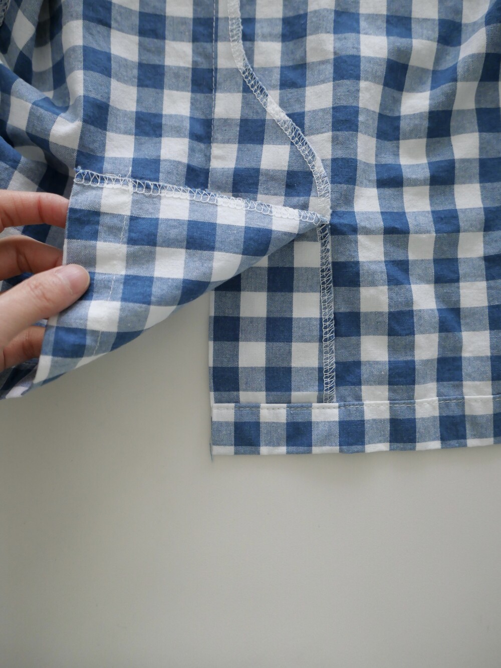 안단은 전체 바이어스 마감으로 보이지 않는 부분까지 깔끔하게 완성도를 높였습니다.
