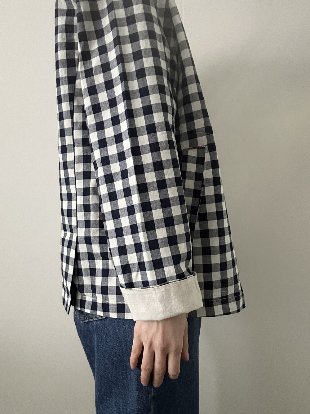 소매는 이중 구조로 제작되어 자연스러운 볼륨감을 더해주며, 롤업 시 안쪽 배색이 드러나 스타일링에 포인트가 됩니다.