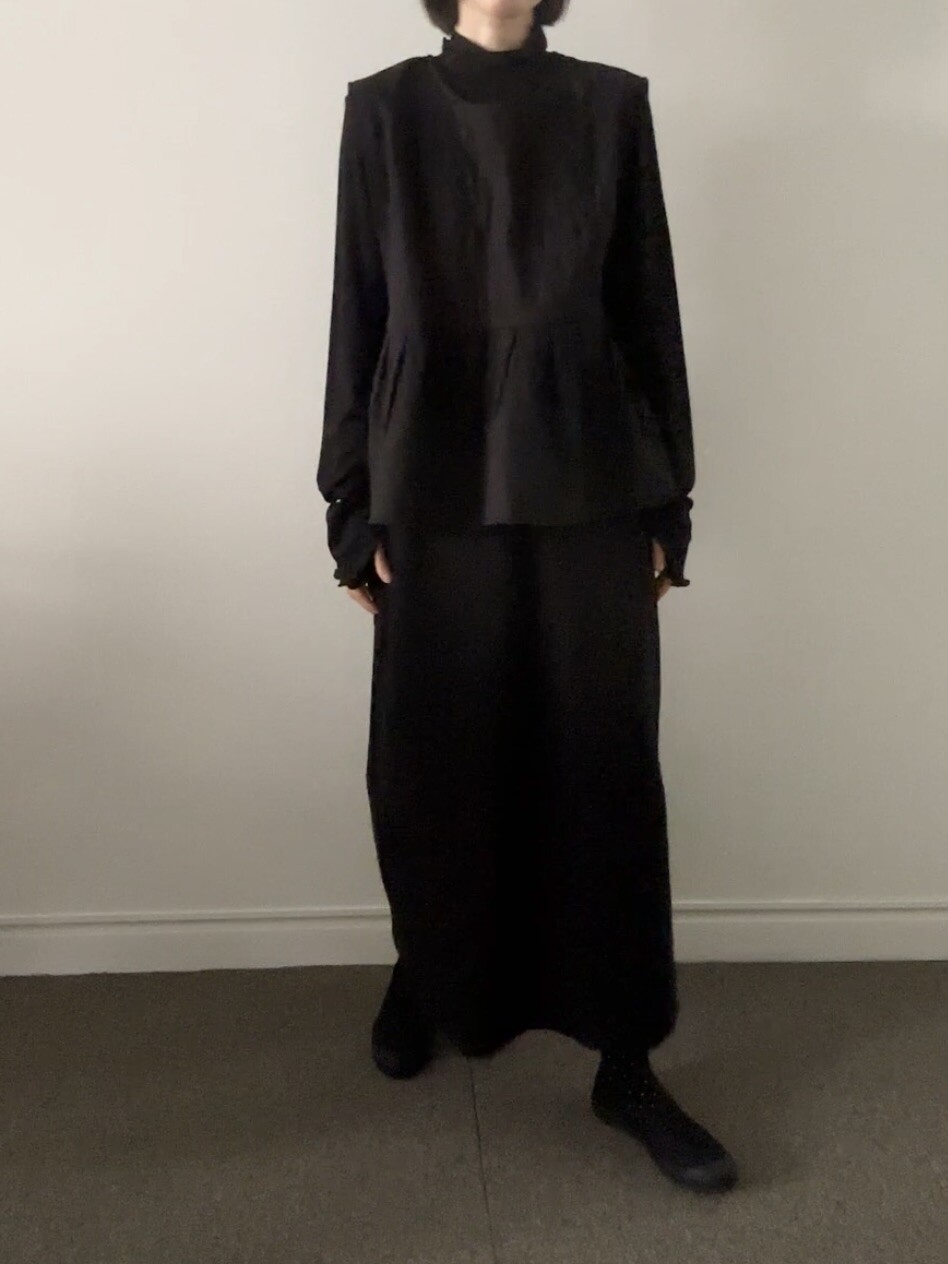 안감은 따로 없으며 뒷트임이 있어 롱한 기장감에도 편안하게 착용 가능합니다.