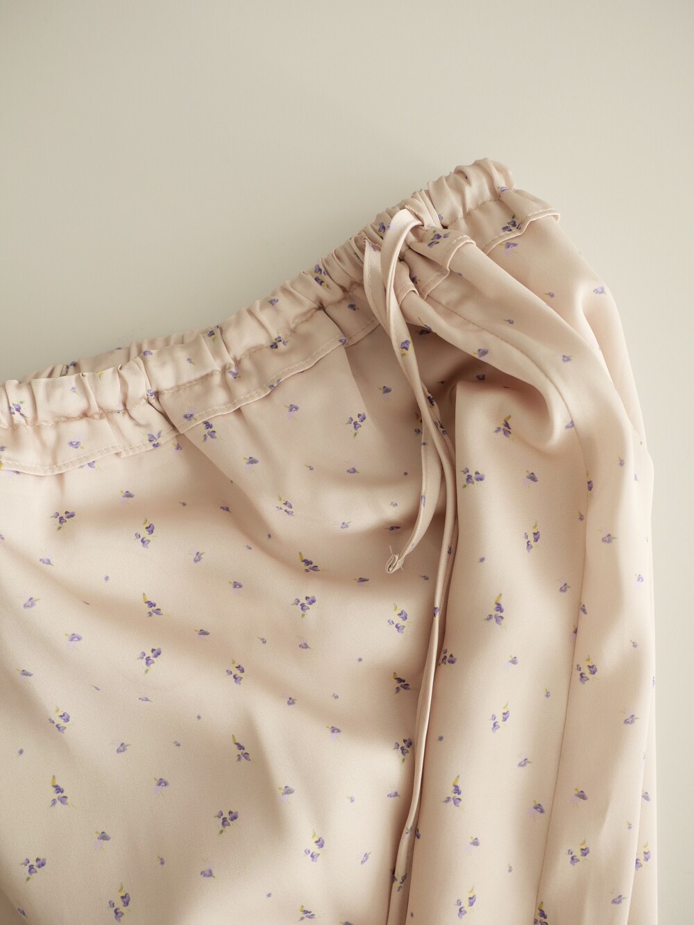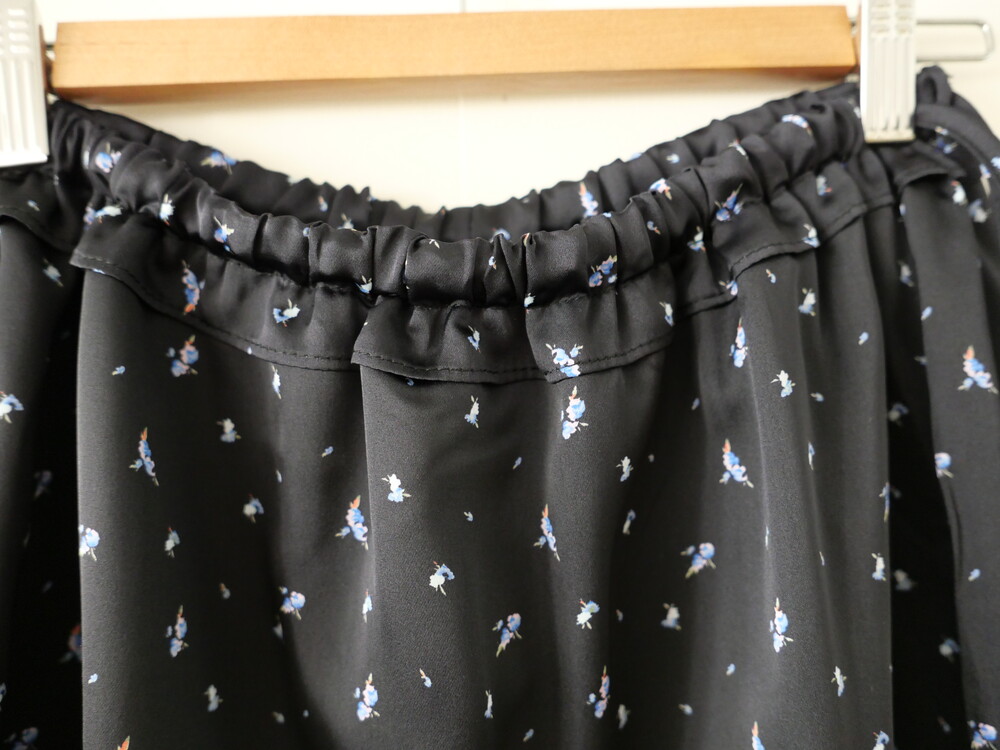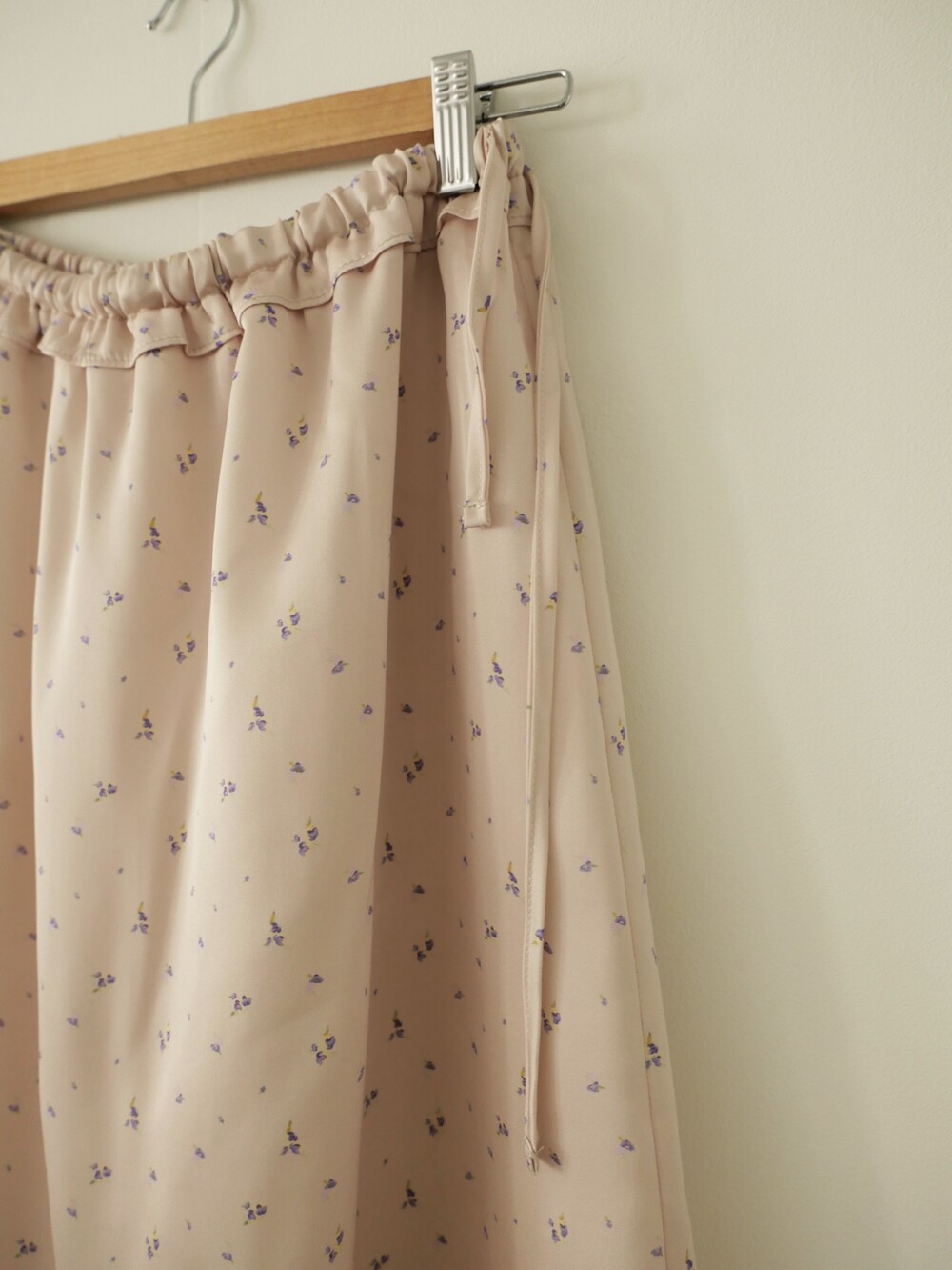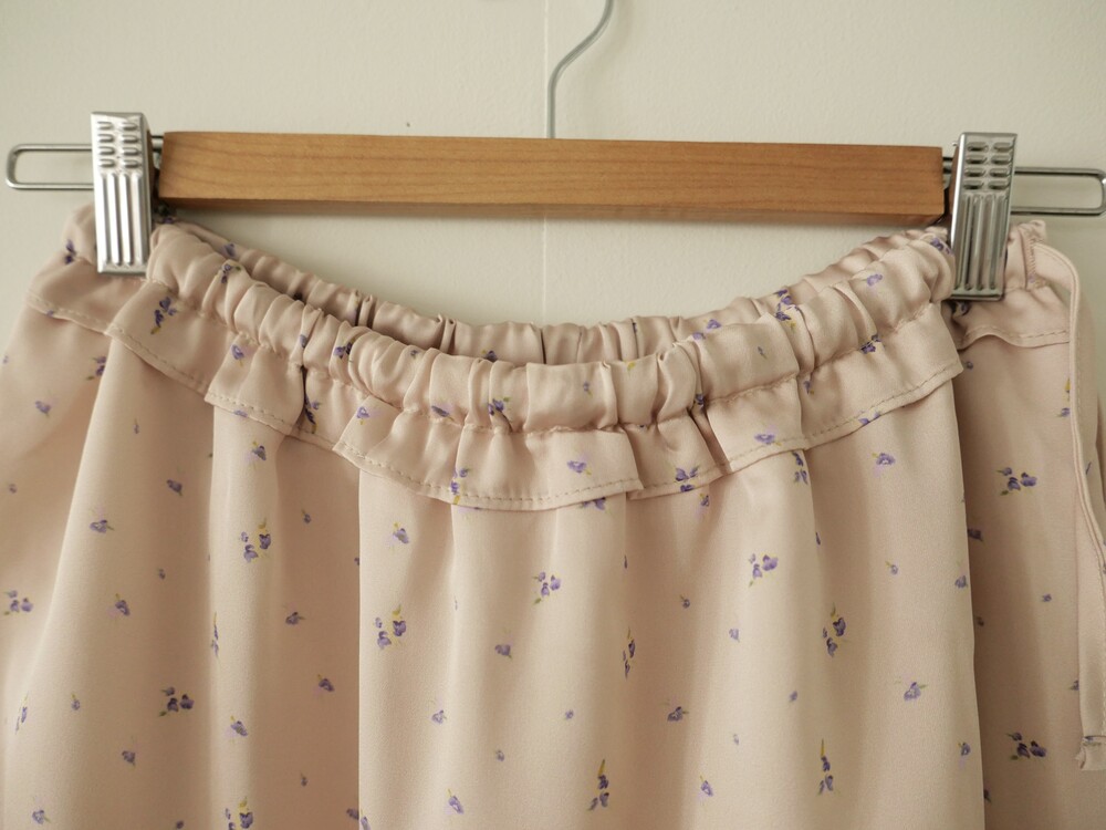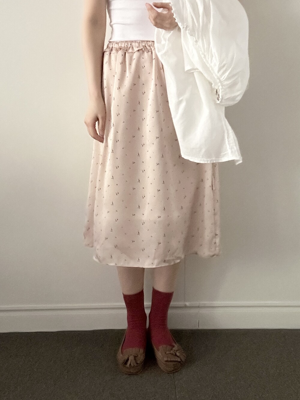 차분한 플라워 패턴과 허리 라인의 프릴 포인트가 조화로워, 심플한 상의와 매치해도 충분히 사랑스러운 룩을 완성해 줍니다.