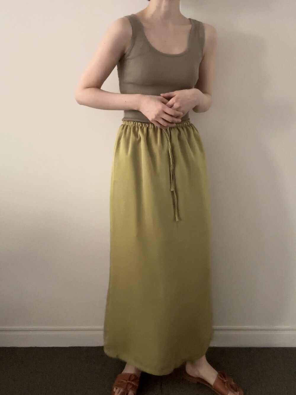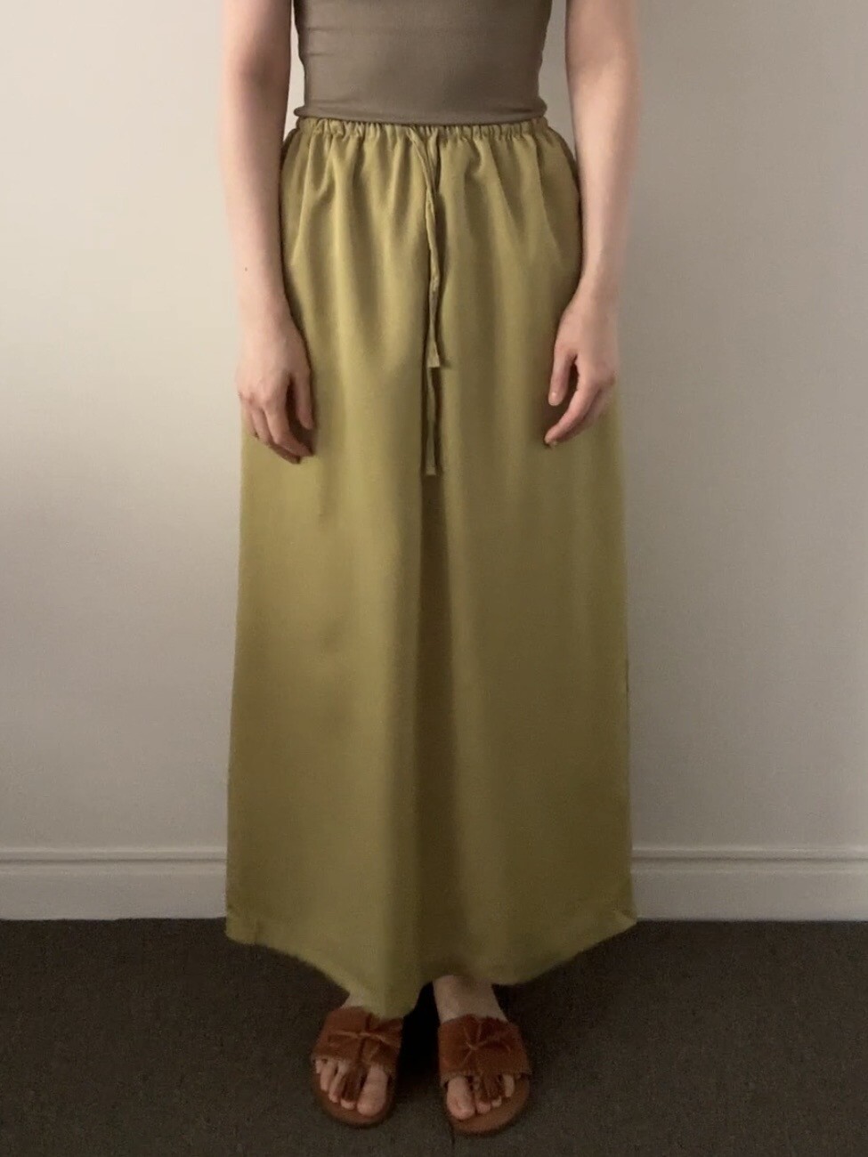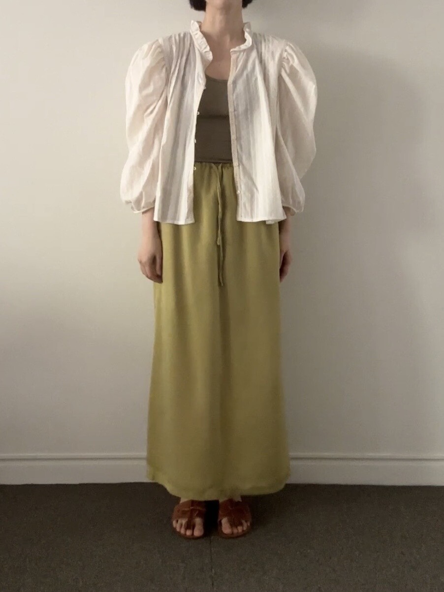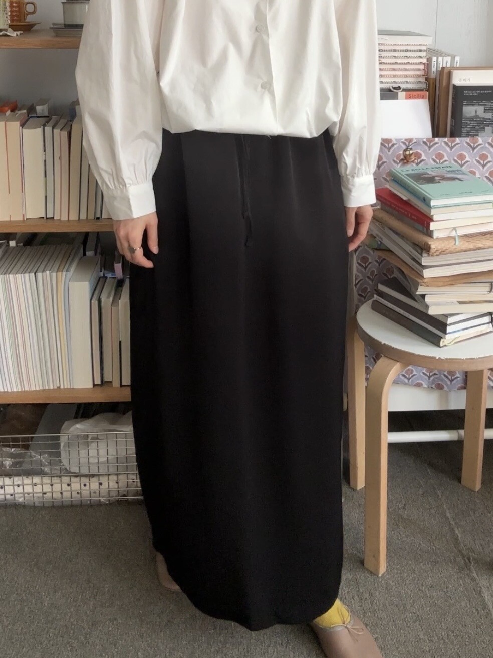 걸음마다 찰랑이는 가벼움과, 빛에 따라 오묘하게 변하는 컬러감이 매력적인 롱 스커트입니다.