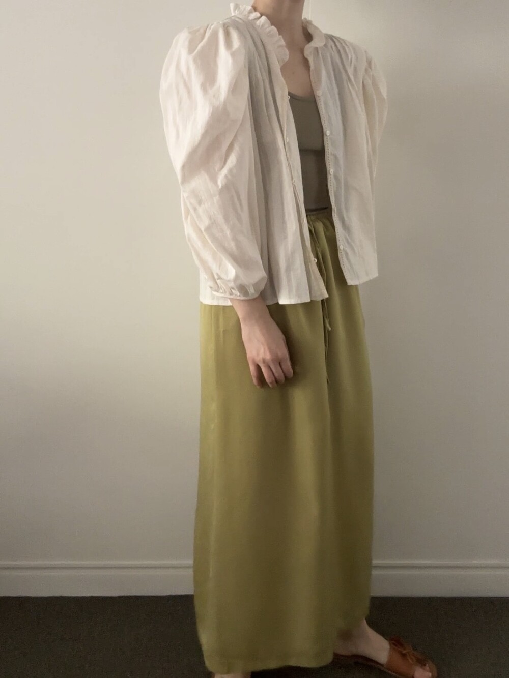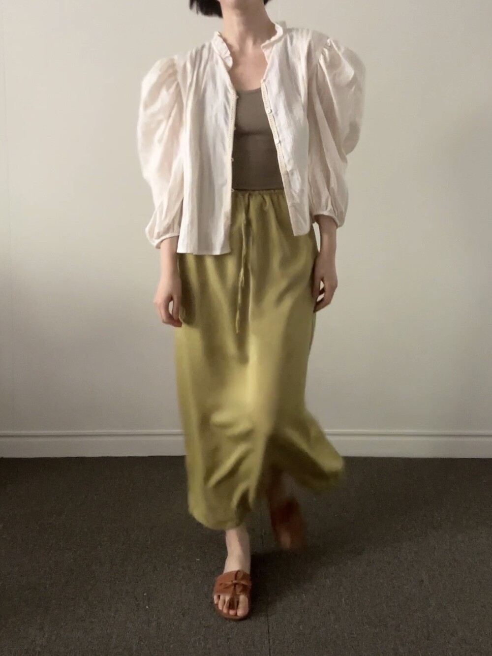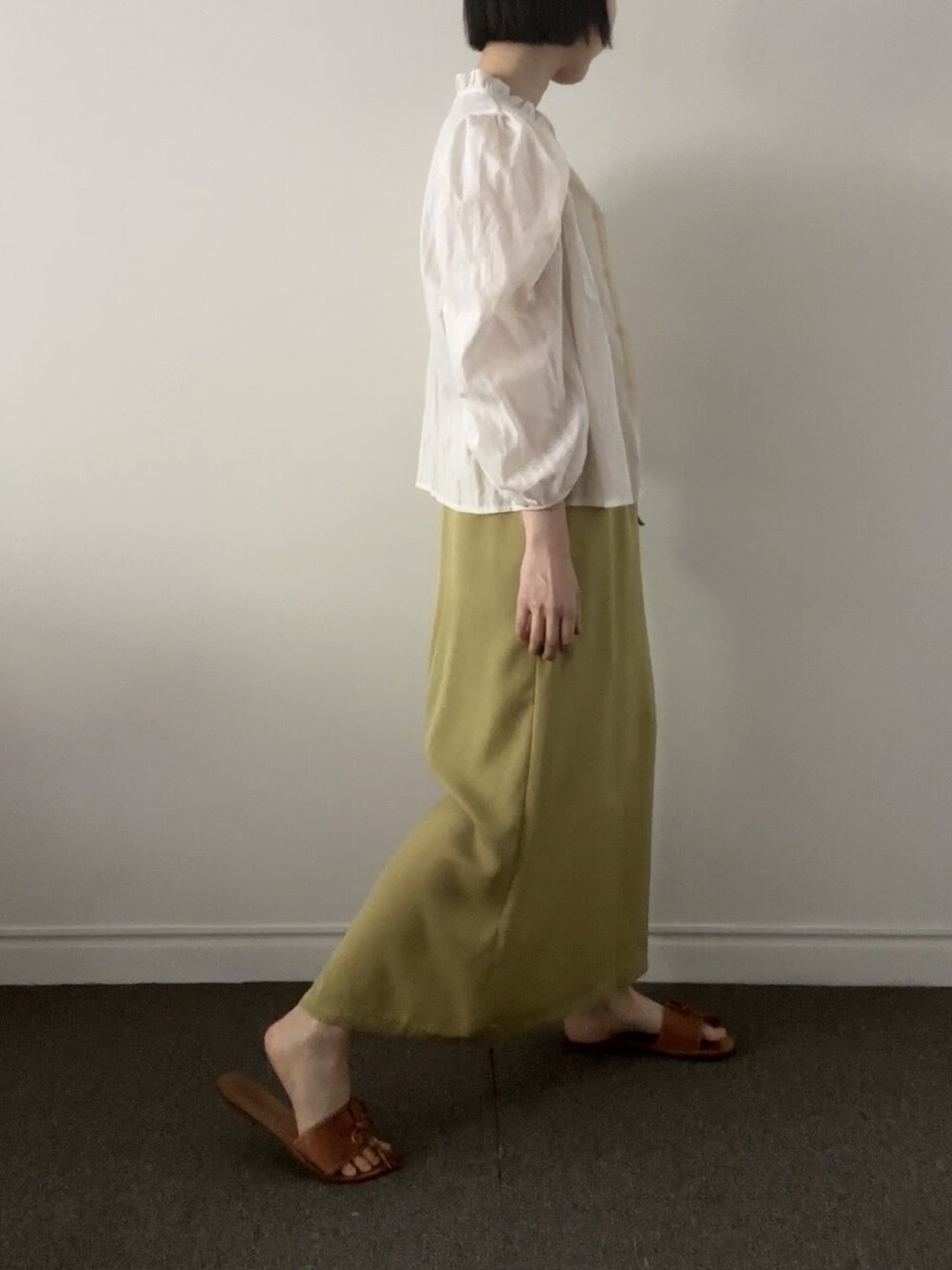 레몬 빛이 감도는 화사하고 매트한 올리브 컬러,